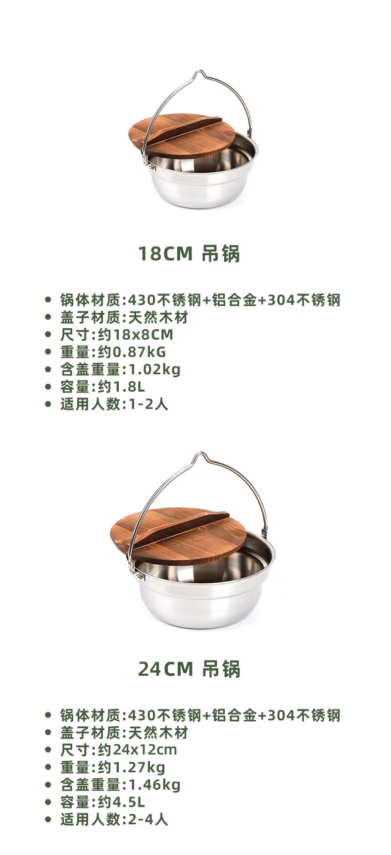 엄선 된 휴대용 교수형 냄비 캠핑 스테인레스 스틸 다기능 모닥불 작은 요리 냄비 냄비 냄비 냄비 캠핑 야외 조리기구스토어 가기