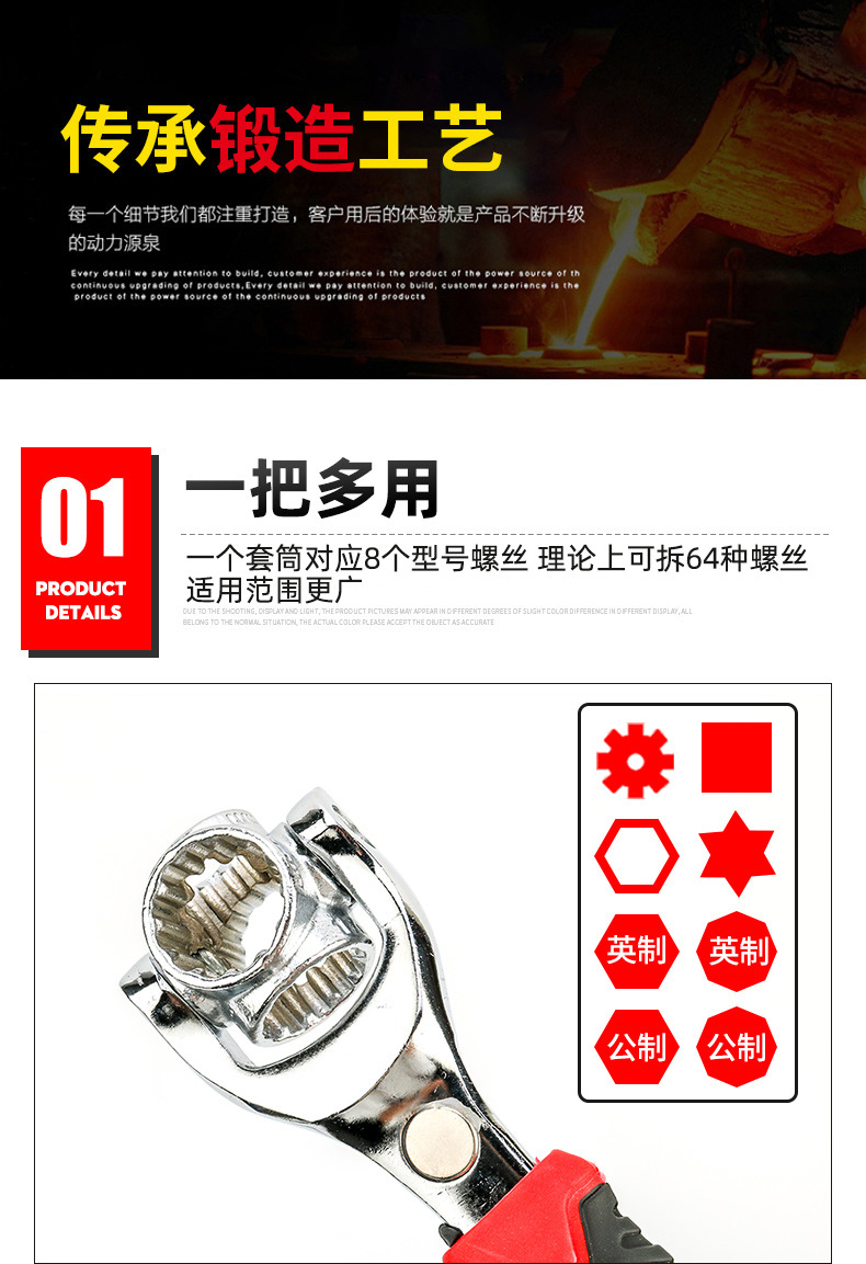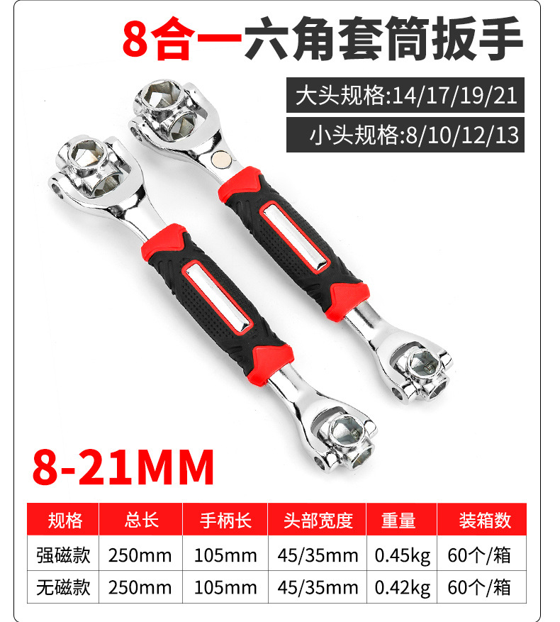 가정용 다기능 8-in-1 소켓 렌치, 회전 가능한 다중 헤드 52-in-1, 도그본 플랫헤드 육각 렌치
