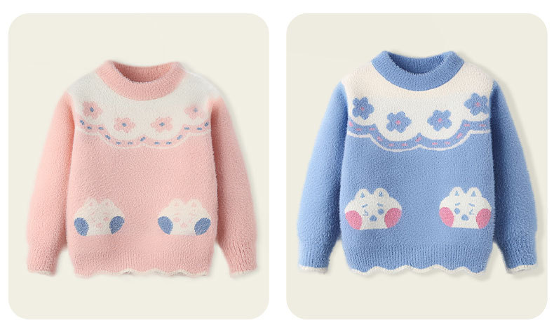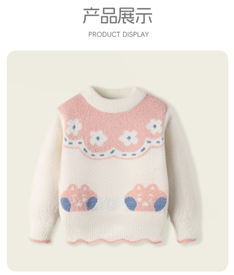 [보풀이 생기지 않음] 여아용 2024 신상 풀오버 자켓 아동복 가을 겨울 만화 캐릭터 플러스 벨벳 다용도 아동용 스웨터스토어 가기