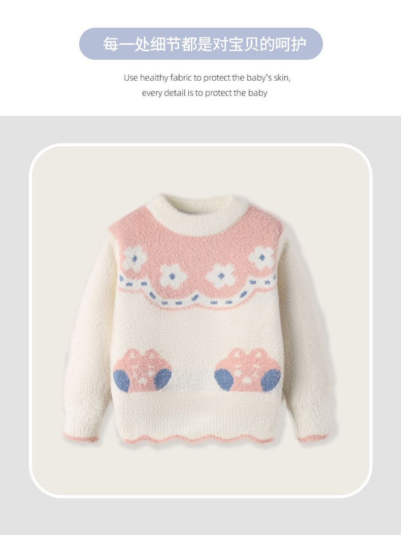 [보풀이 생기지 않음] 여아용 2024 신상 풀오버 자켓 아동복 가을 겨울 만화 캐릭터 플러스 벨벳 다용도 아동용 스웨터