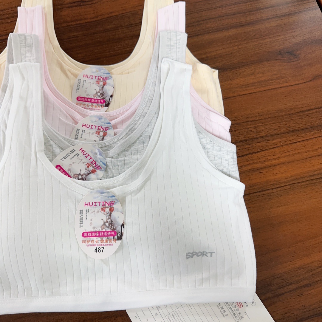 487 소녀의 성장 기간 와이드 조끼 새로운 순면 소녀의 속옷 간단한 알파벳 밴드 가슴 패드 학생 조끼