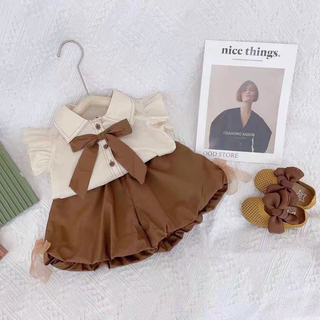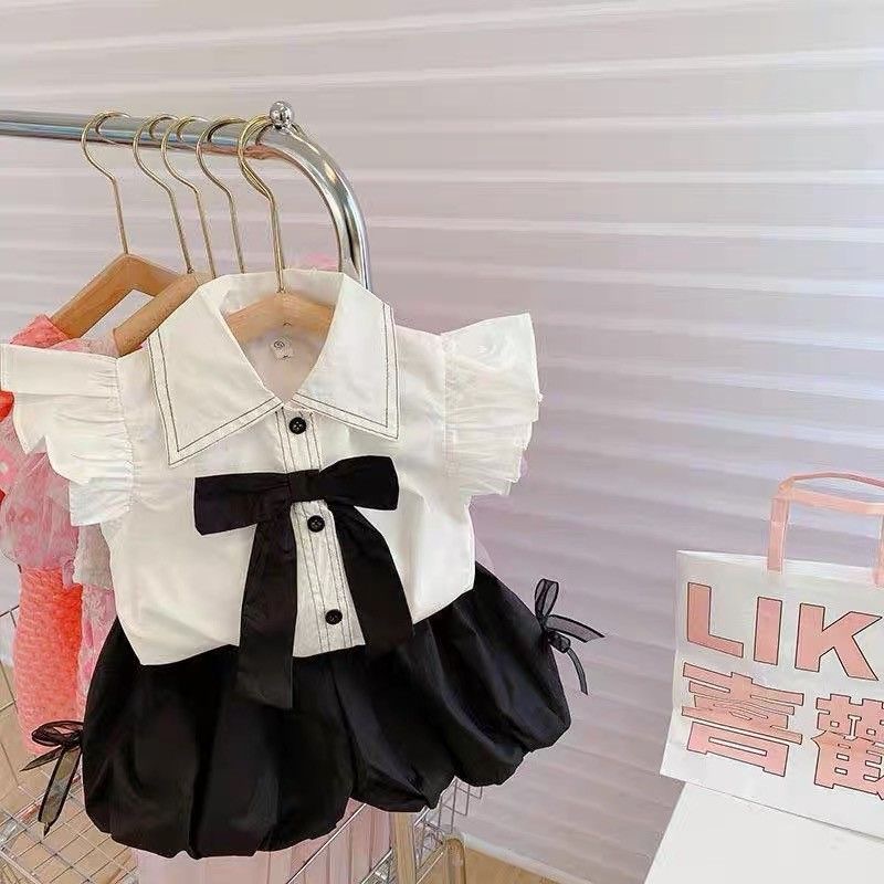 여아 여름 세트 2025 신상 여아 아기 한국 스타일 세련된 카라 달콤한 투피스 세트 유아동복 트렌디