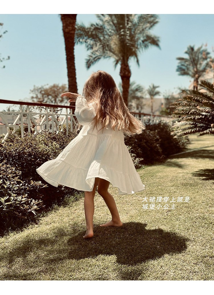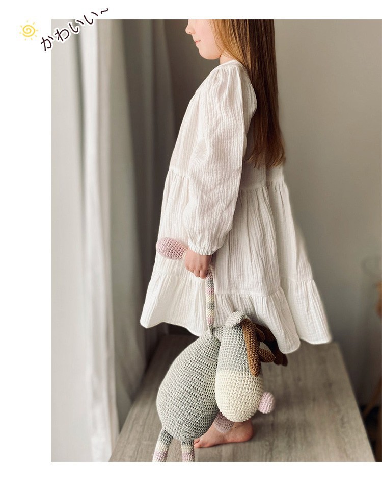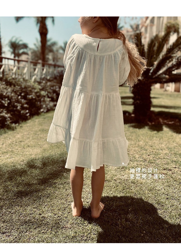 봄과 가을 신상 순면 이중 거즈 긴팔 라운드넥 원피스 아동복 스플라이스 디자인 넓은 밑단 달콤하고 귀여운 인형 원피스