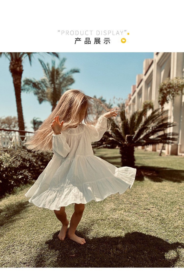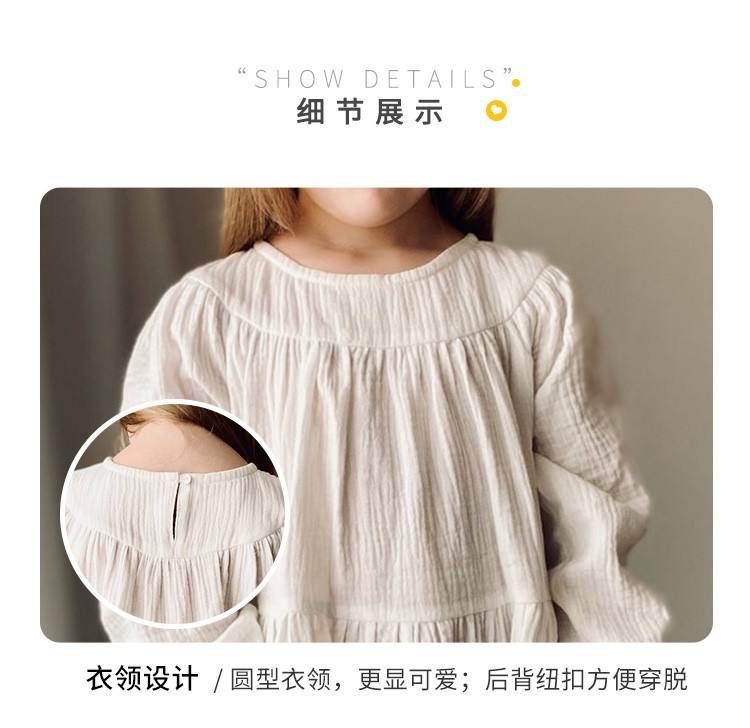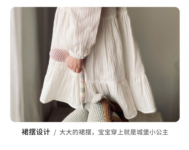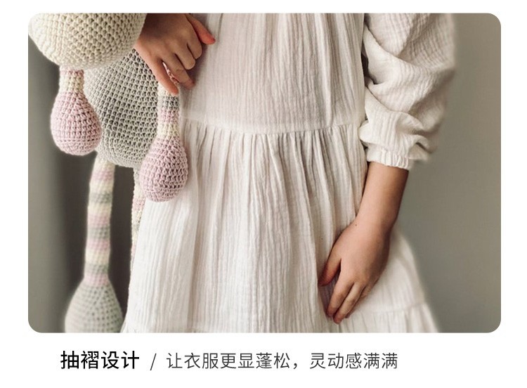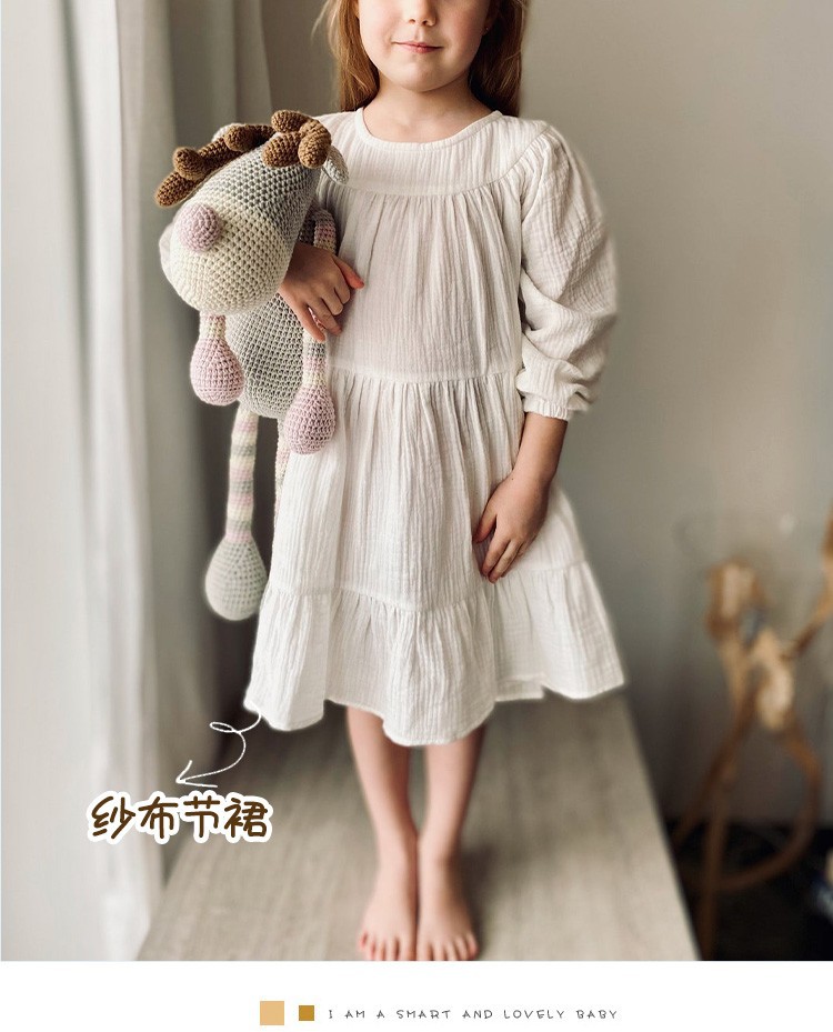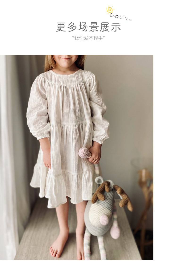 봄과 가을 신상 순면 이중 거즈 긴팔 라운드넥 원피스 아동복 스플라이스 디자인 넓은 밑단 달콤하고 귀여운 인형 원피스스토어 가기