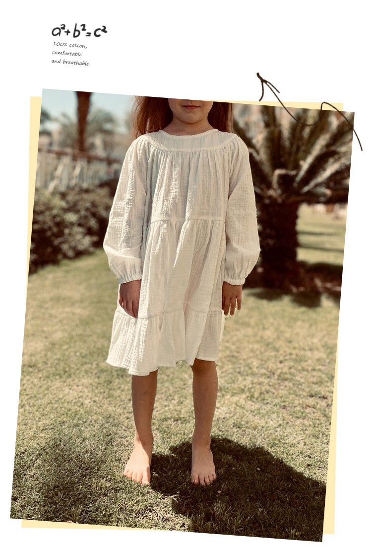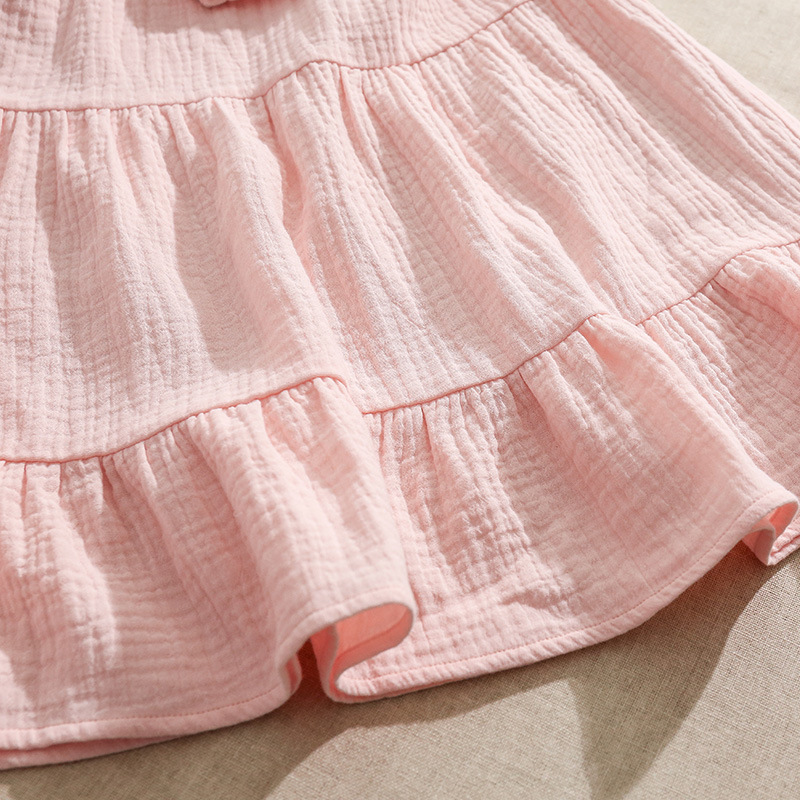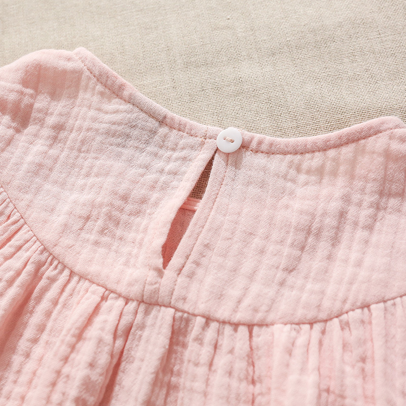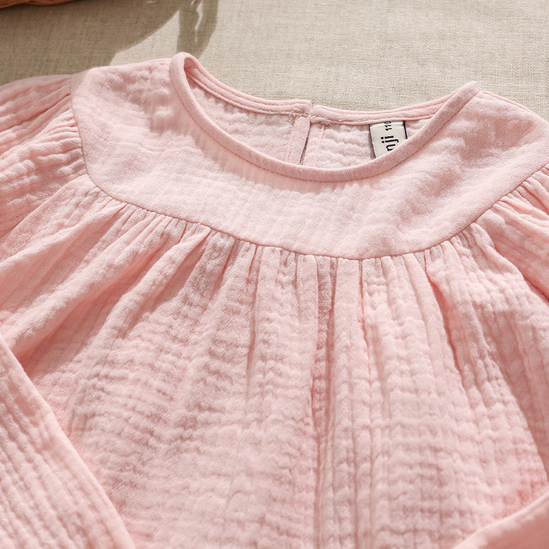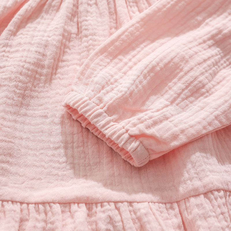 봄과 가을 신상 순면 이중 거즈 긴팔 라운드넥 원피스 아동복 스플라이스 디자인 넓은 밑단 달콤하고 귀여운 인형 원피스스토어 가기
