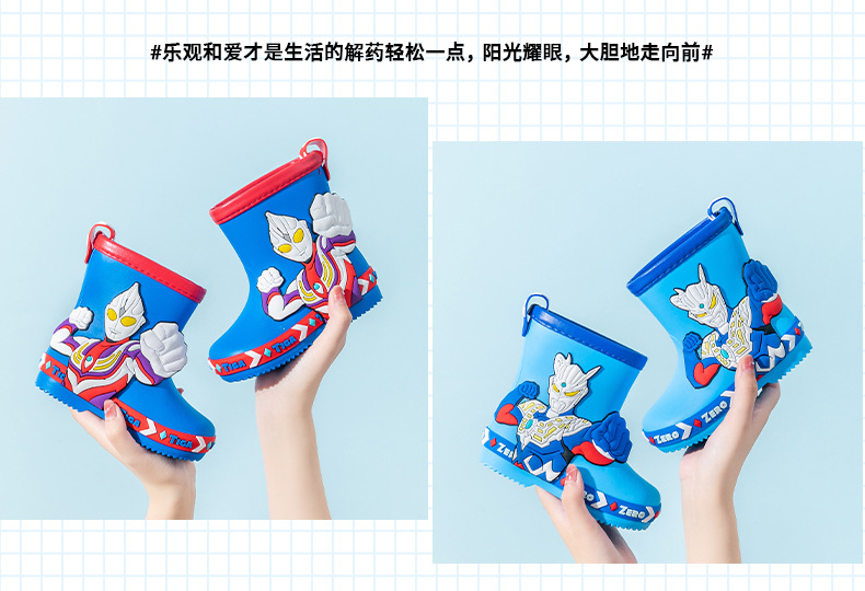 울트라맨 만화 정품 Deja Selo 어린이 장화 새로운 소년 중간 소매 신발 학생 미끄럼 방지 경량 워터 부츠