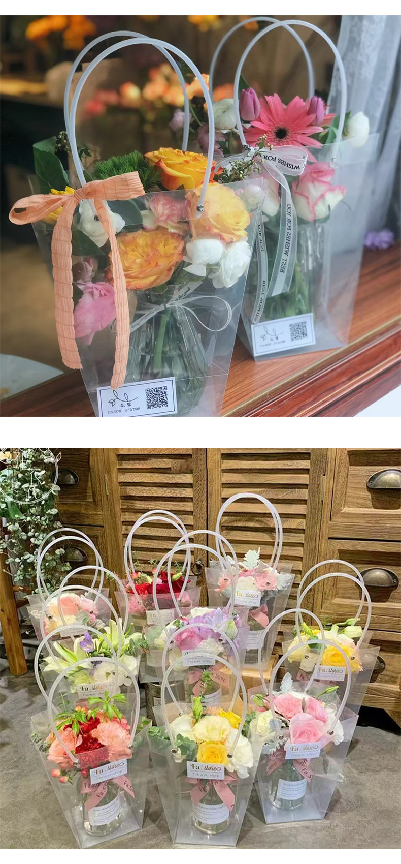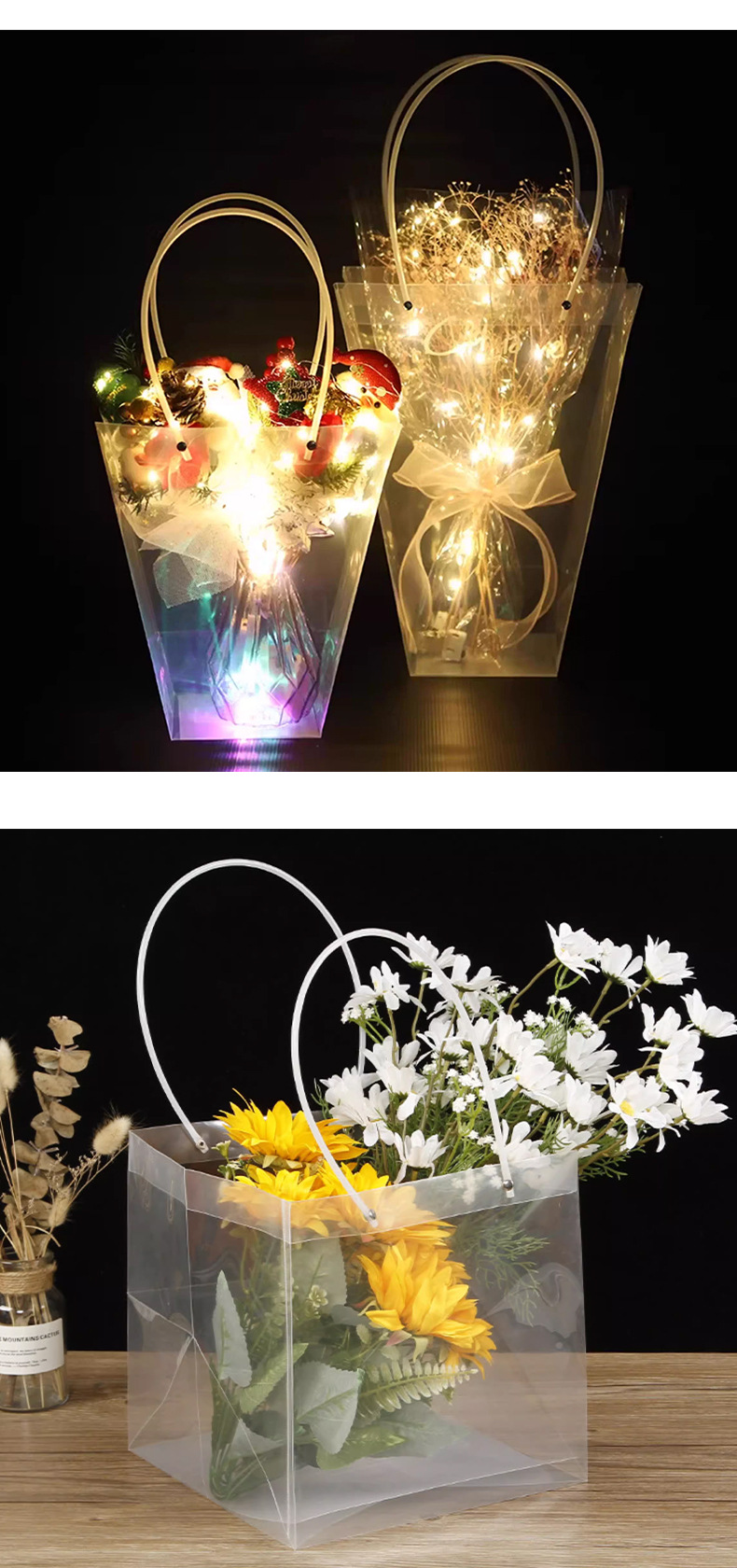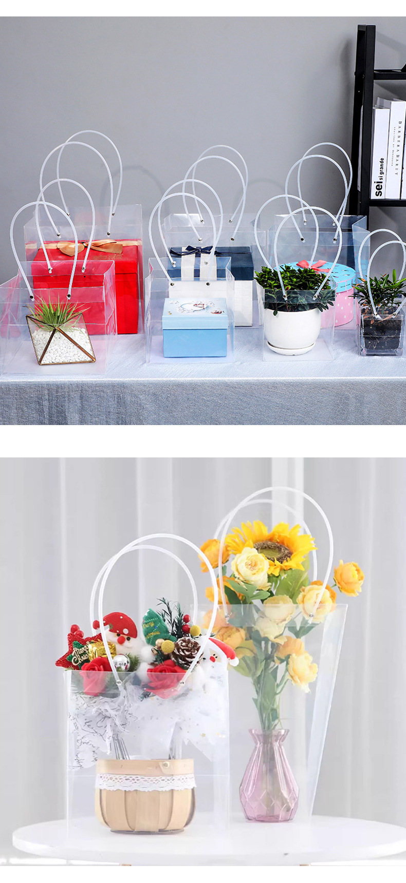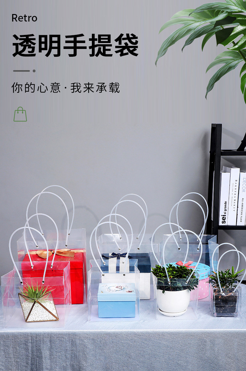 PP 투명 핸드백 교사의 날 선물 가방 선물 상자 꽃 케이크 디저트 사탕 손 선물 가방 구매 더 많은 할인스토어 가기