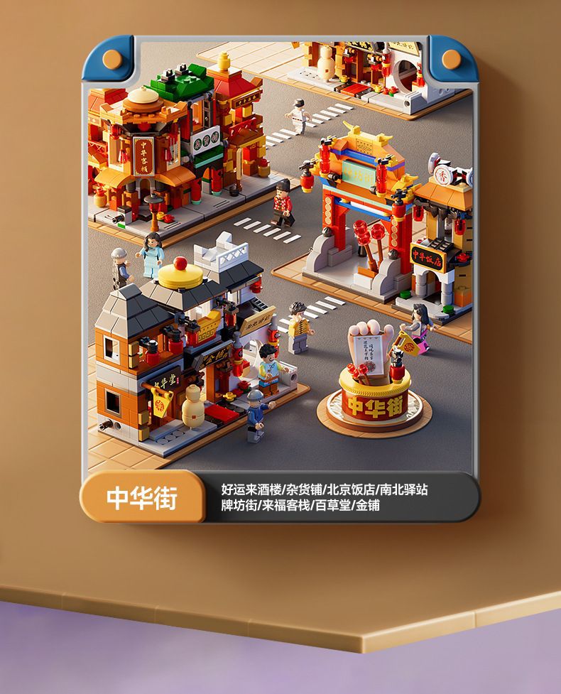 Zhonghua Street City 미니 스트리트 뷰 국립 조수 빌딩 블록 레고 소형 입자 퍼즐 조립 완구 도매와 호환 가능스토어 가기