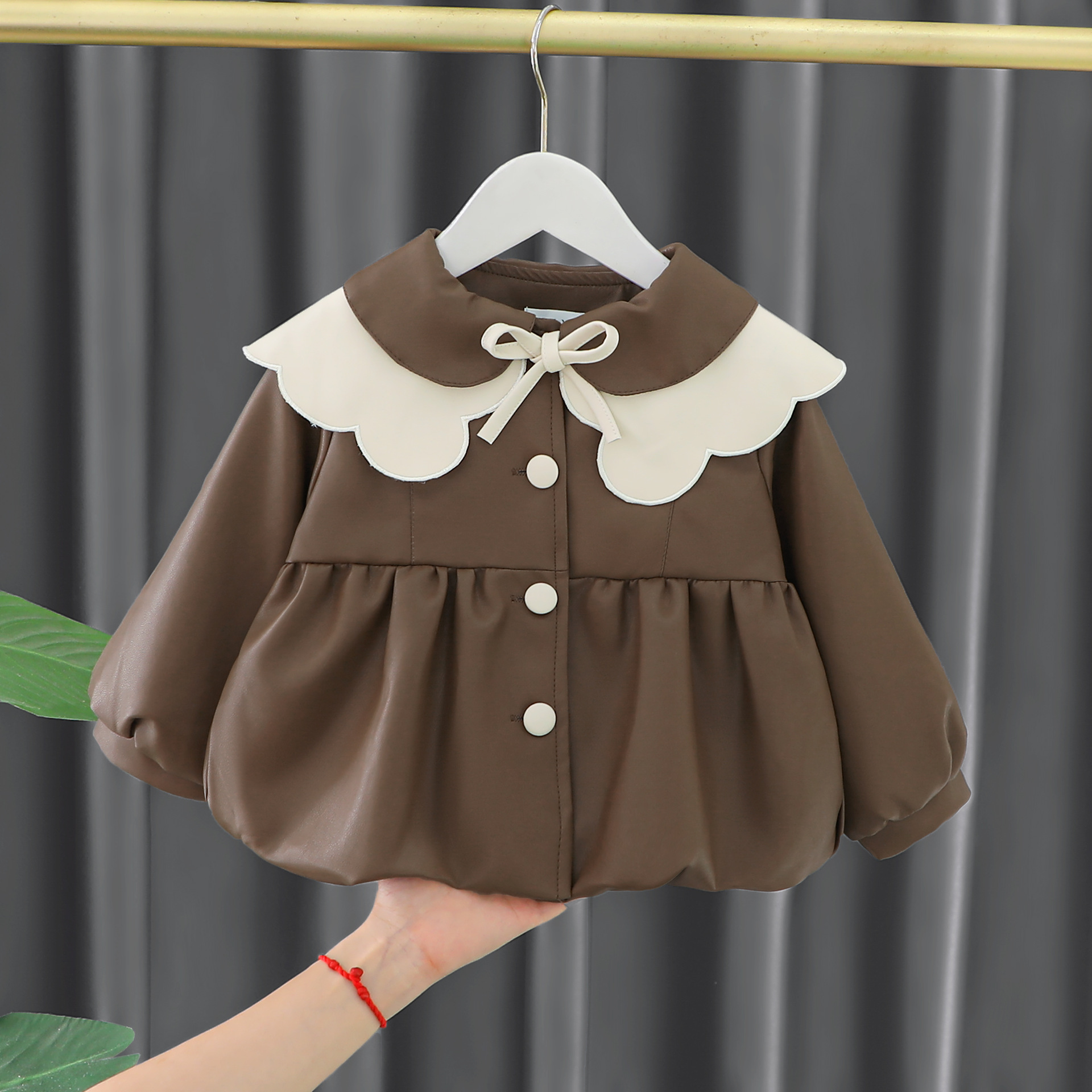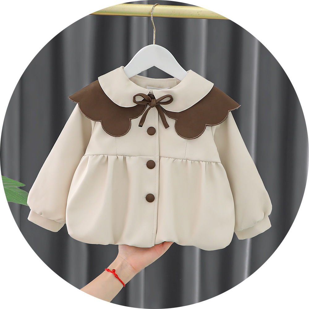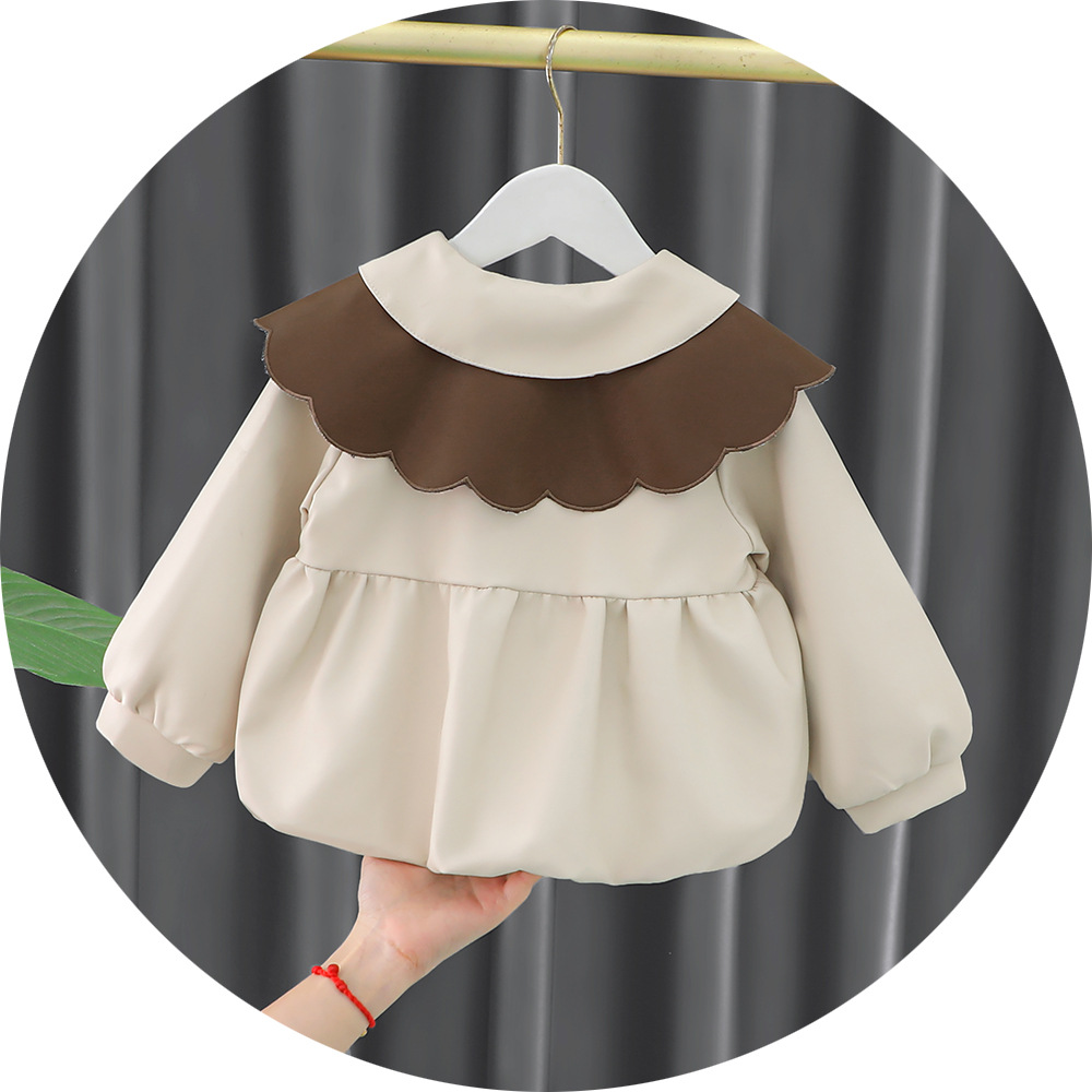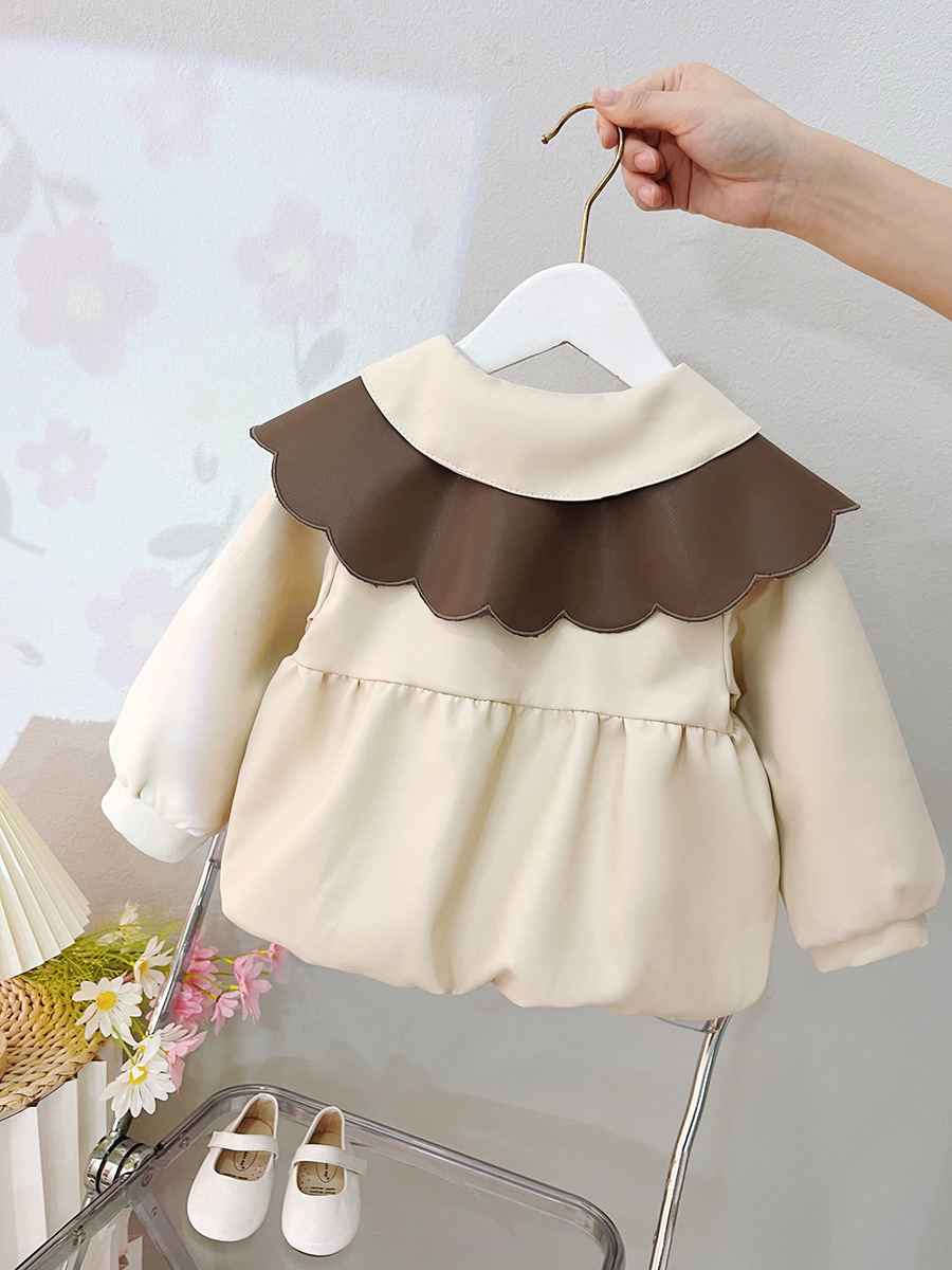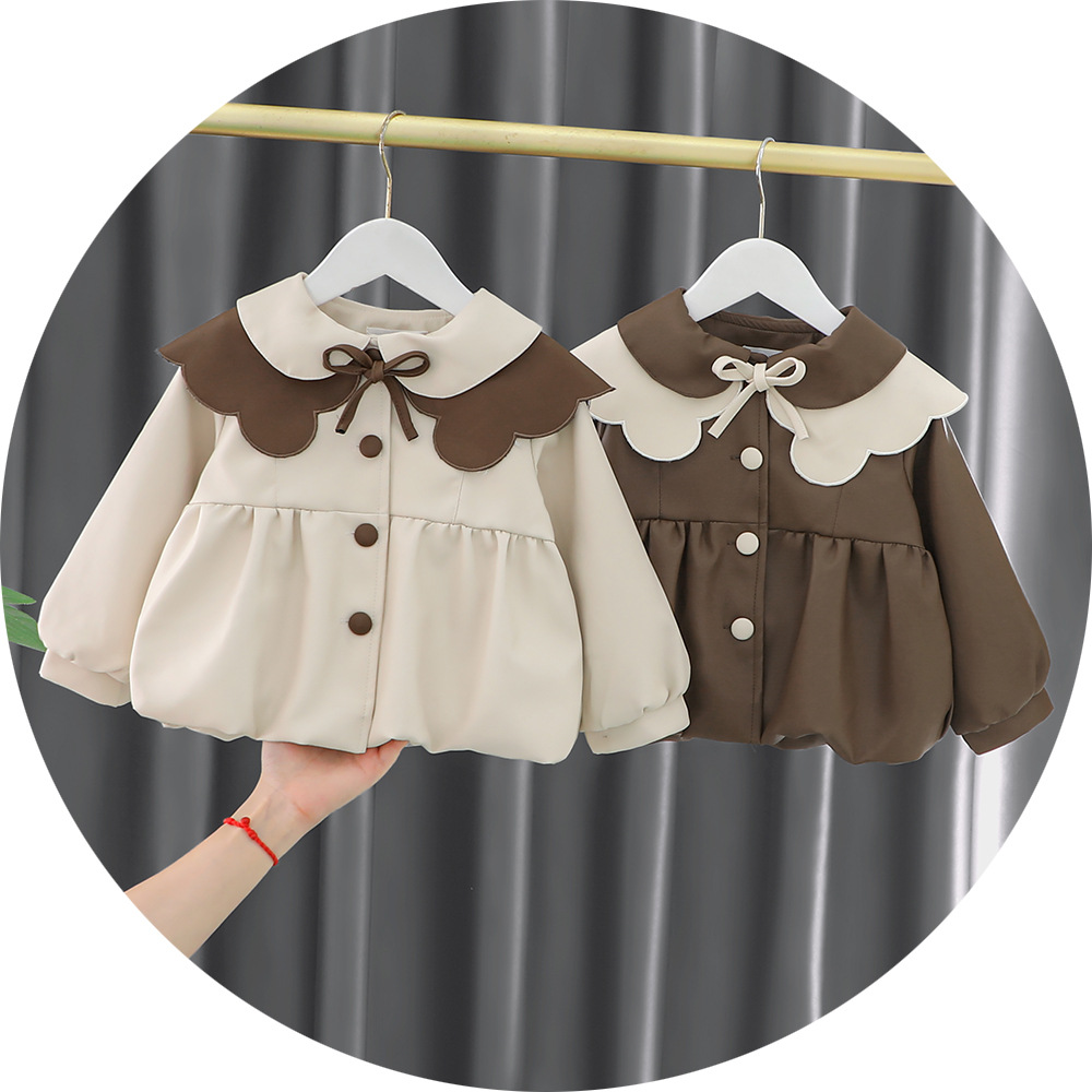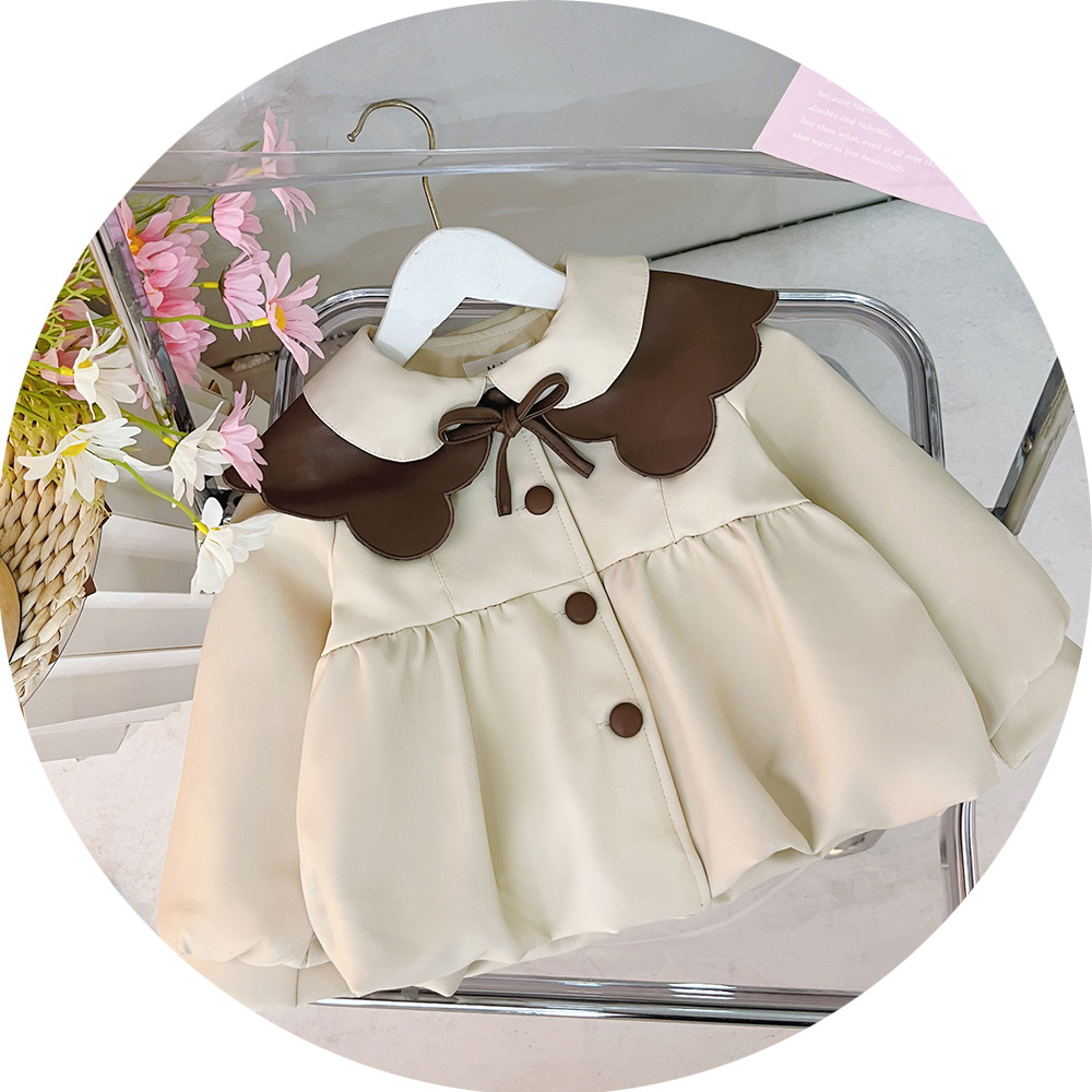 2025 가을 신상 여아 레이스 칼라 솔리드 컬러 가죽 재킷 여자 어린이 얇은 중간 길이 코트 한국 스타일 아우터스토어 가기