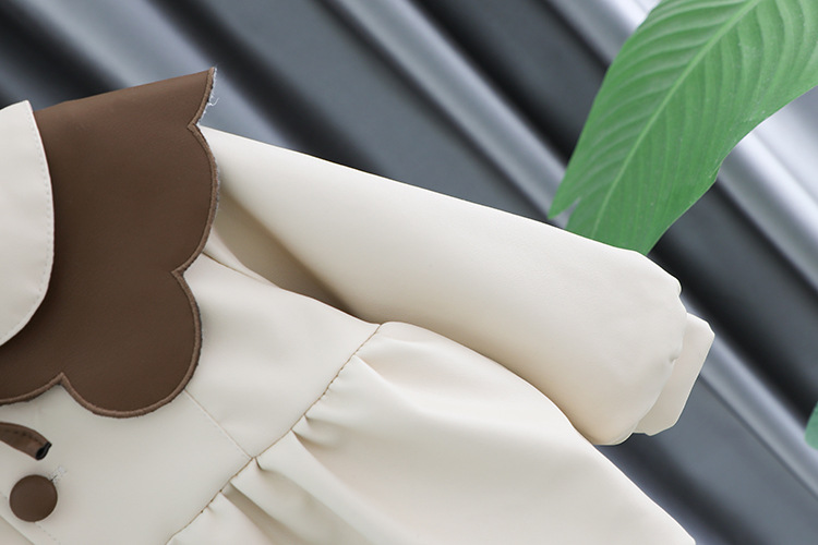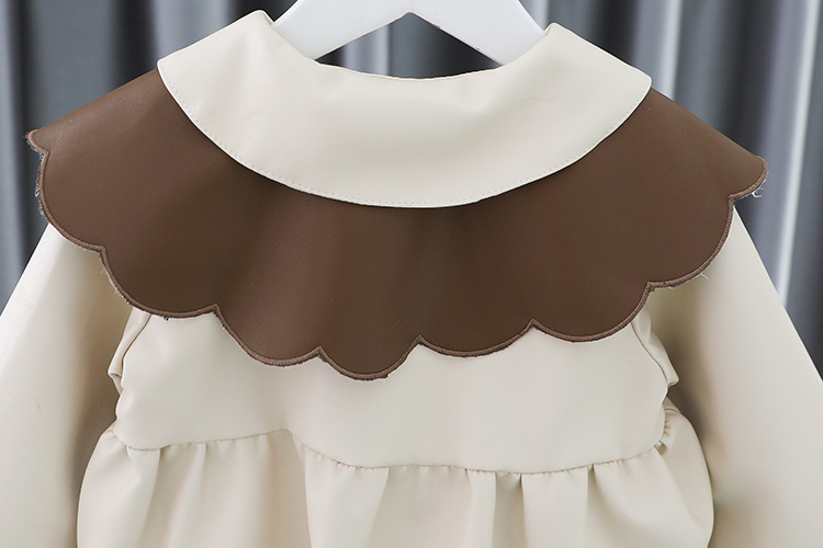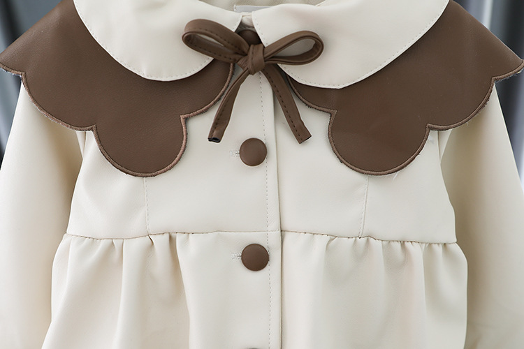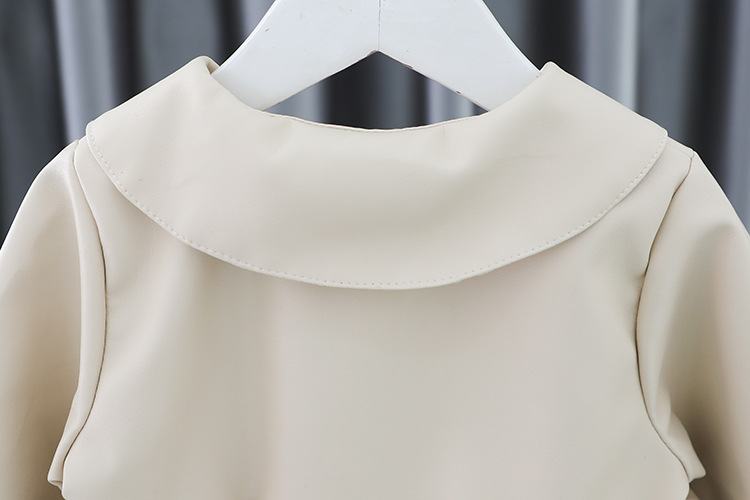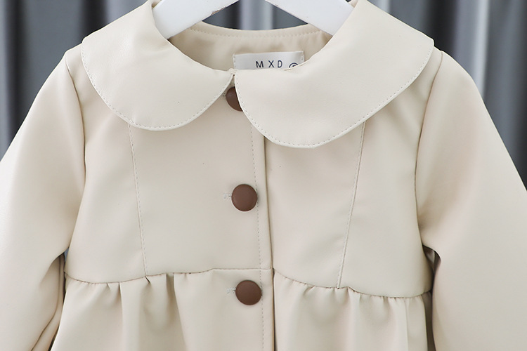 2025 가을 신상 여아 레이스 칼라 솔리드 컬러 가죽 재킷 여자 어린이 얇은 중간 길이 코트 한국 스타일 아우터