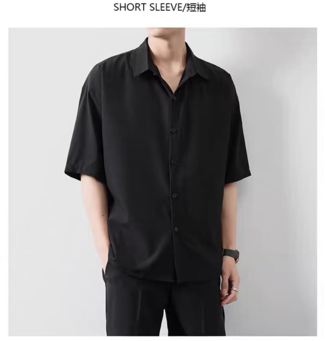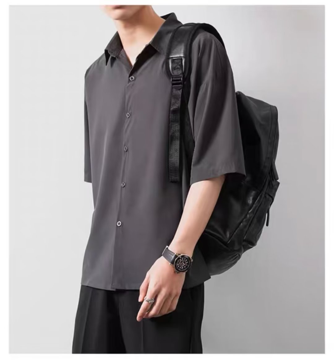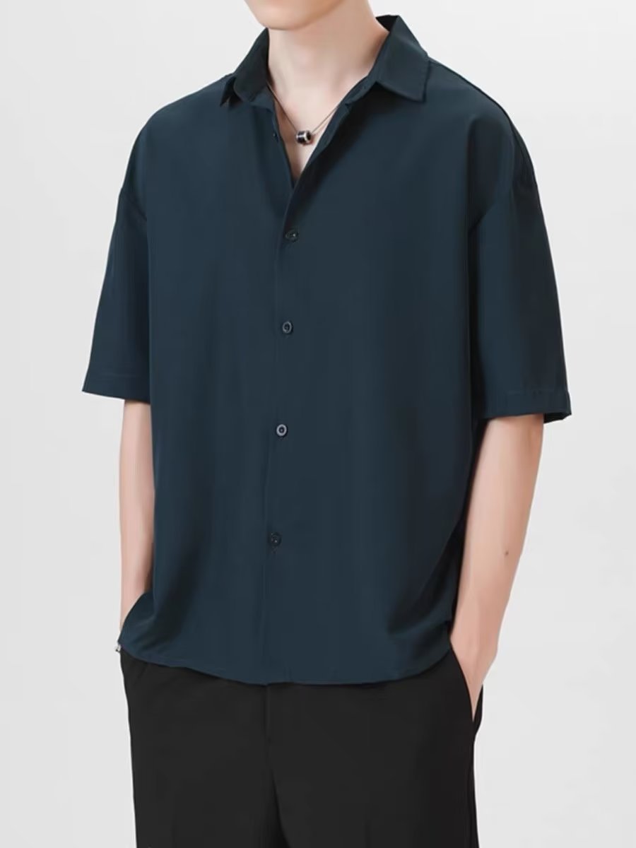 여름 얇은 느슨한 반팔 셔츠 남자의 한국식 캐주얼 모든 경기 다크 그린 잘생긴 유행 비 다림질 반팔 셔츠스토어 가기