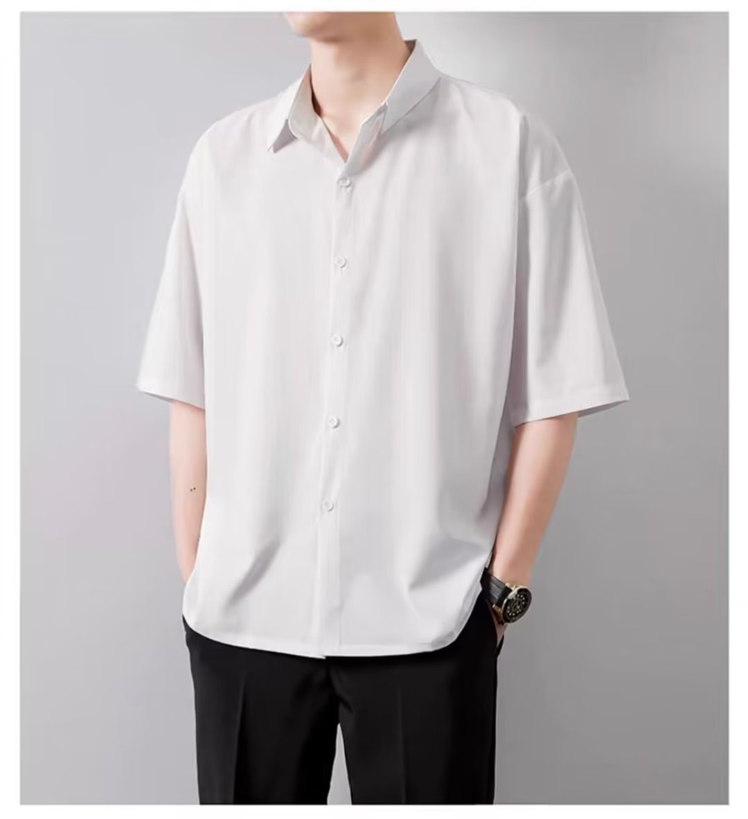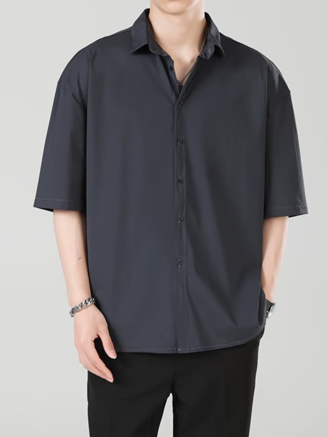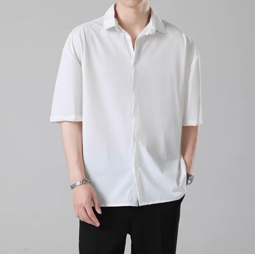 여름 얇은 느슨한 반팔 셔츠 남자의 한국식 캐주얼 모든 경기 다크 그린 잘생긴 유행 비 다림질 반팔 셔츠스토어 가기