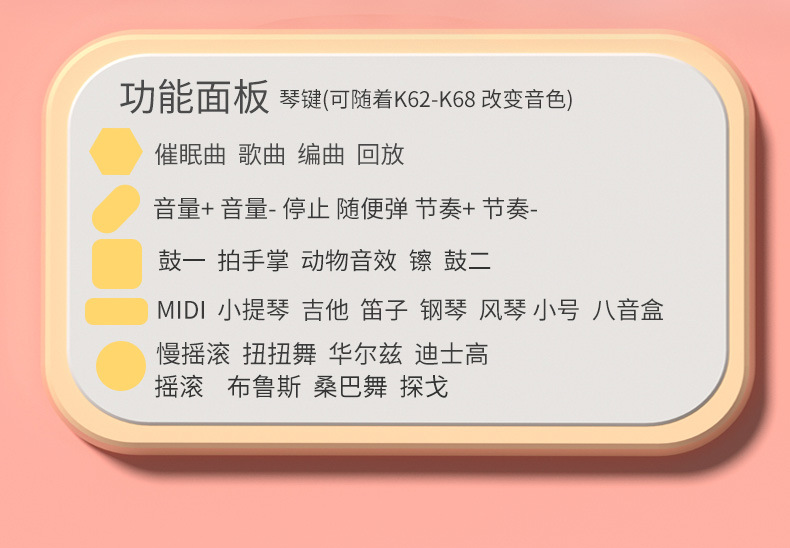 • 7094 이상 전자 오르간-황색 (USB 충전 선물 버전)