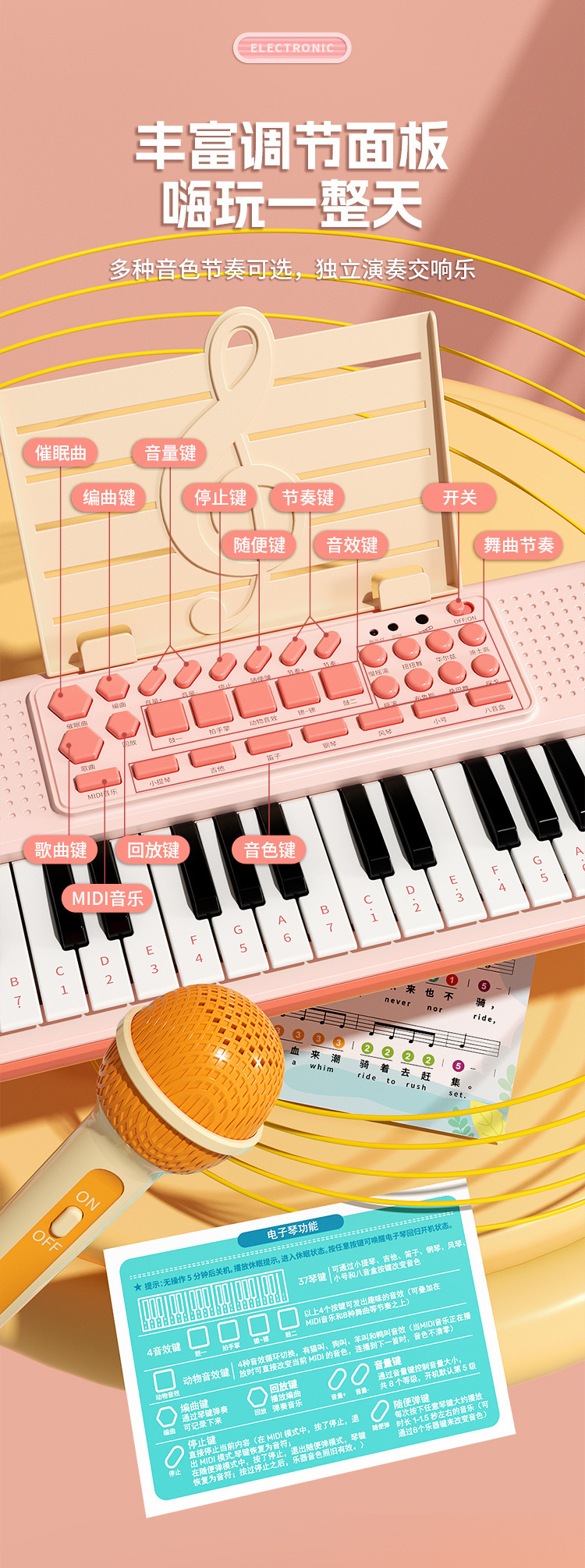 • 7094 대형 전자 오르간 핑크 (USB 충전 버전)