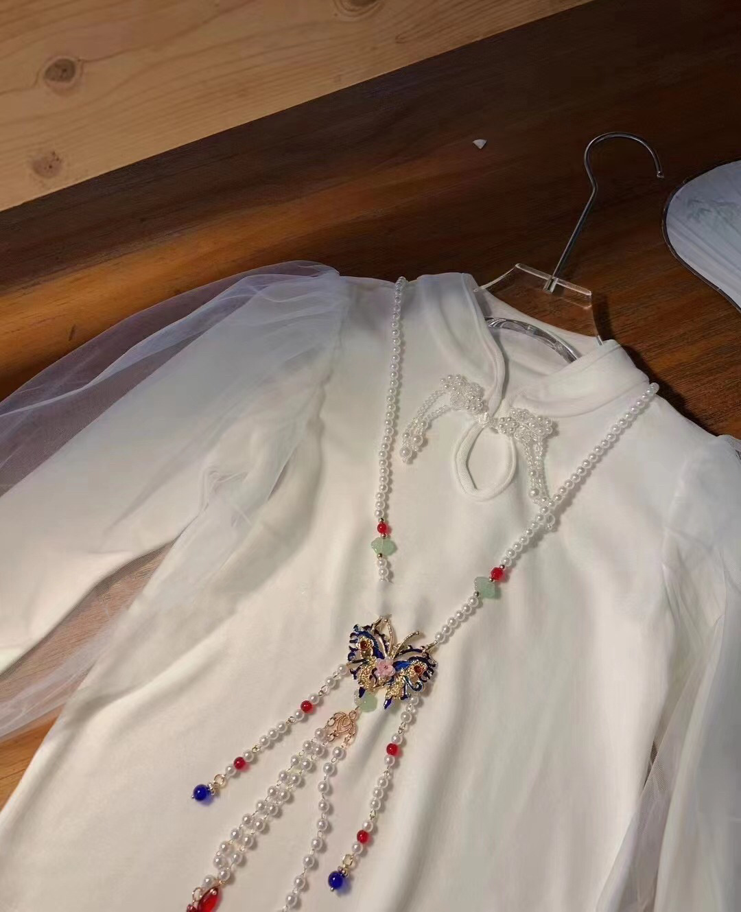 메쉬 버블 슬리브 중국 소녀 바닥 23 년 가을 새로운 진주 버클 슈퍼 소프트 조커 내셔널 스타일 외국 스타일스토어 가기