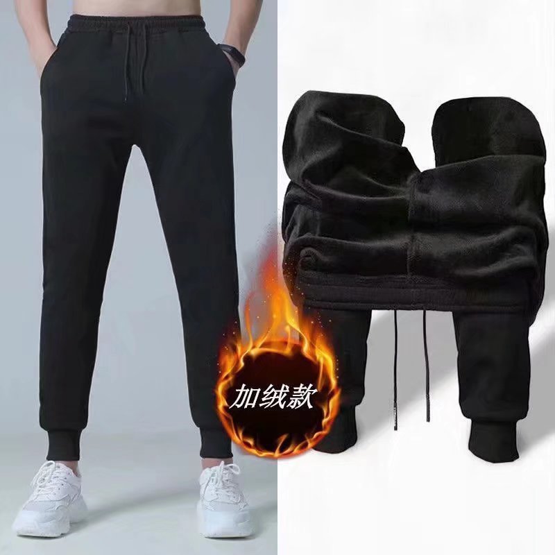 남성 스포츠 바지 루즈한 기모 두꺼운 2023 새로운 가을/겨울 한국 유행 가을/겨울 플러스 사이즈 캐주얼 바지스토어 가기