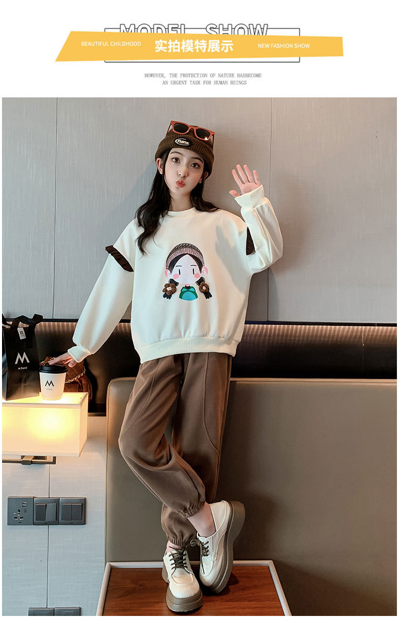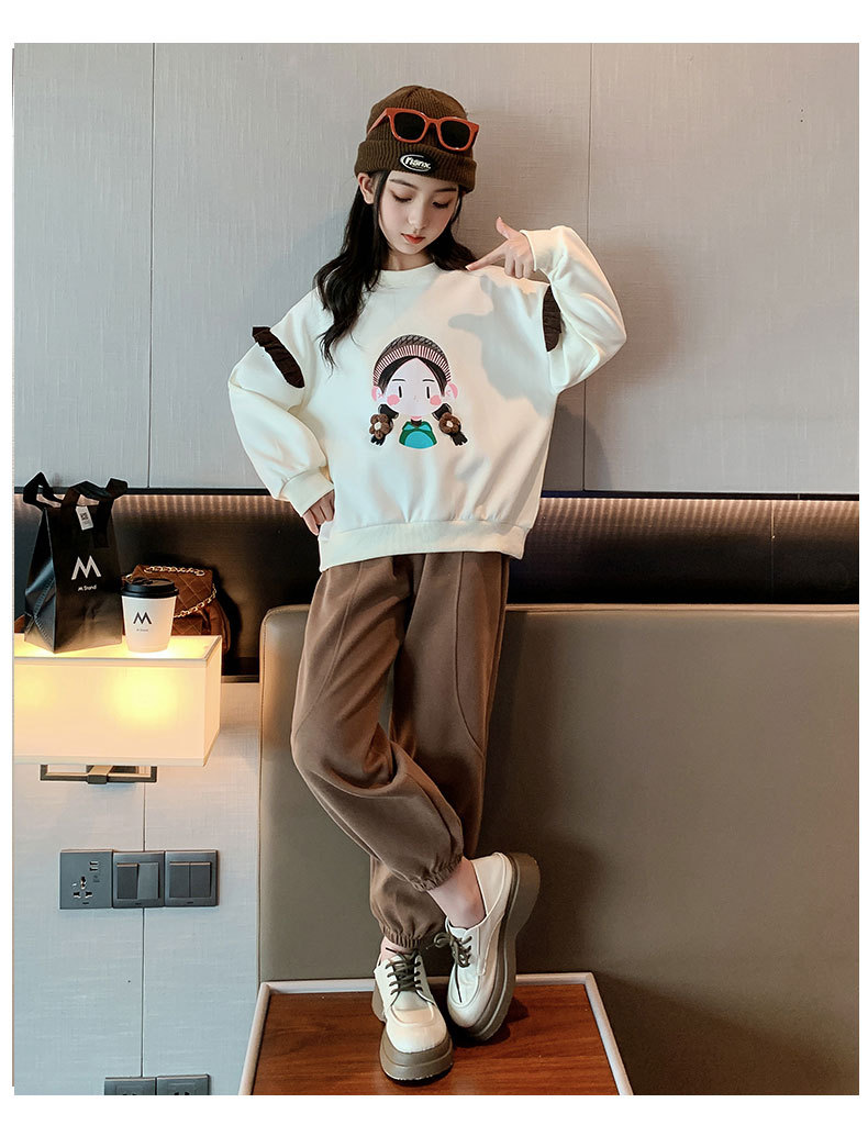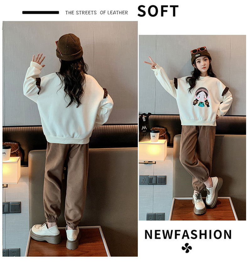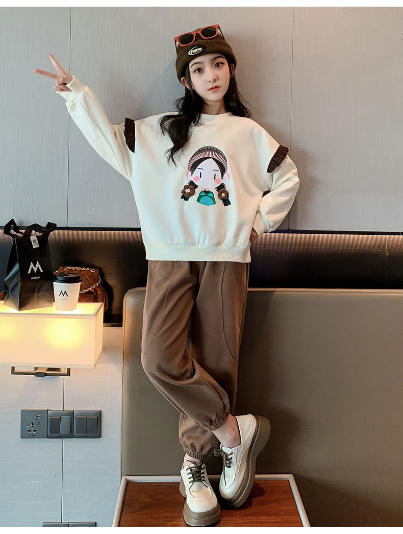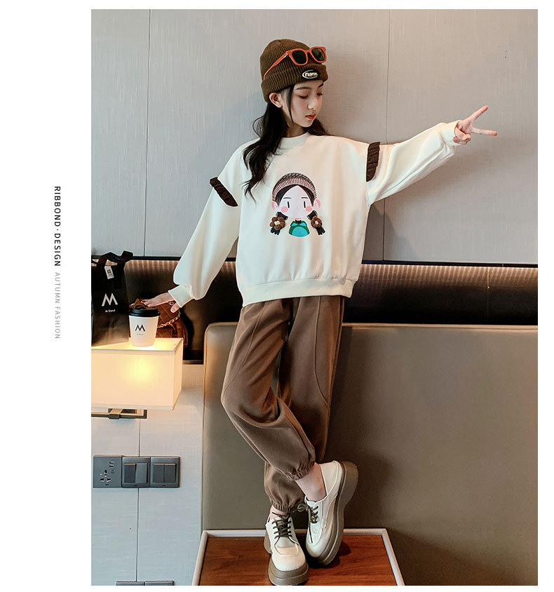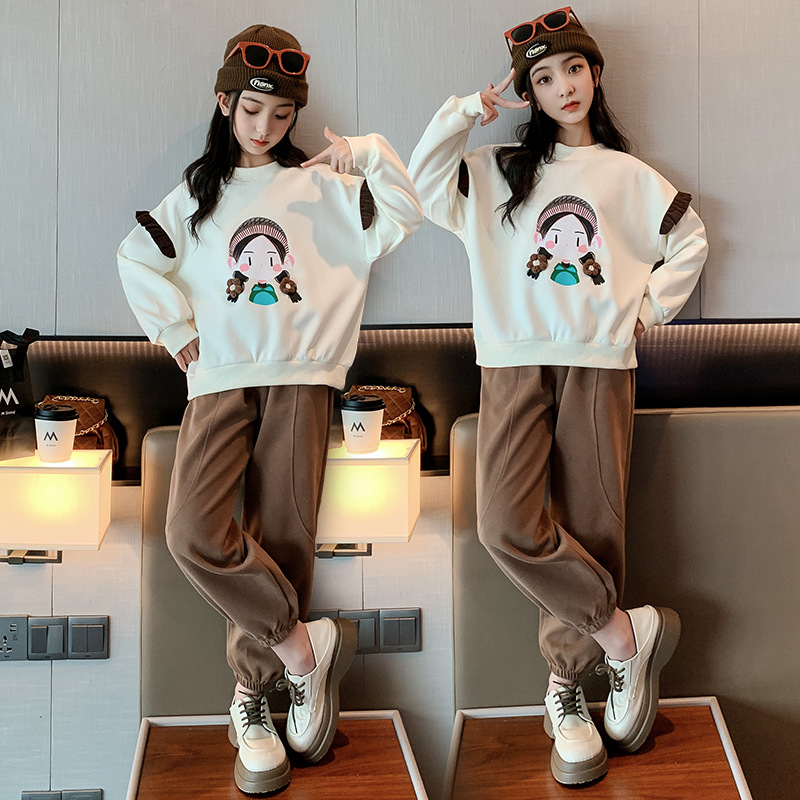 여아 봄과 가을 세트 2023 새로운 어린이 서양 스타일 인터넷 연예인 큰 어린이 한국 스타일 유행 가을 옷 튀김 거리 투피스 세트