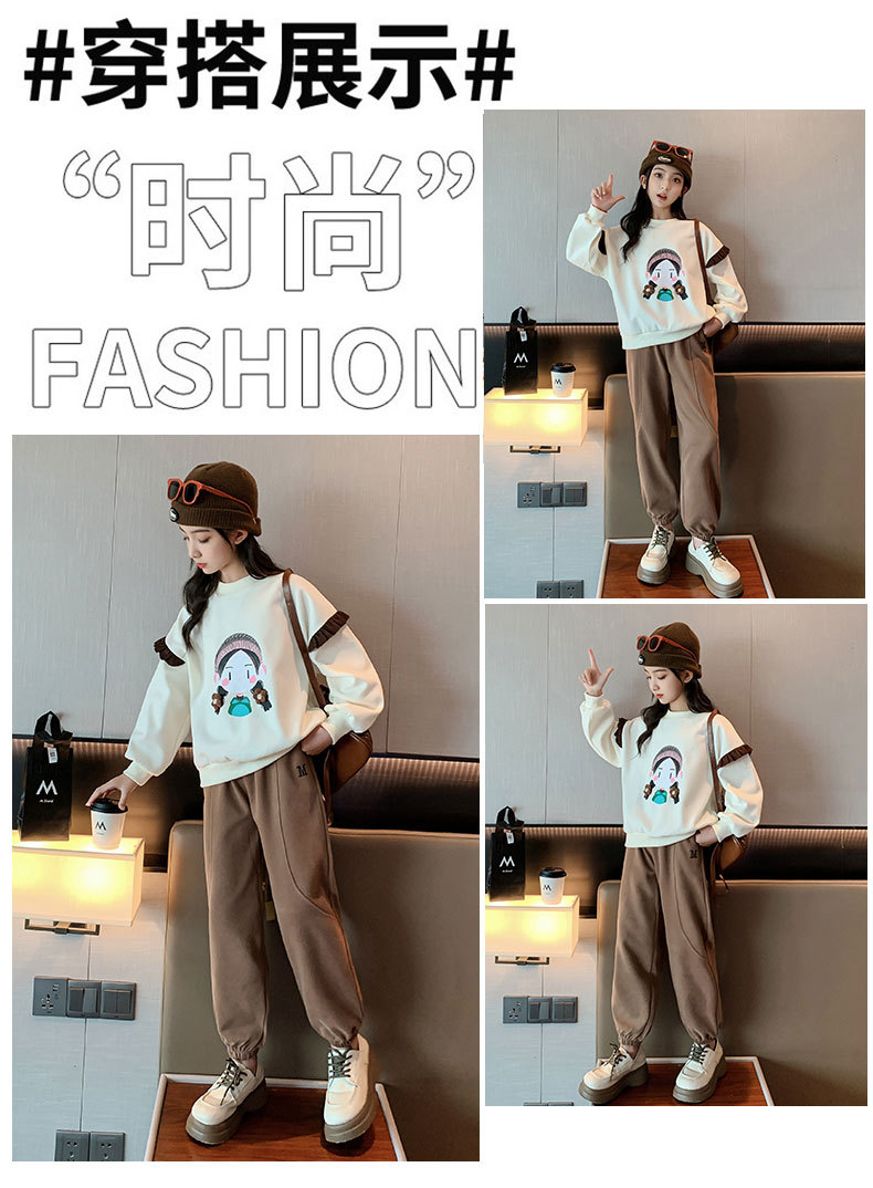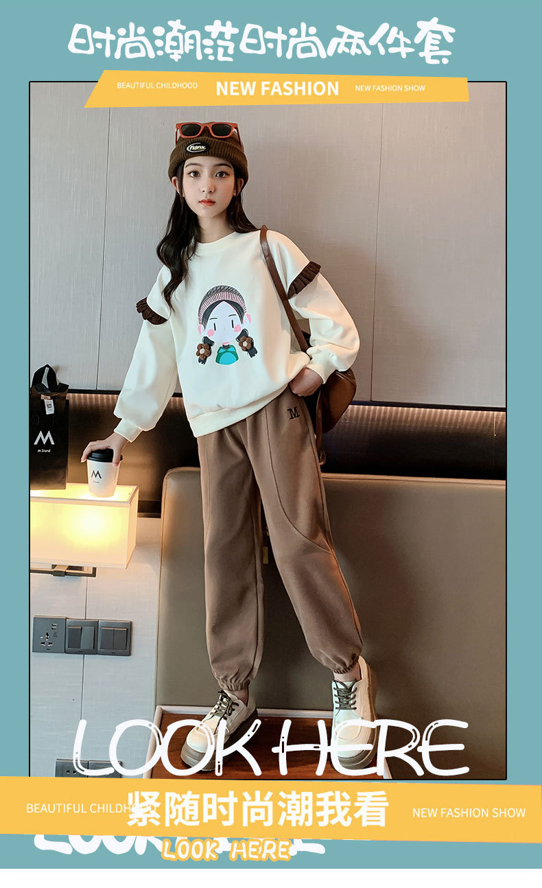 여아 봄과 가을 세트 2023 새로운 어린이 서양 스타일 인터넷 연예인 큰 어린이 한국 스타일 유행 가을 옷 튀김 거리 투피스 세트스토어 가기