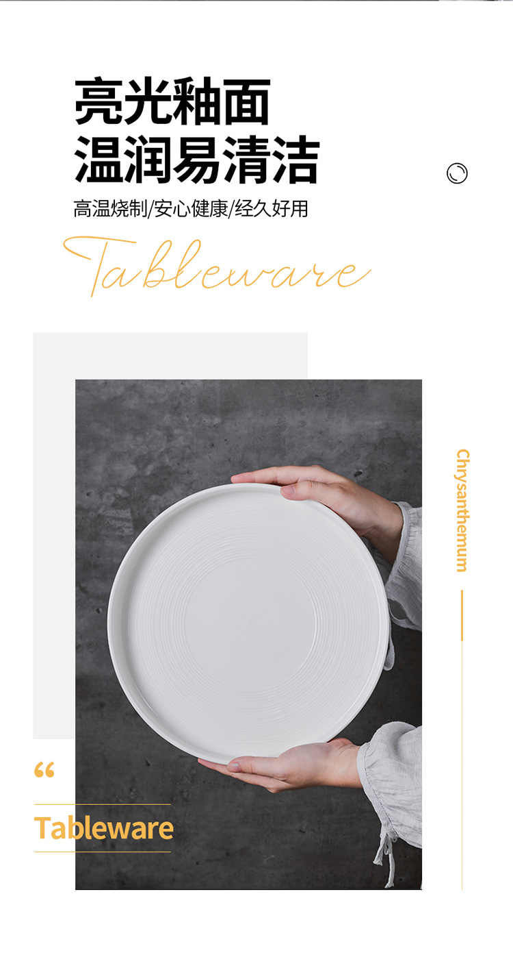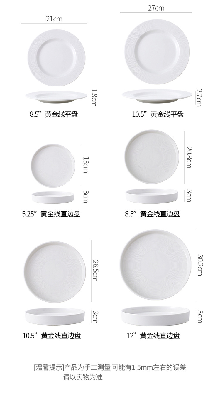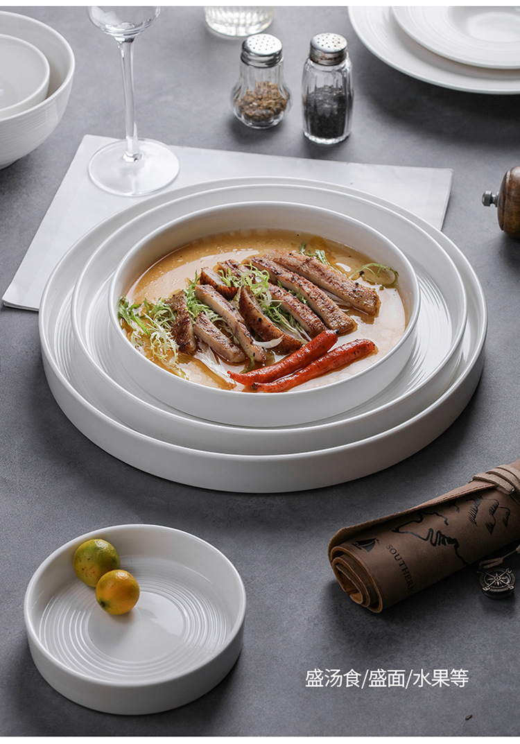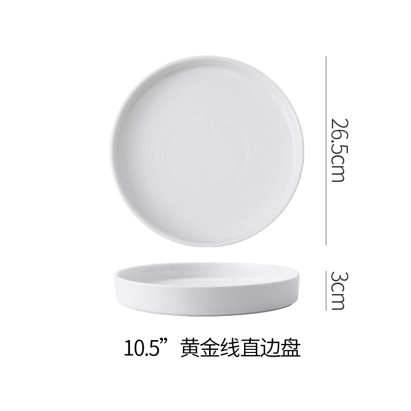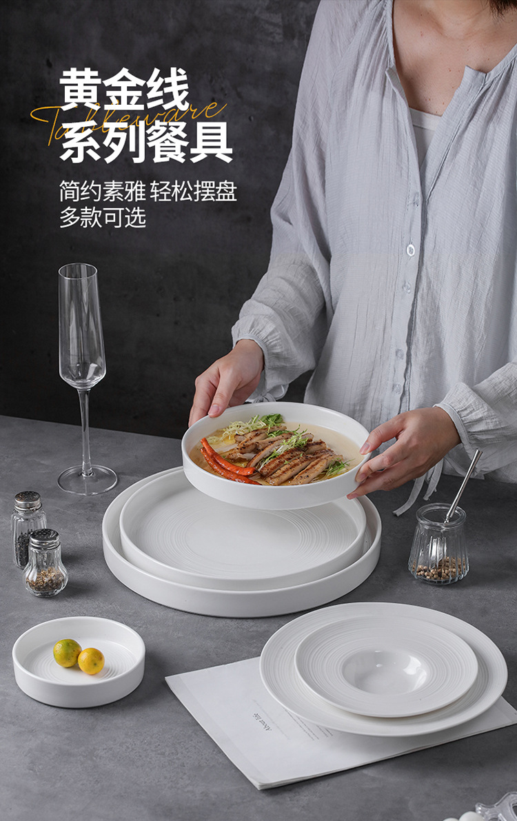 심플한 세라믹 라인 서양식 디너 플레이트, 플랫 플레이트, 수프 플레이트, 샐러드 플레이트, 밀짚 모자 플레이트, 가정용 접시, 고급 식기스토어 가기