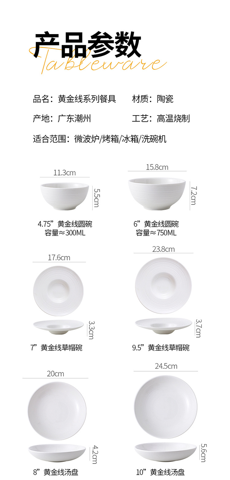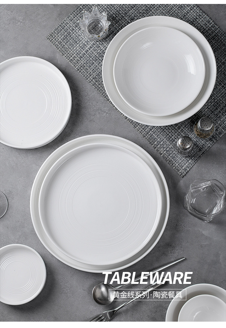 심플한 세라믹 라인 서양식 디너 플레이트, 플랫 플레이트, 수프 플레이트, 샐러드 플레이트, 밀짚 모자 플레이트, 가정용 접시, 고급 식기