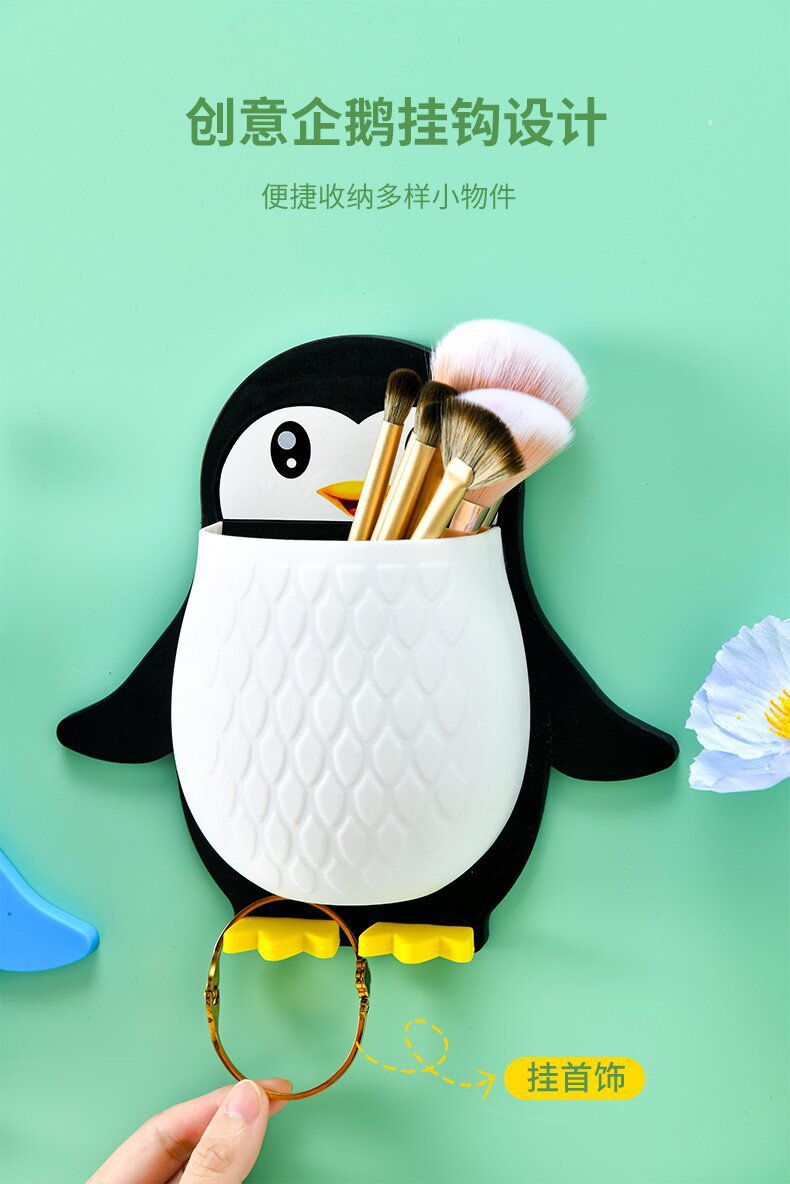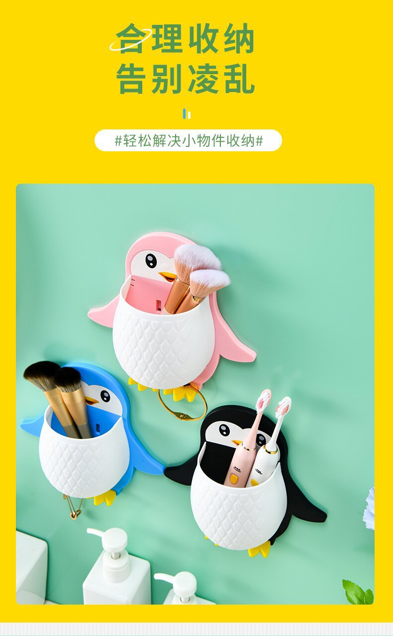 새로운 귀여운 펭귄 수납 선반, 욕실 칫솔 화장품 벽걸이 수납, 기숙사 침대 옆 정리함스토어 가기