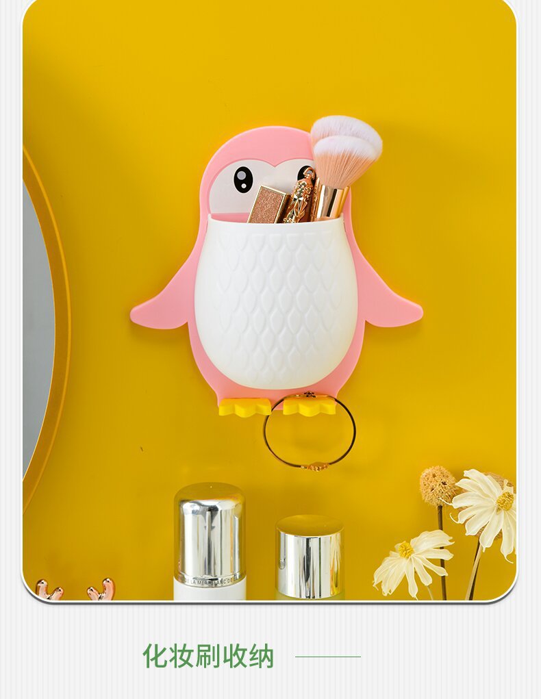 새로운 귀여운 펭귄 수납 선반, 욕실 칫솔 화장품 벽걸이 수납, 기숙사 침대 옆 정리함