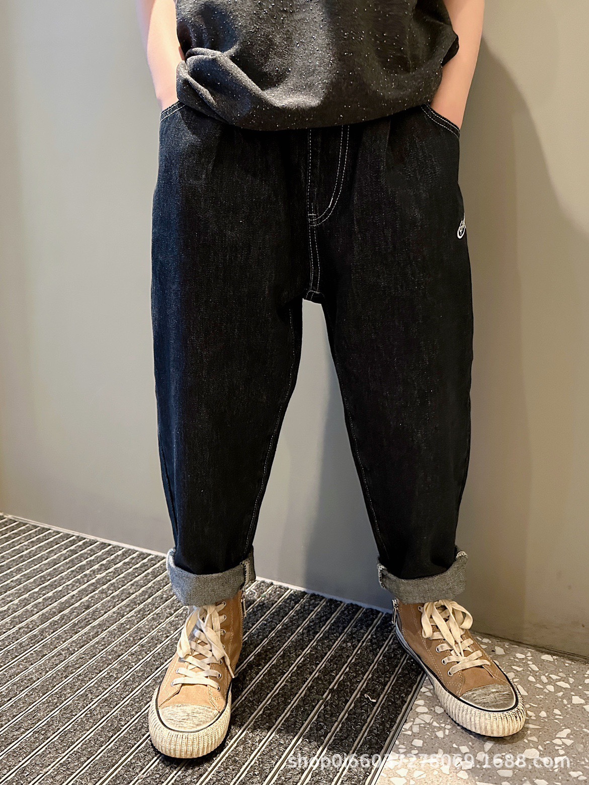 소년 청바지 일본 아동복 대형 어린이 봄과 가을 부드러운 데님 바지 올 매치 유행 소년 유행 바지스토어 가기