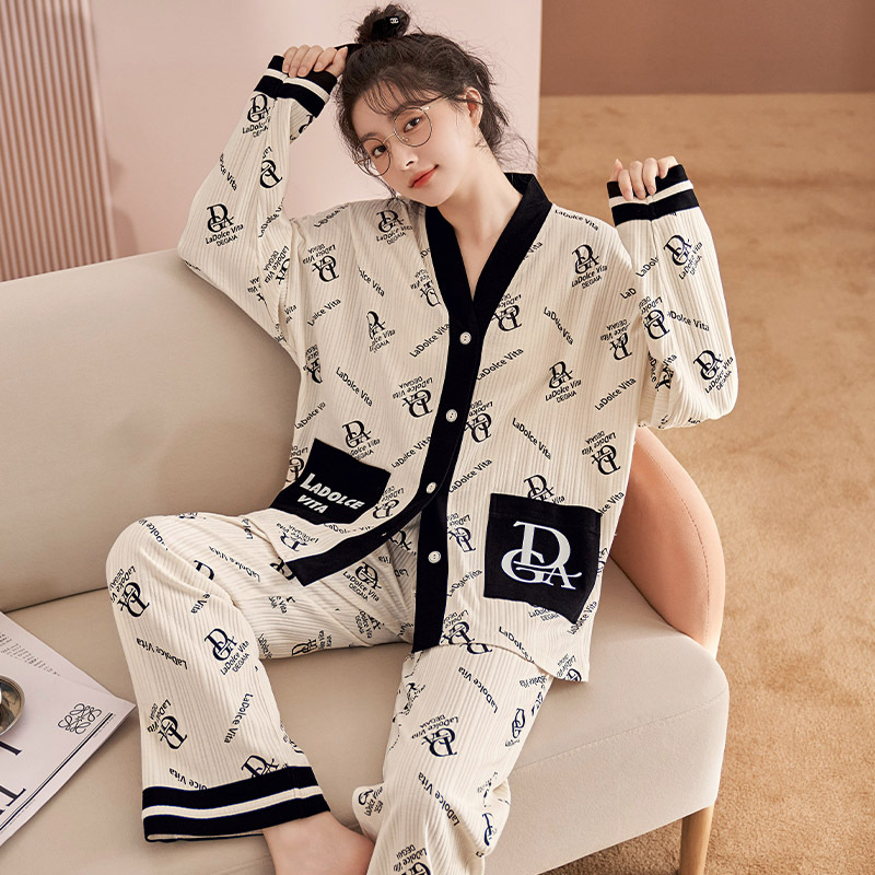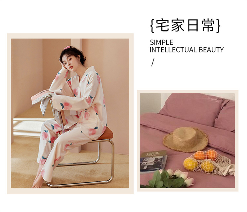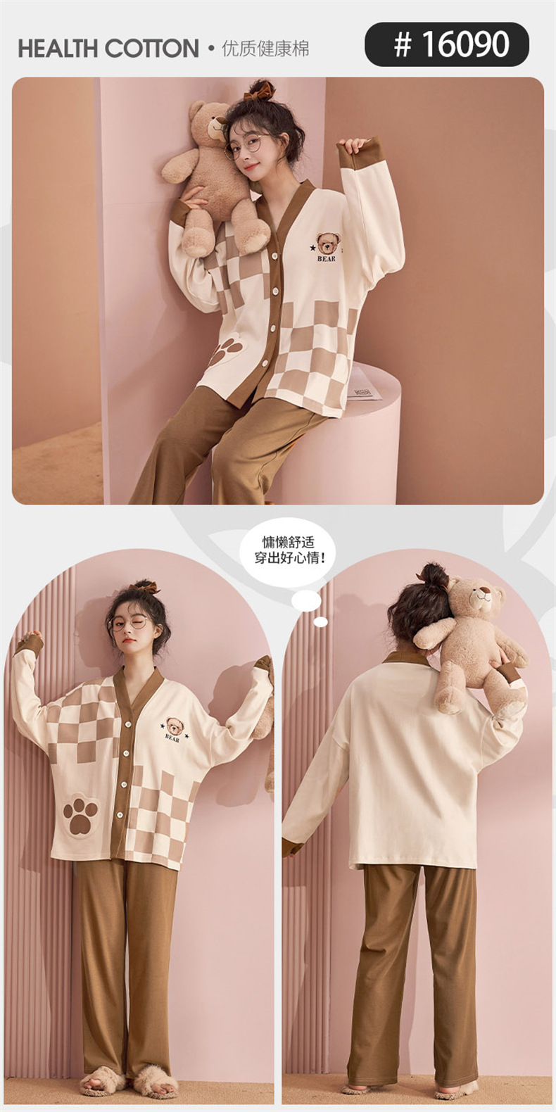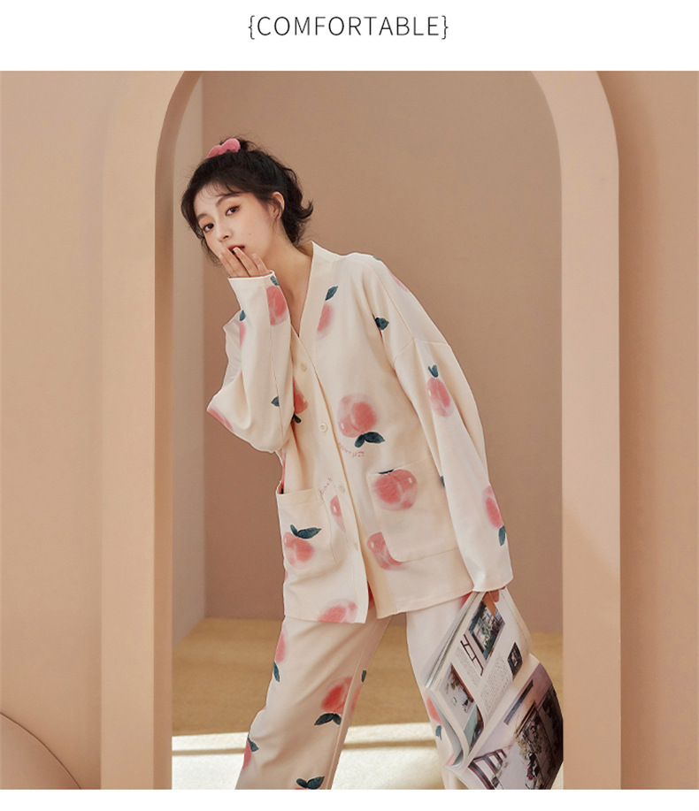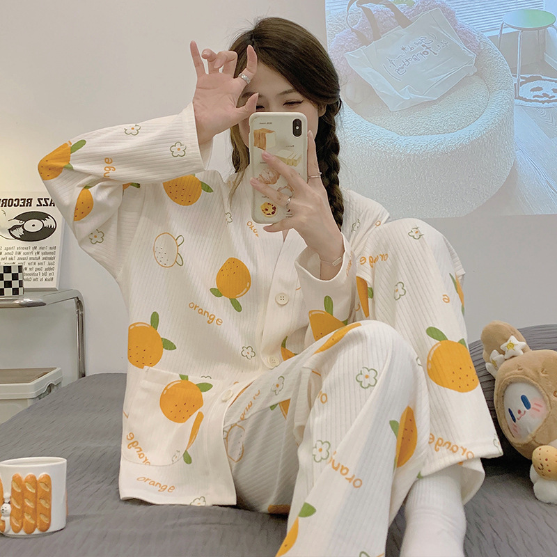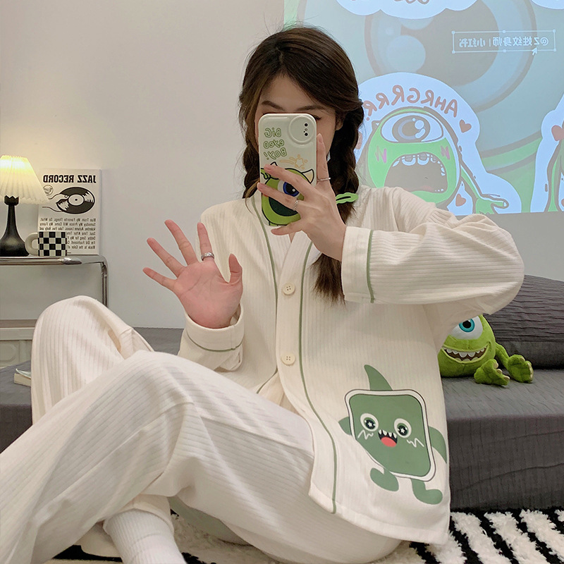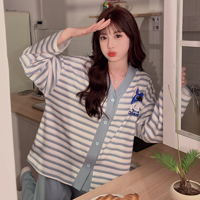 2024 신상 여성 잠옷 봄, 가을 긴팔 달콤하고 귀여운 V 넥 가디건 학생 가정복은 밖에서 착용 가능스토어 가기