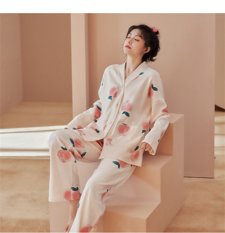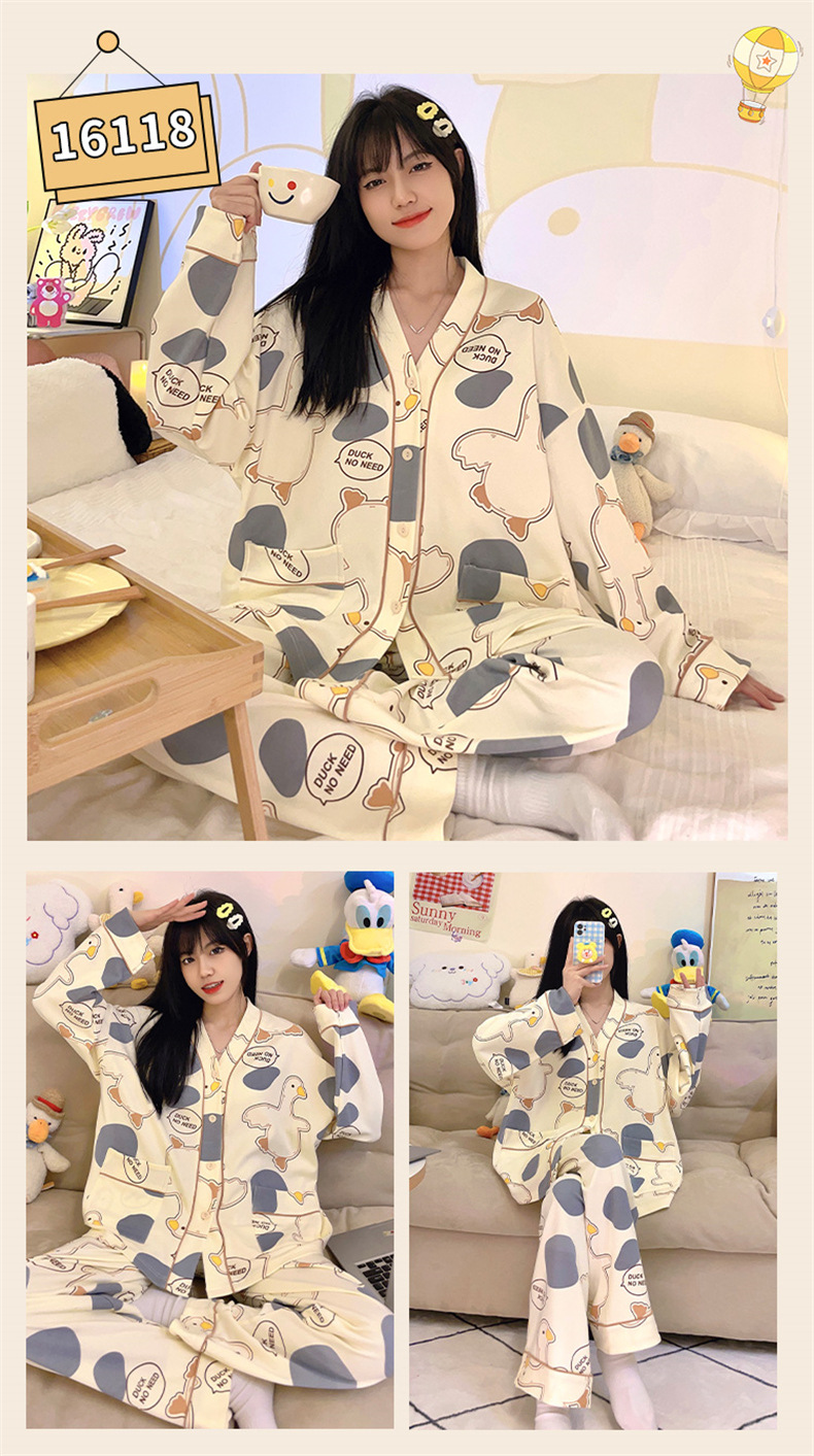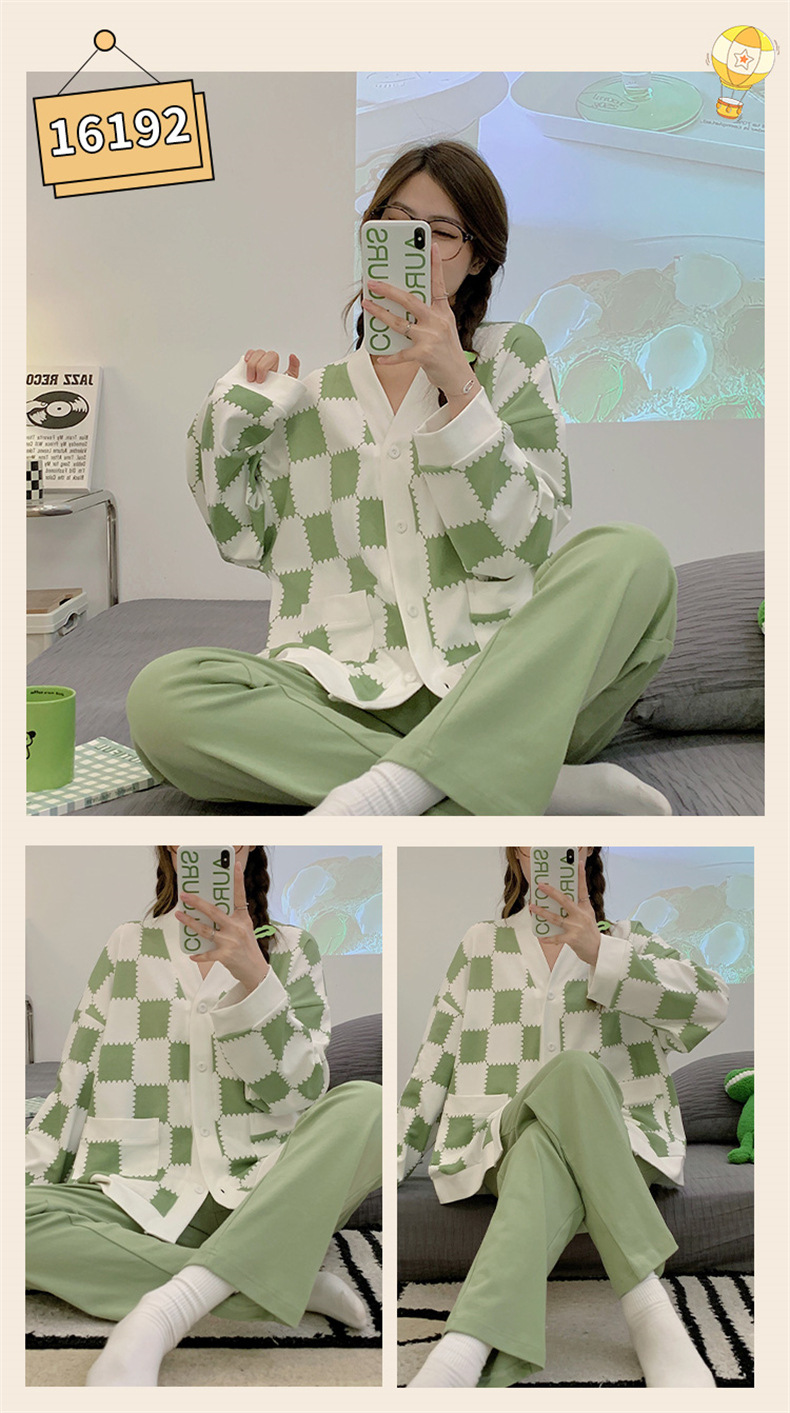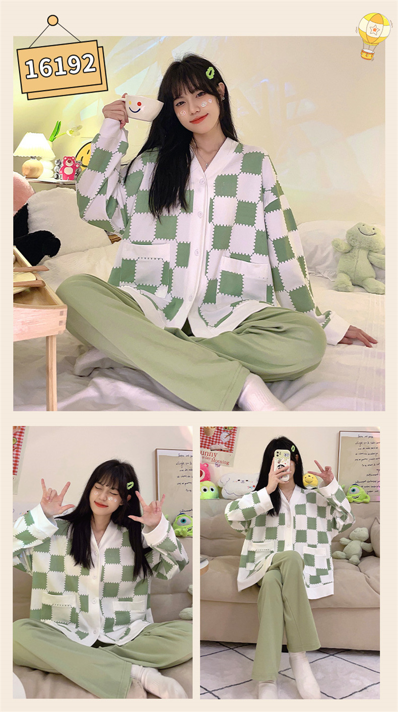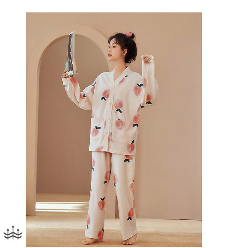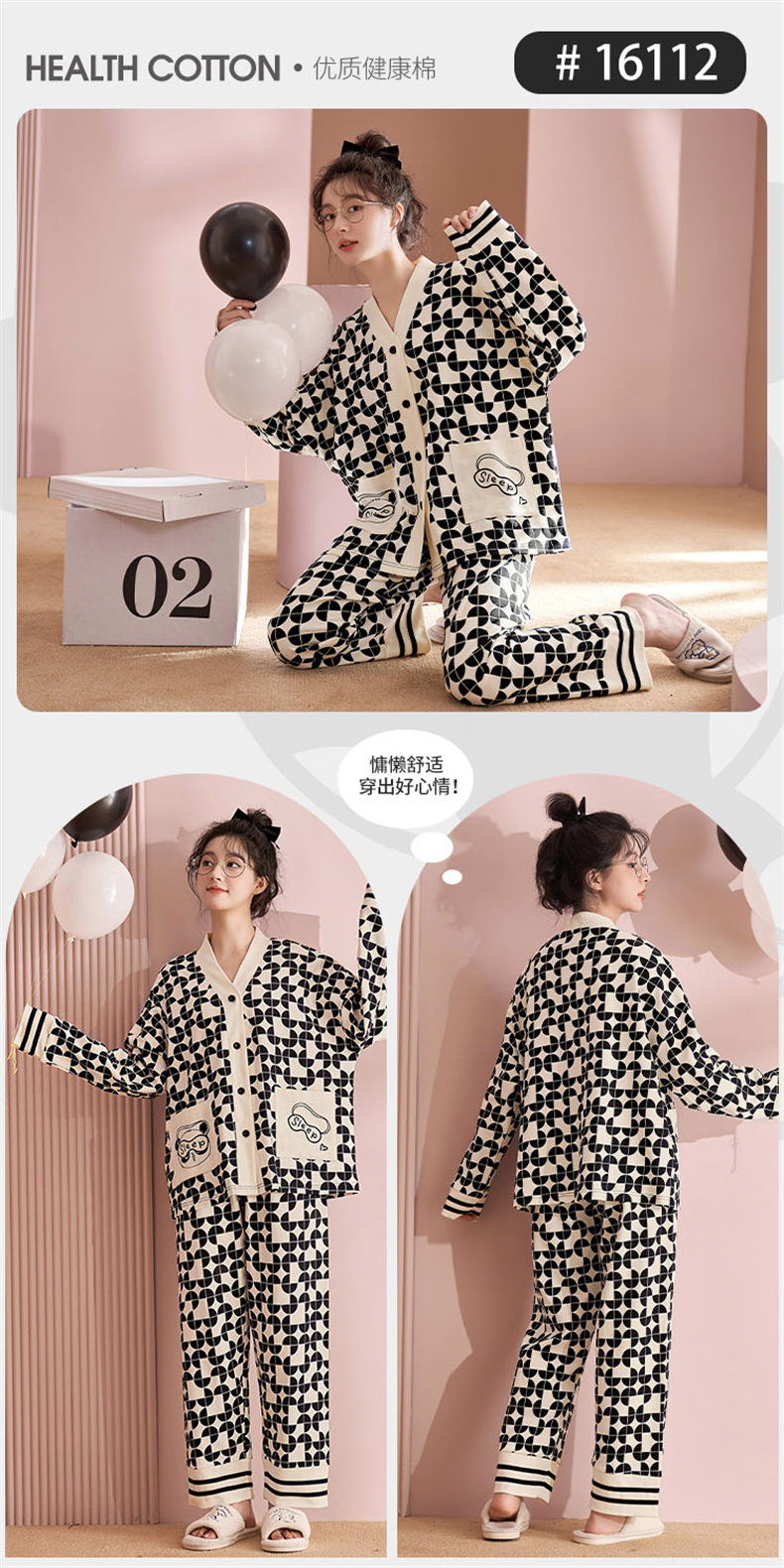 2024 신상 여성 잠옷 봄, 가을 긴팔 달콤하고 귀여운 V 넥 가디건 학생 가정복은 밖에서 착용 가능스토어 가기