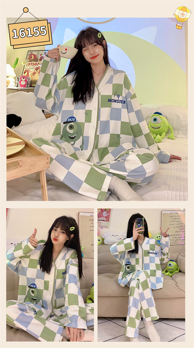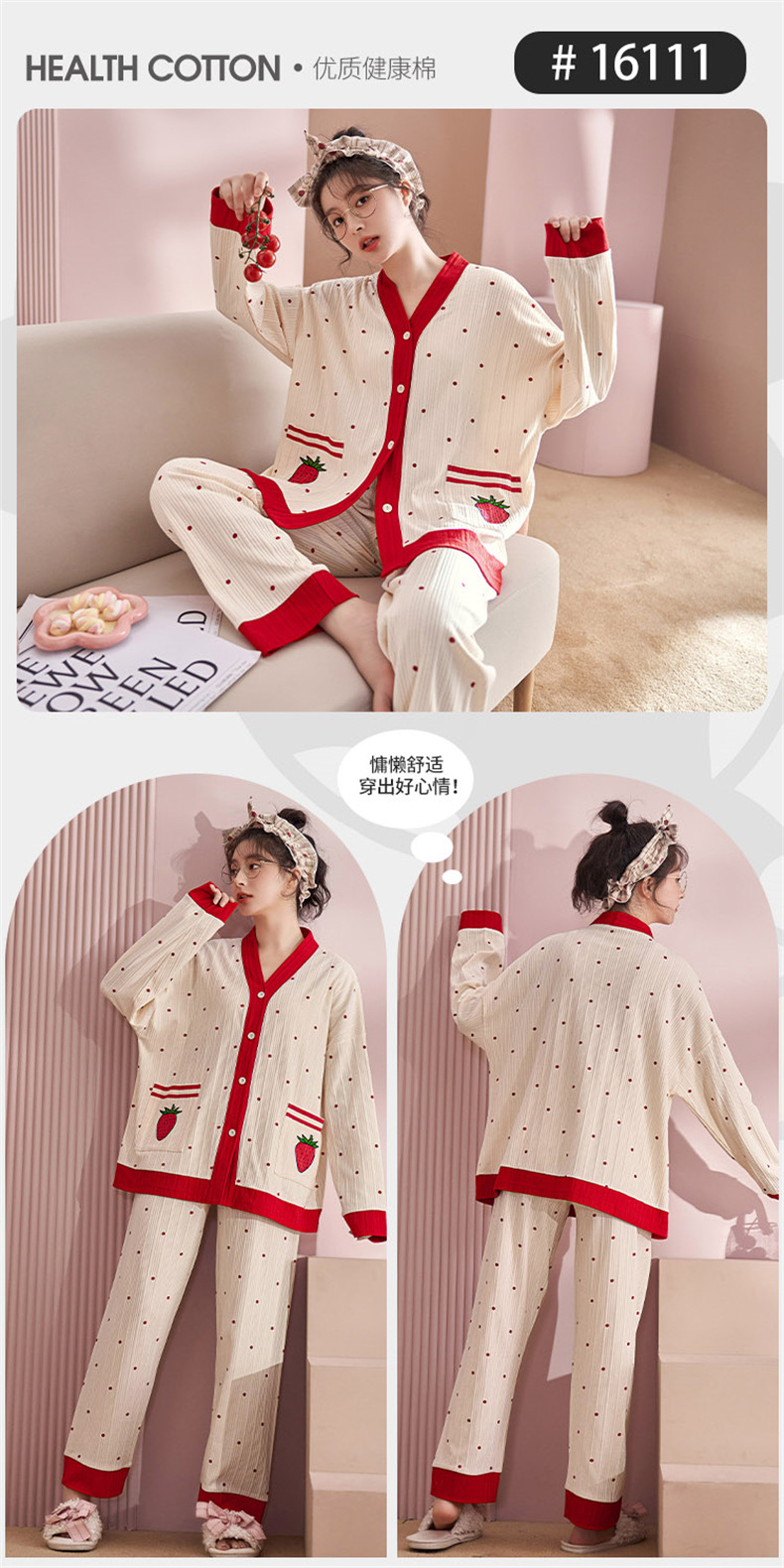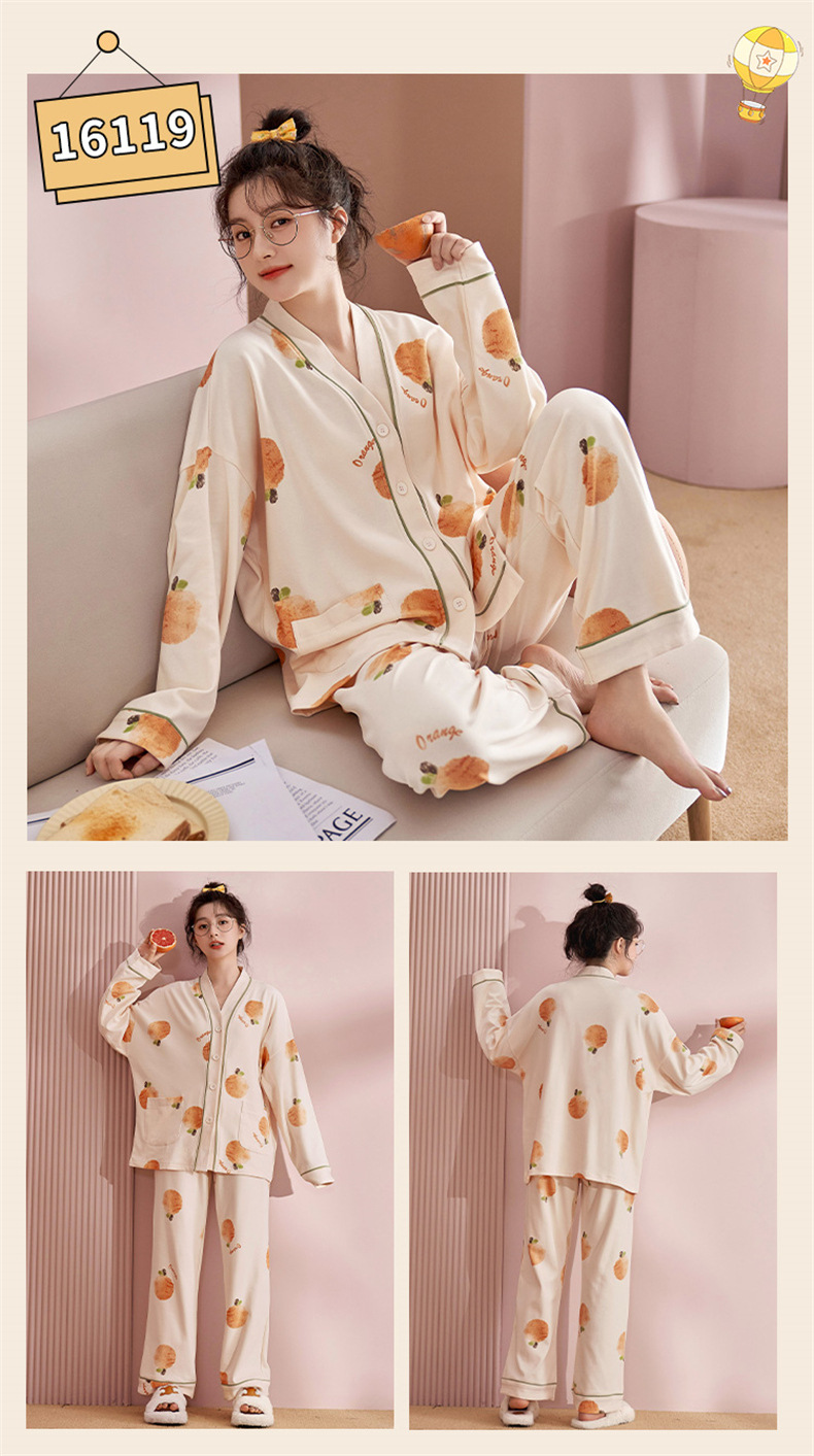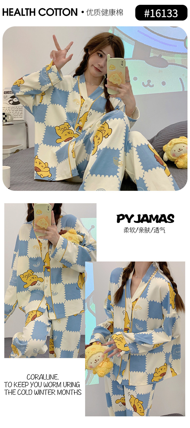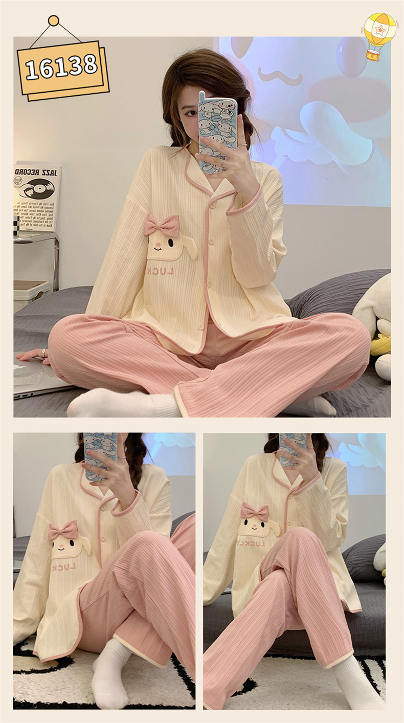 2024 신상 여성 잠옷 봄, 가을 긴팔 달콤하고 귀여운 V 넥 가디건 학생 가정복은 밖에서 착용 가능스토어 가기