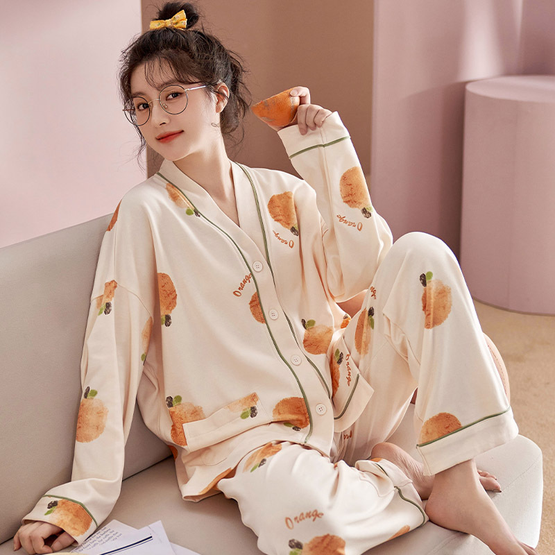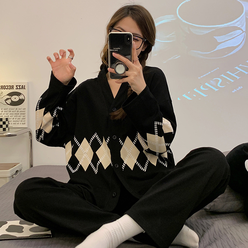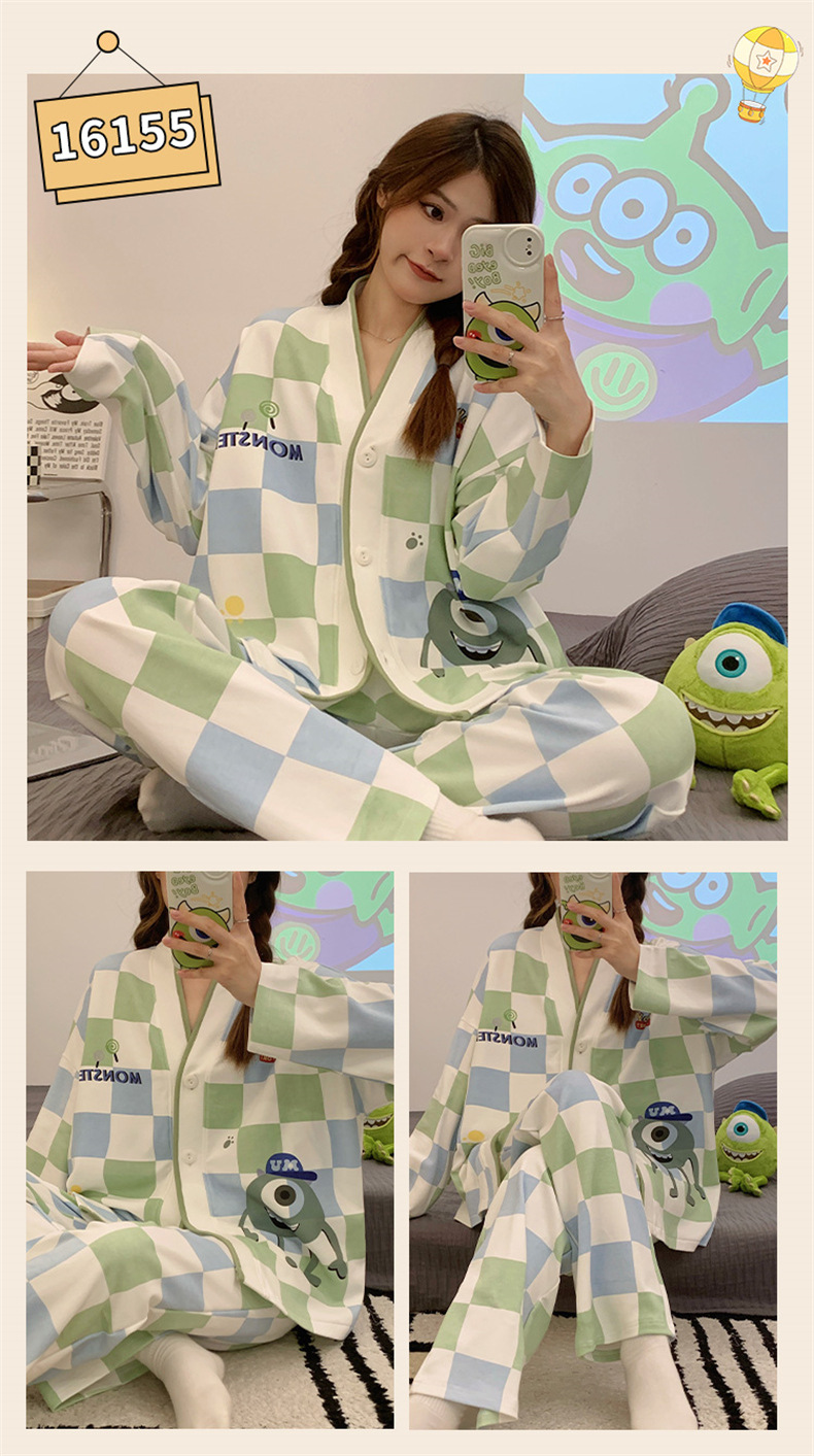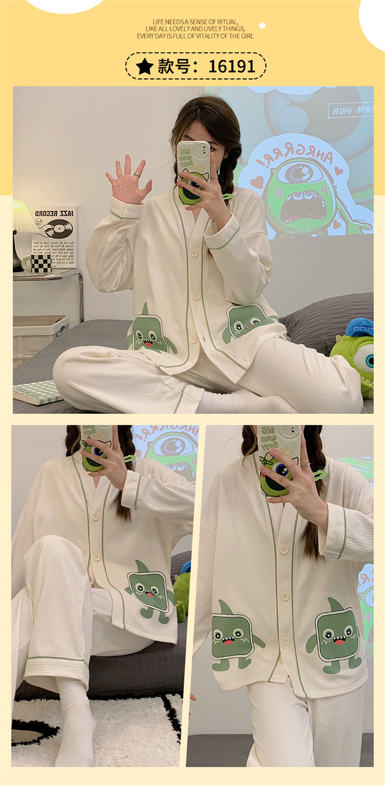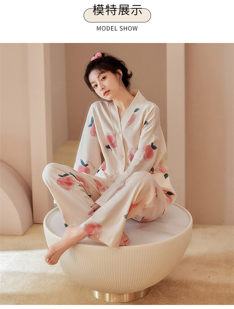 2024 신상 여성 잠옷 봄, 가을 긴팔 달콤하고 귀여운 V 넥 가디건 학생 가정복은 밖에서 착용 가능스토어 가기