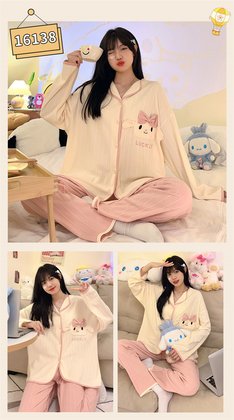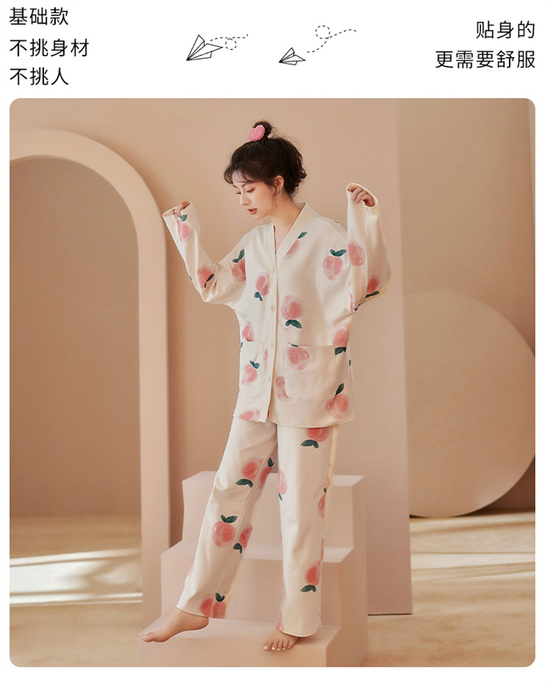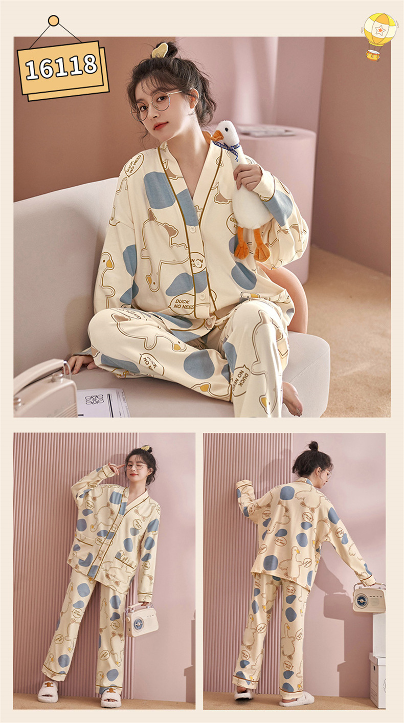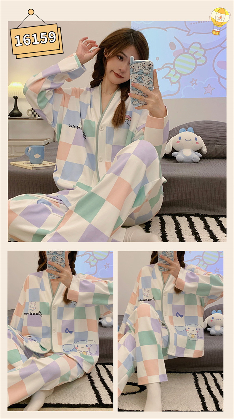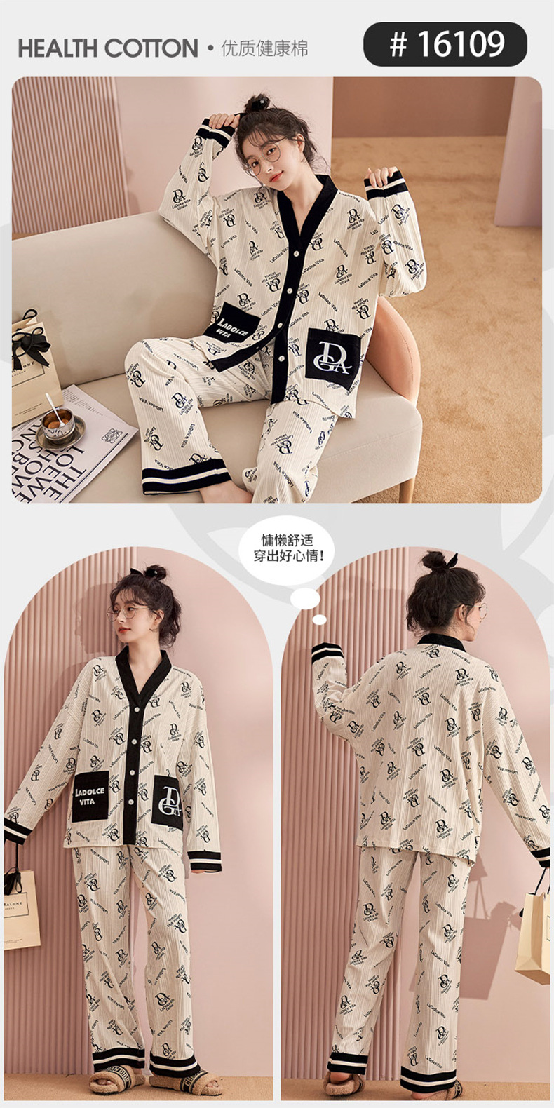 2024 신상 여성 잠옷 봄, 가을 긴팔 달콤하고 귀여운 V 넥 가디건 학생 가정복은 밖에서 착용 가능스토어 가기