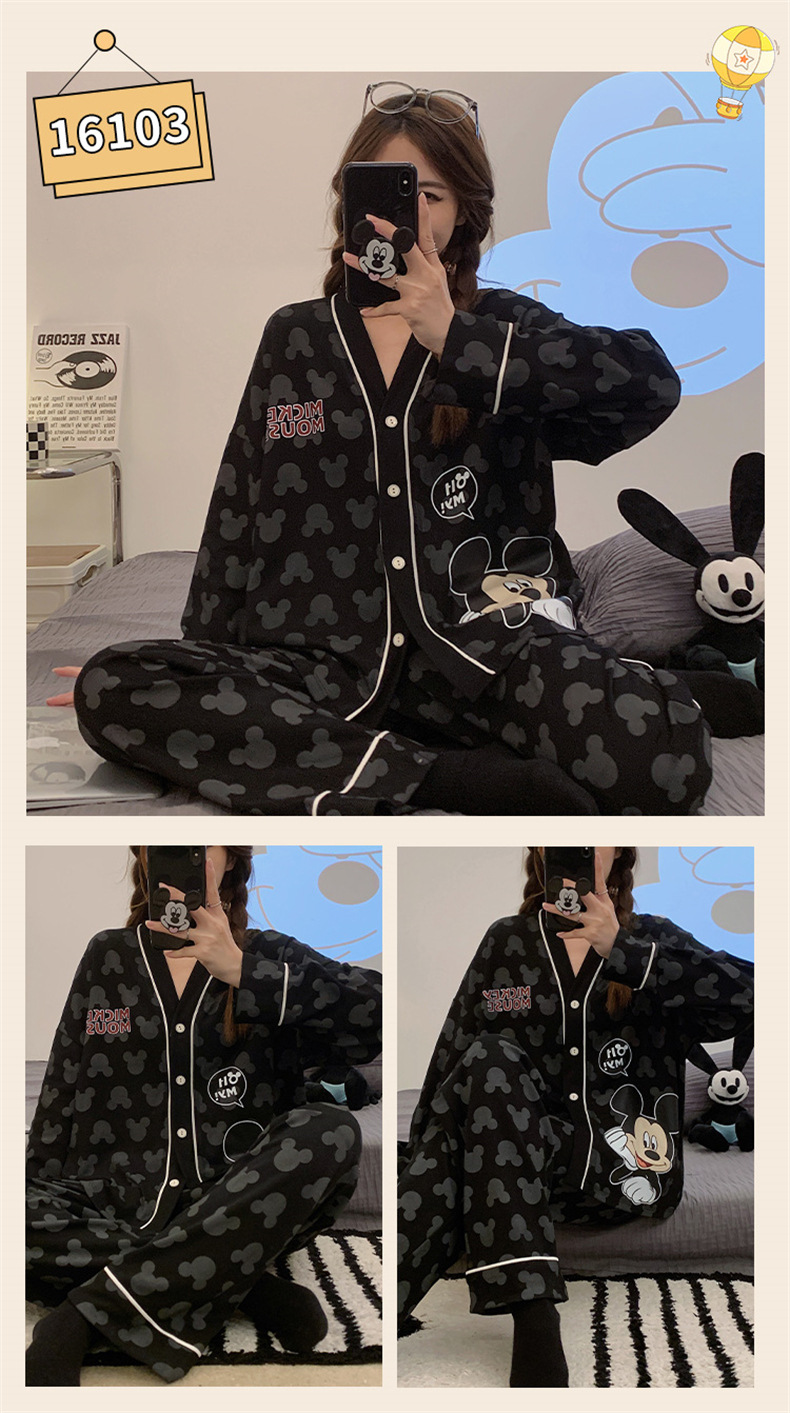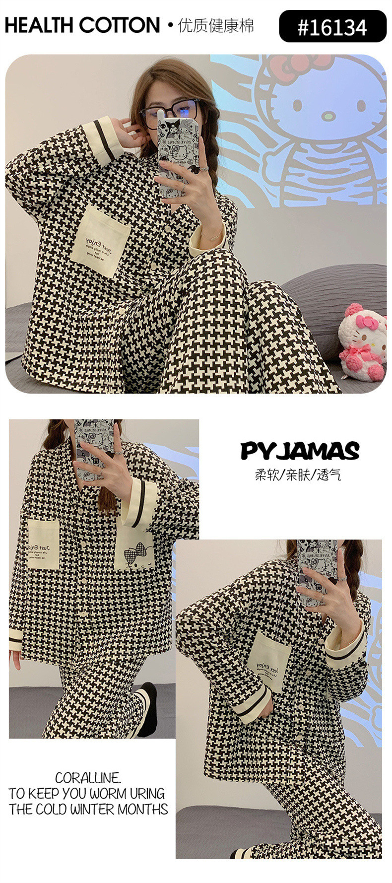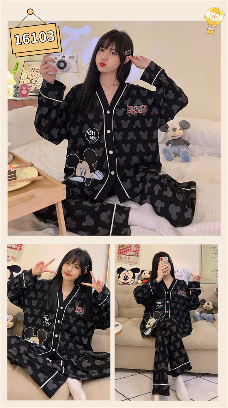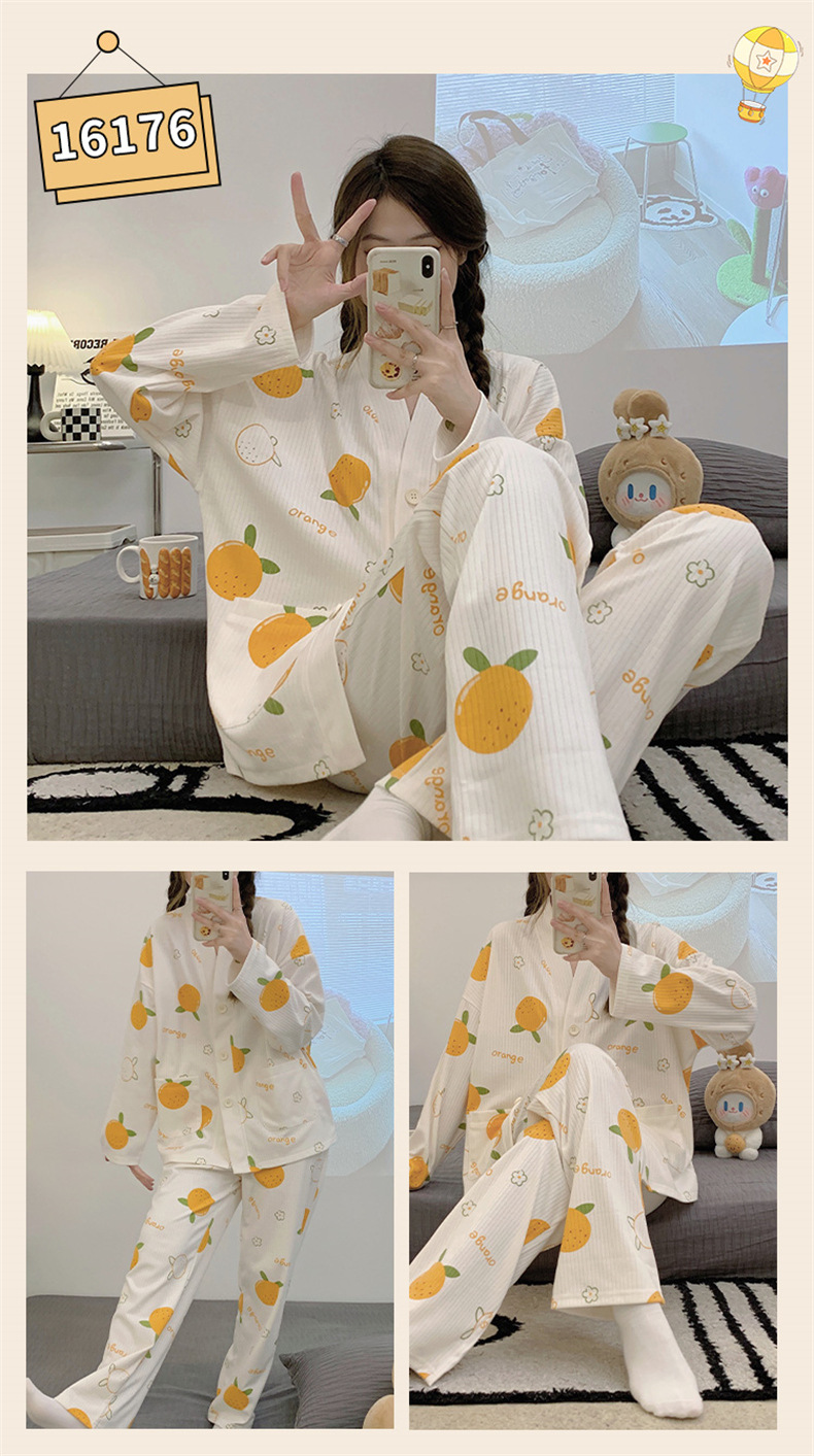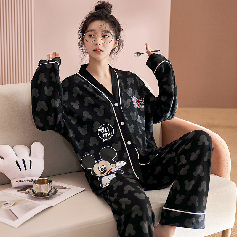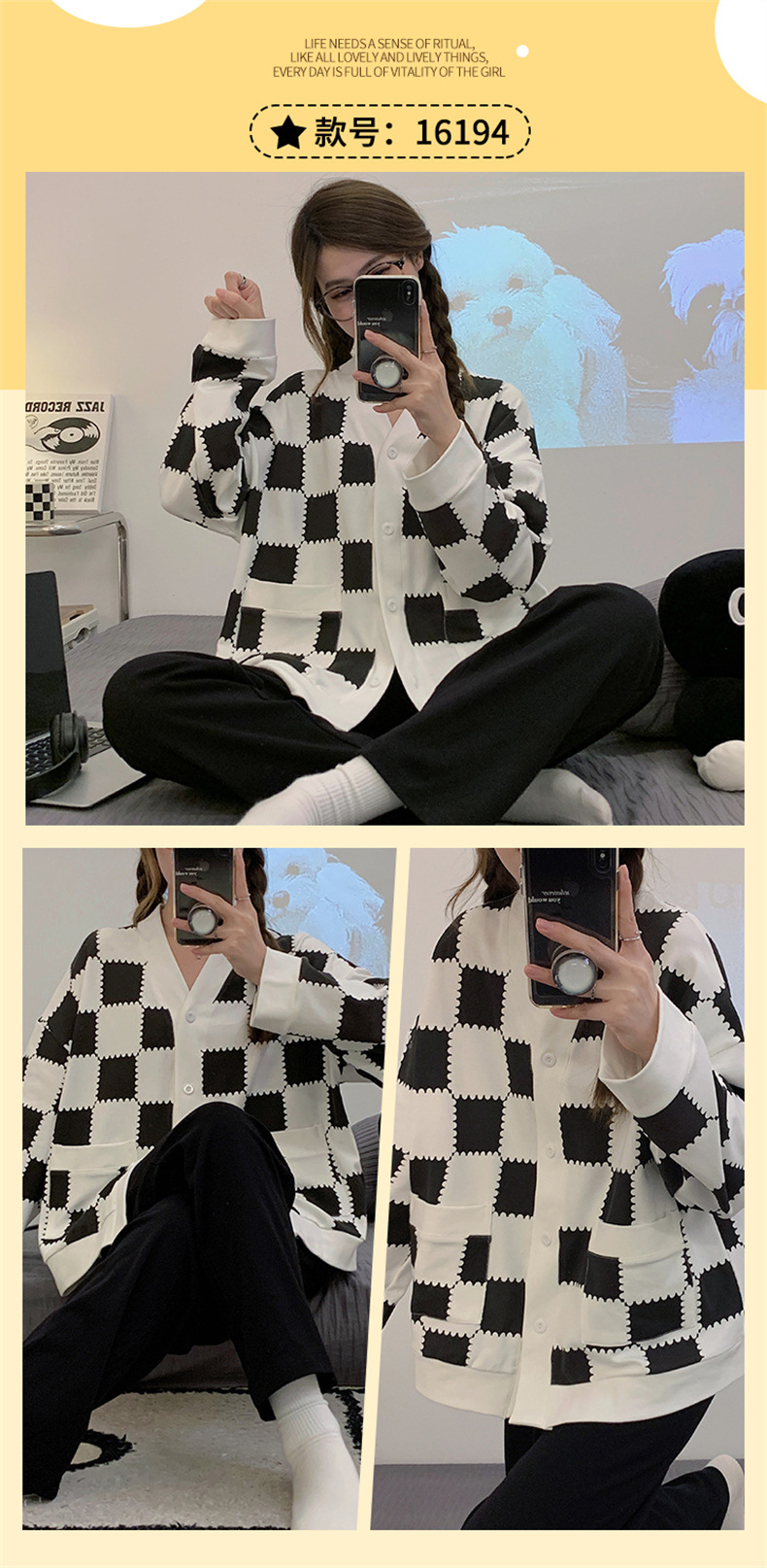 2024 신상 여성 잠옷 봄, 가을 긴팔 달콤하고 귀여운 V 넥 가디건 학생 가정복은 밖에서 착용 가능스토어 가기