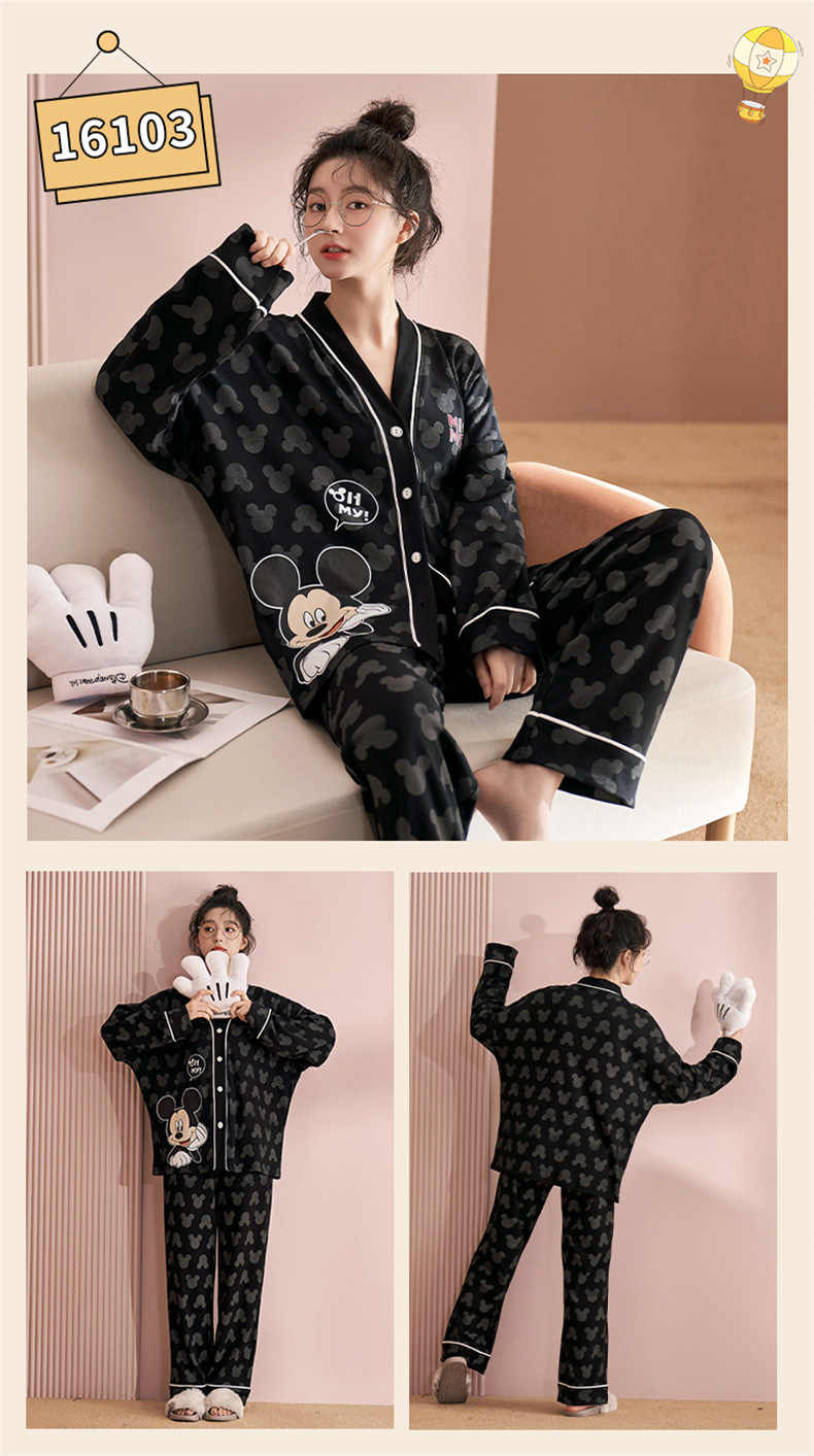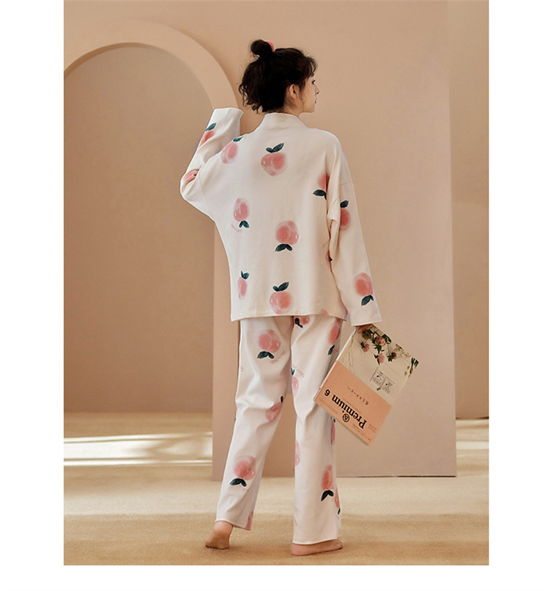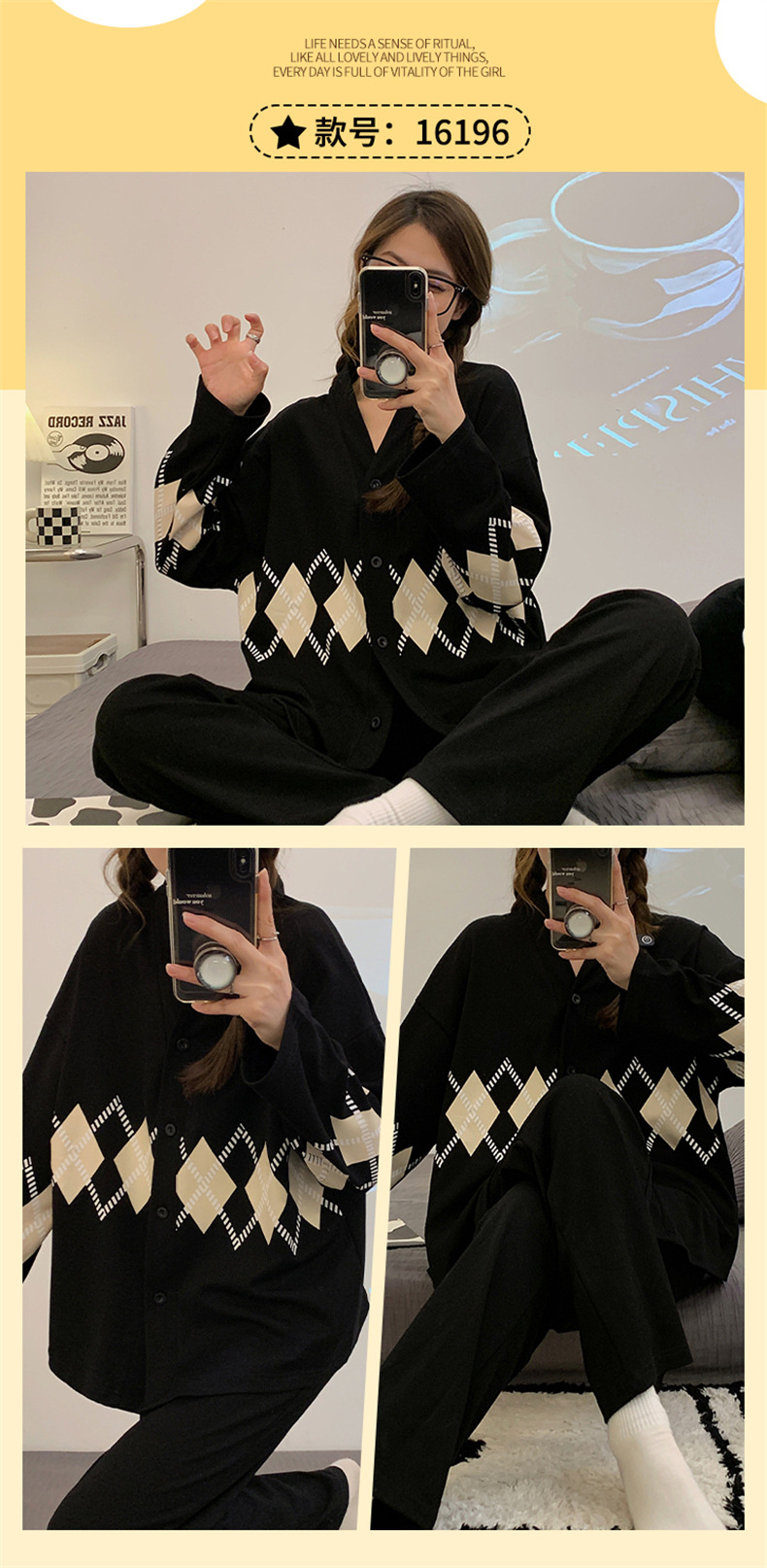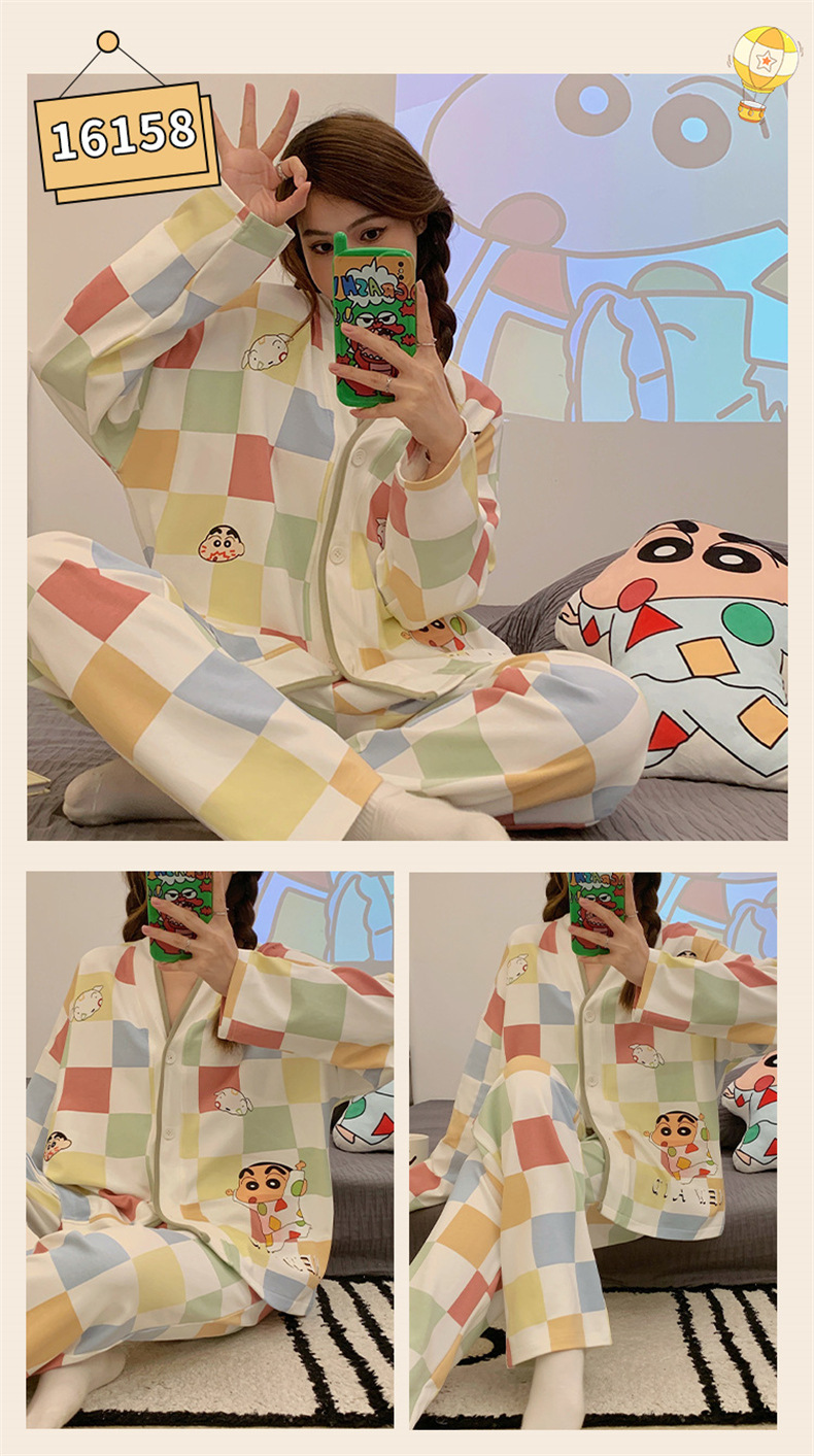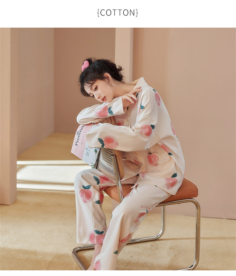 2024 신상 여성 잠옷 봄, 가을 긴팔 달콤하고 귀여운 V 넥 가디건 학생 가정복은 밖에서 착용 가능스토어 가기