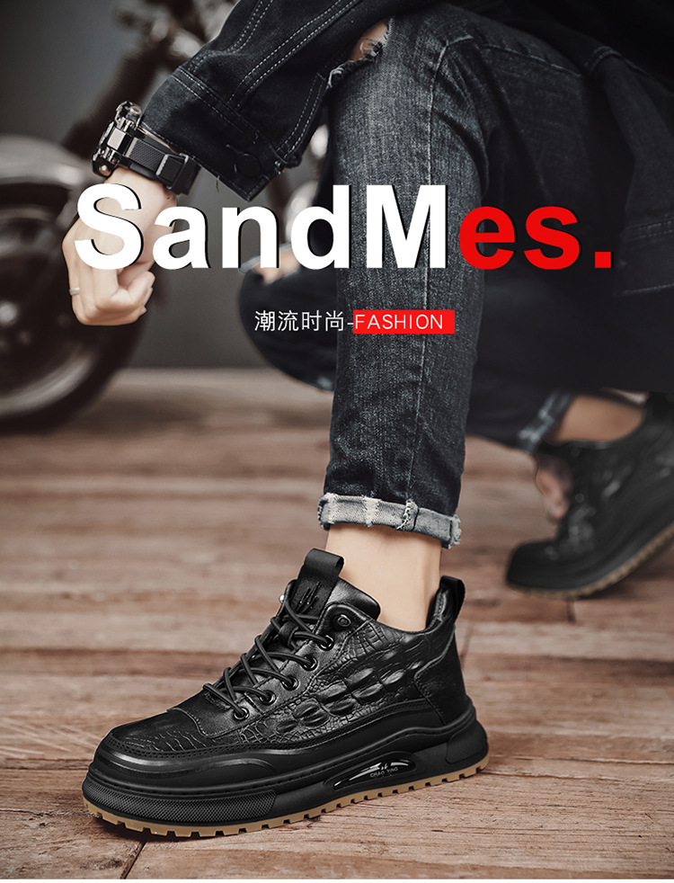 크로스 보더 2023 미드 탑 가을과 겨울 새로운 악어 패턴 하이탑 남성 신발 야외 스포츠 캐주얼 신발 블랙 아빠 신발스토어 가기