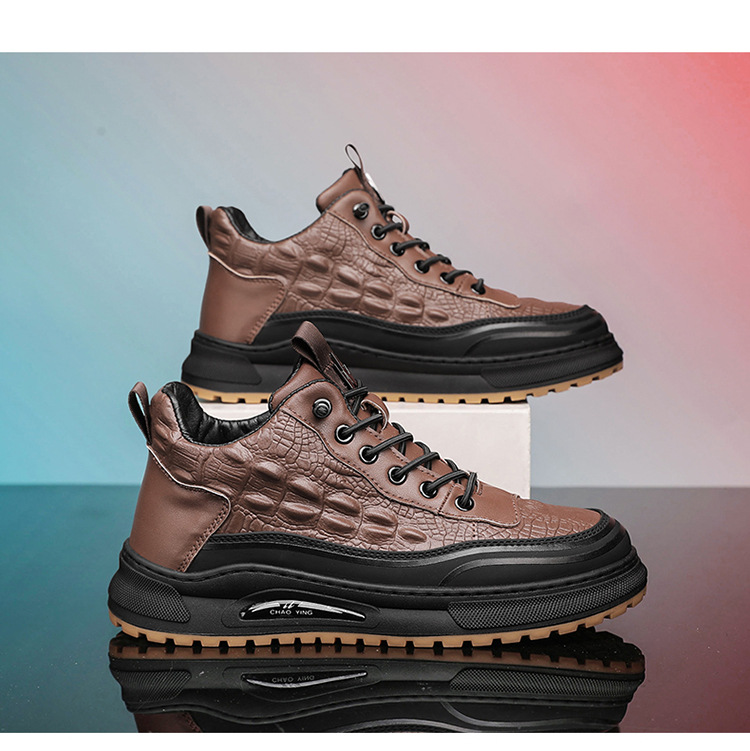 크로스 보더 2023 미드 탑 가을과 겨울 새로운 악어 패턴 하이탑 남성 신발 야외 스포츠 캐주얼 신발 블랙 아빠 신발