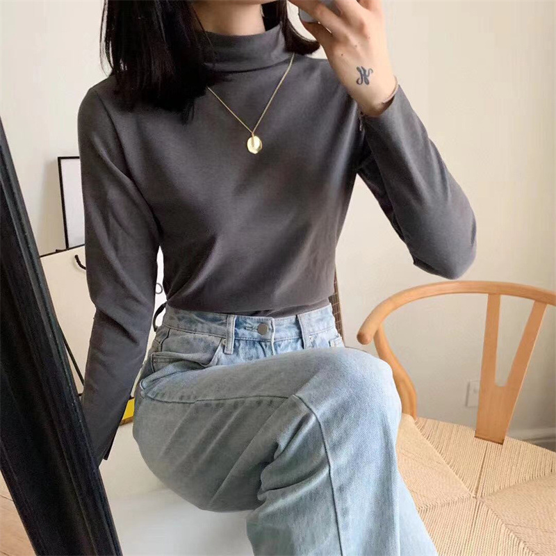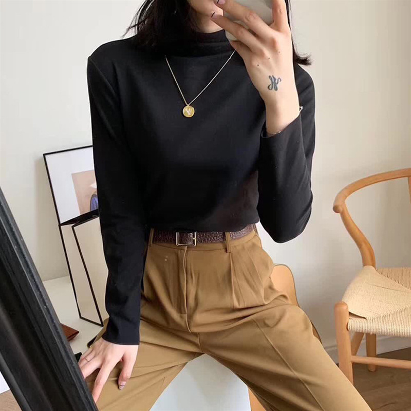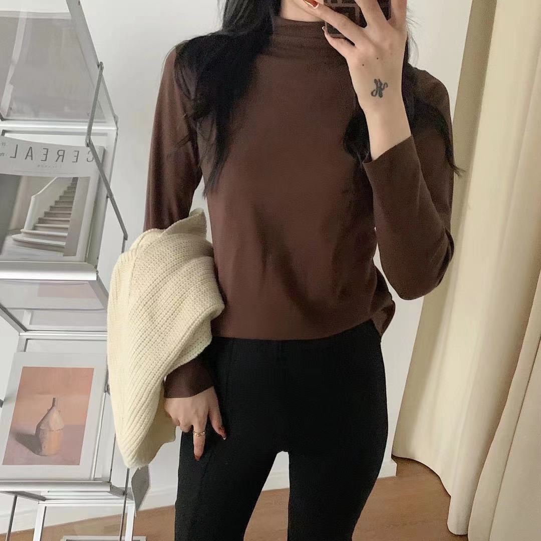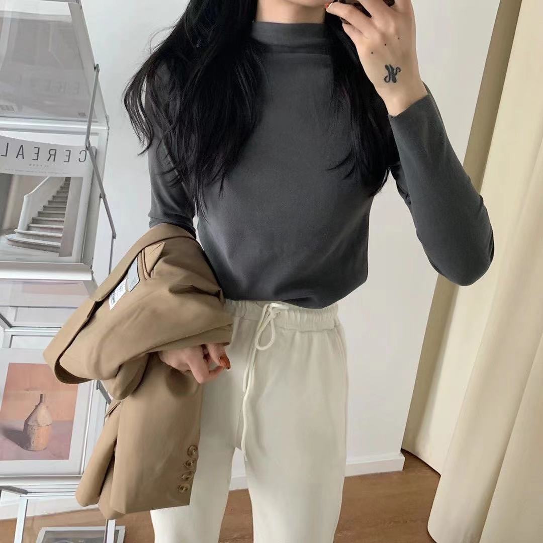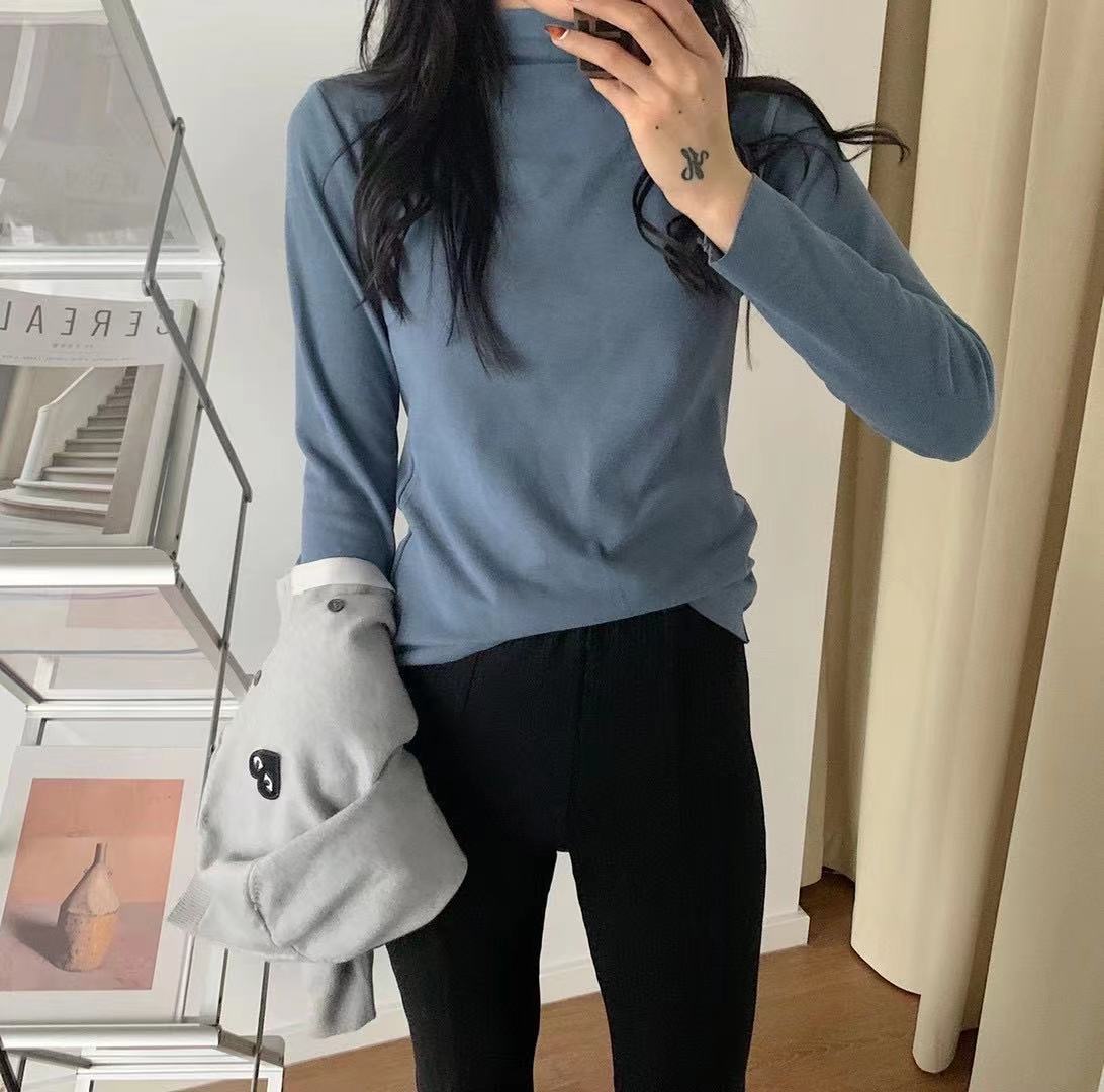 아이요미 16색 독일산 벨벳 하프 터틀넥 여성용 가을 겨울 두꺼운 보온 긴팔 다용도 슬림핏 이너웨어스토어 가기