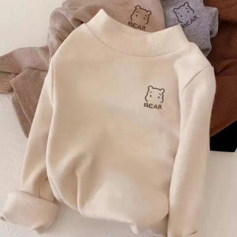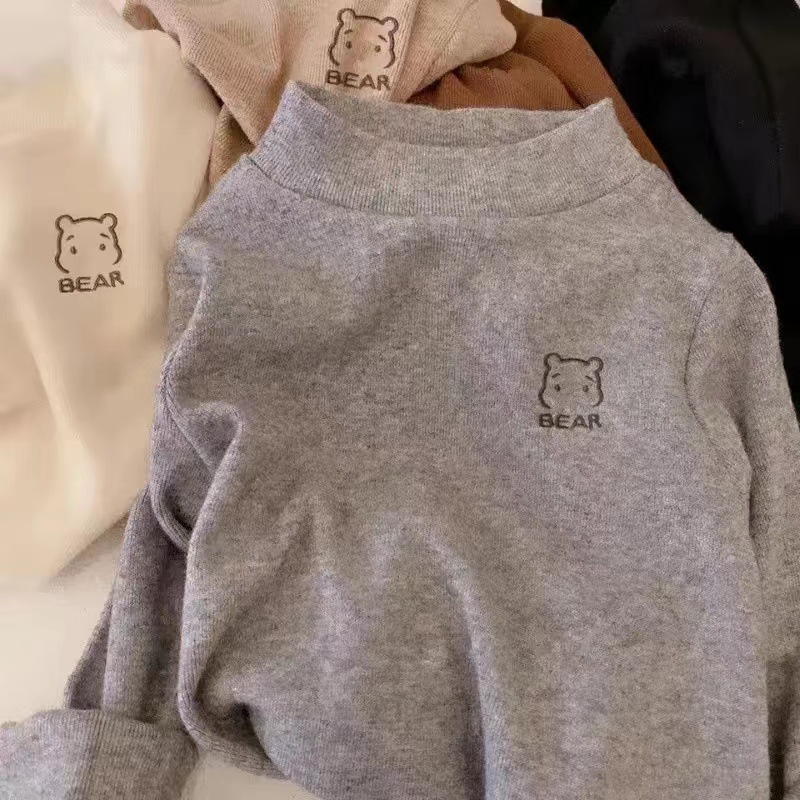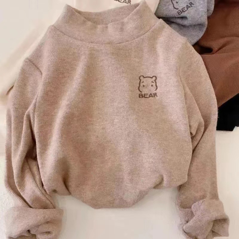 어린이의 새로운 스타일 남아 및 여아 하프 하이 칼라 따뜻한 내부 재킷 중소 어린이 아기 티셔츠 긴팔베이스 셔츠 트렌디스토어 가기