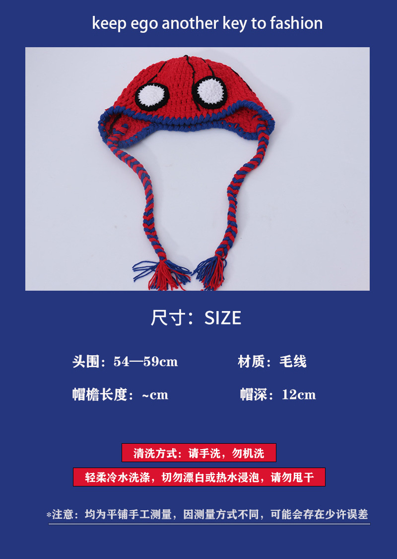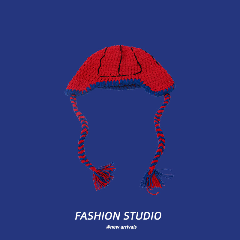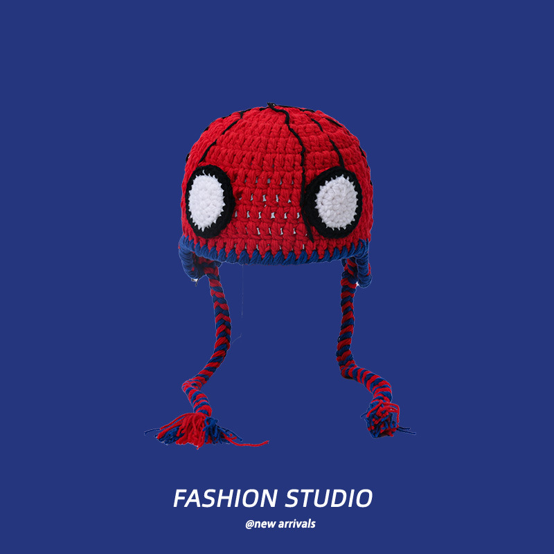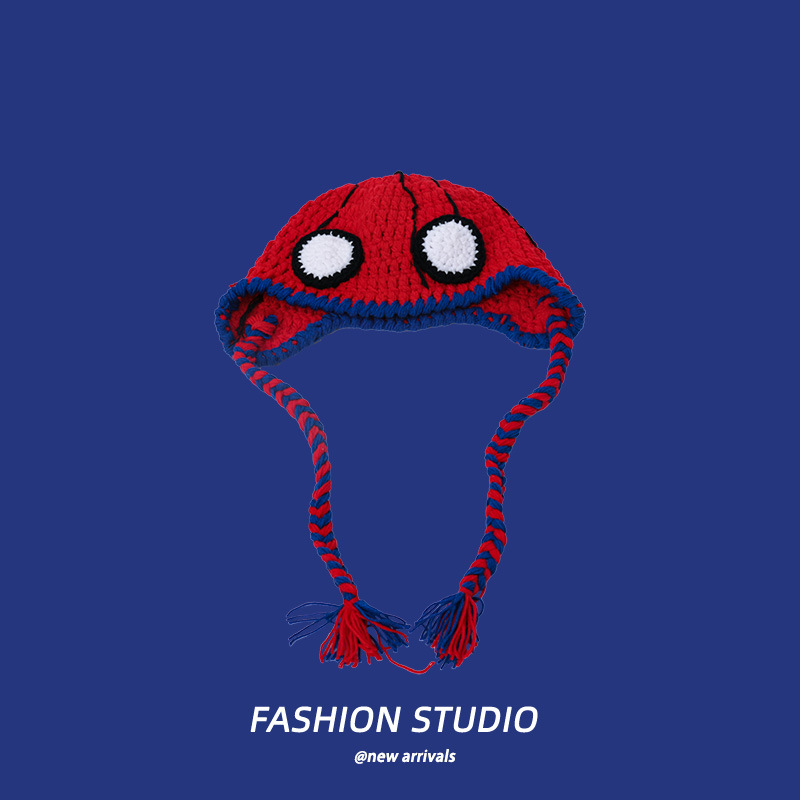 캐주얼 따뜻한 통기성 니트 모자 만화 귀여운 스파이더 맨 이미지 울 모자 재미있는 Baotou 귀 보호 모자
