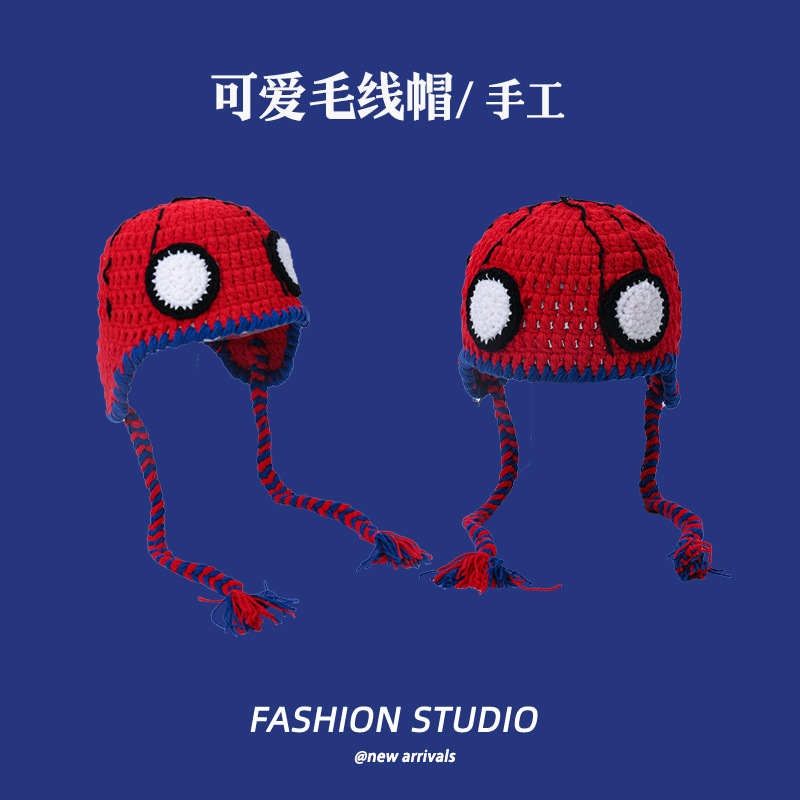 캐주얼 따뜻한 통기성 니트 모자 만화 귀여운 스파이더 맨 이미지 울 모자 재미있는 Baotou 귀 보호 모자스토어 가기