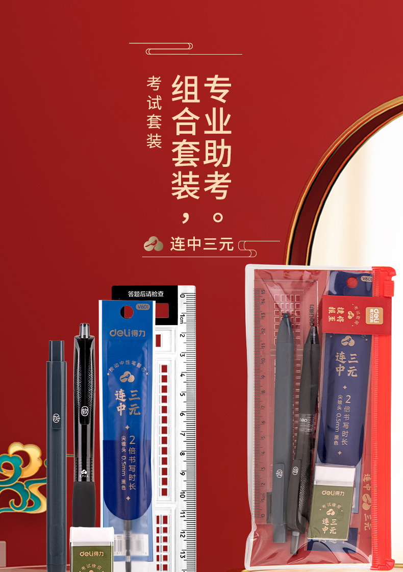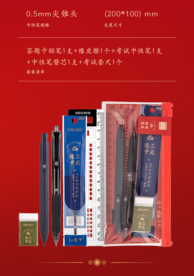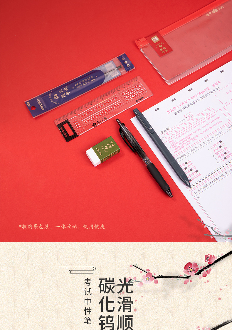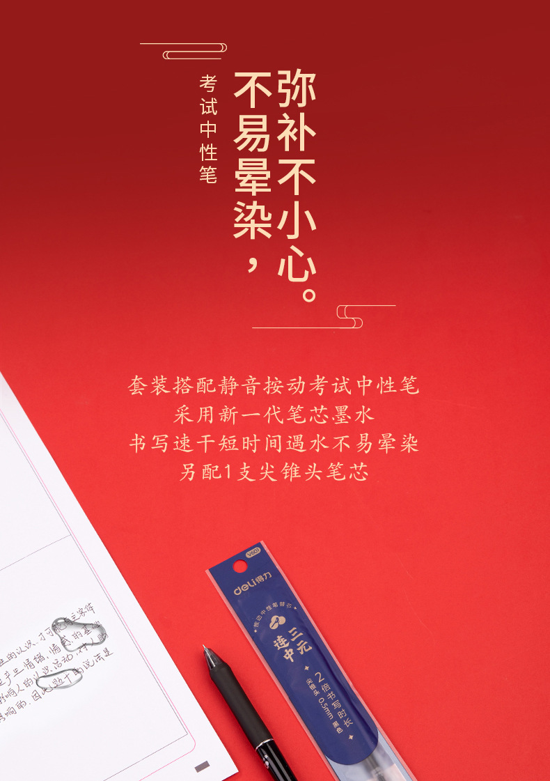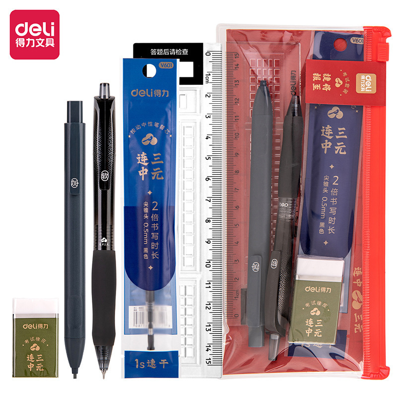 델리 SG601 도 3 위안 시험 세트 카드 펜 2b 고무 고등학교 입학 시험 학생 0.5 검정 테스트 펜