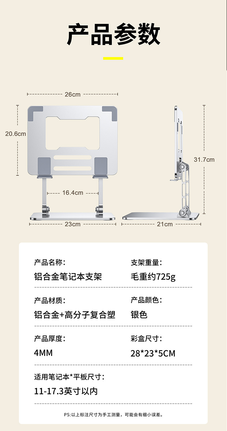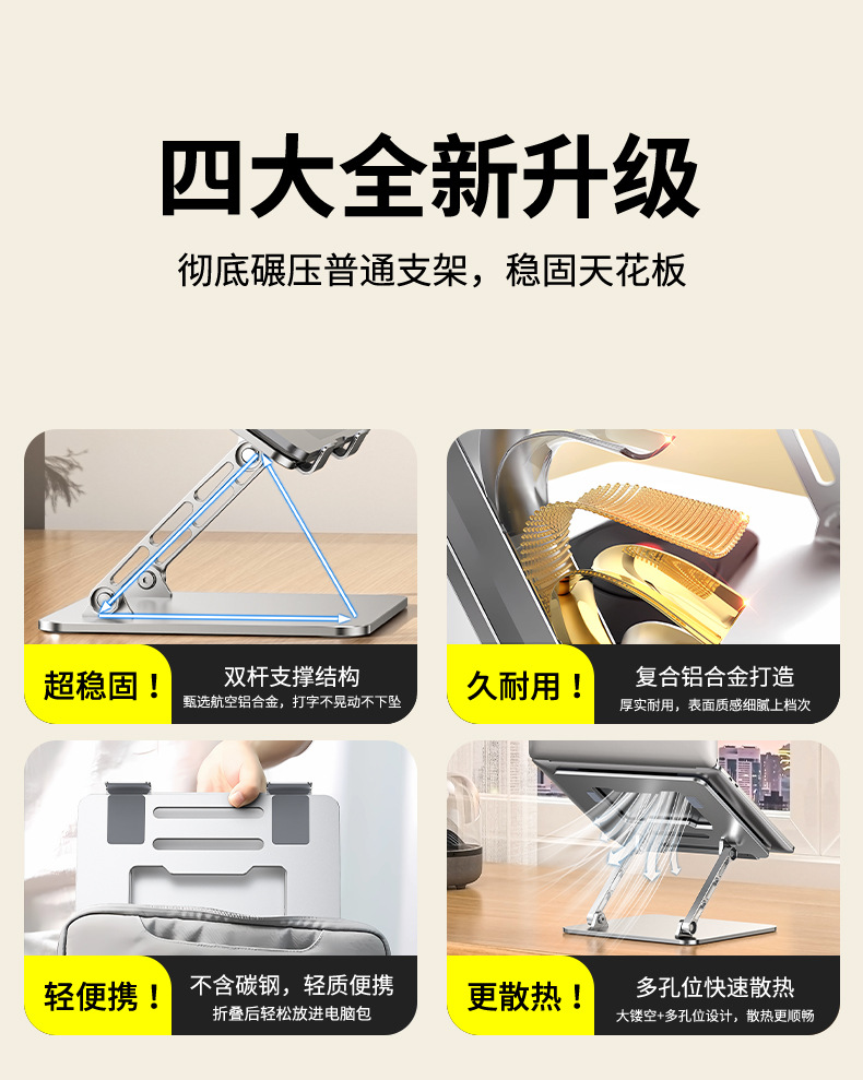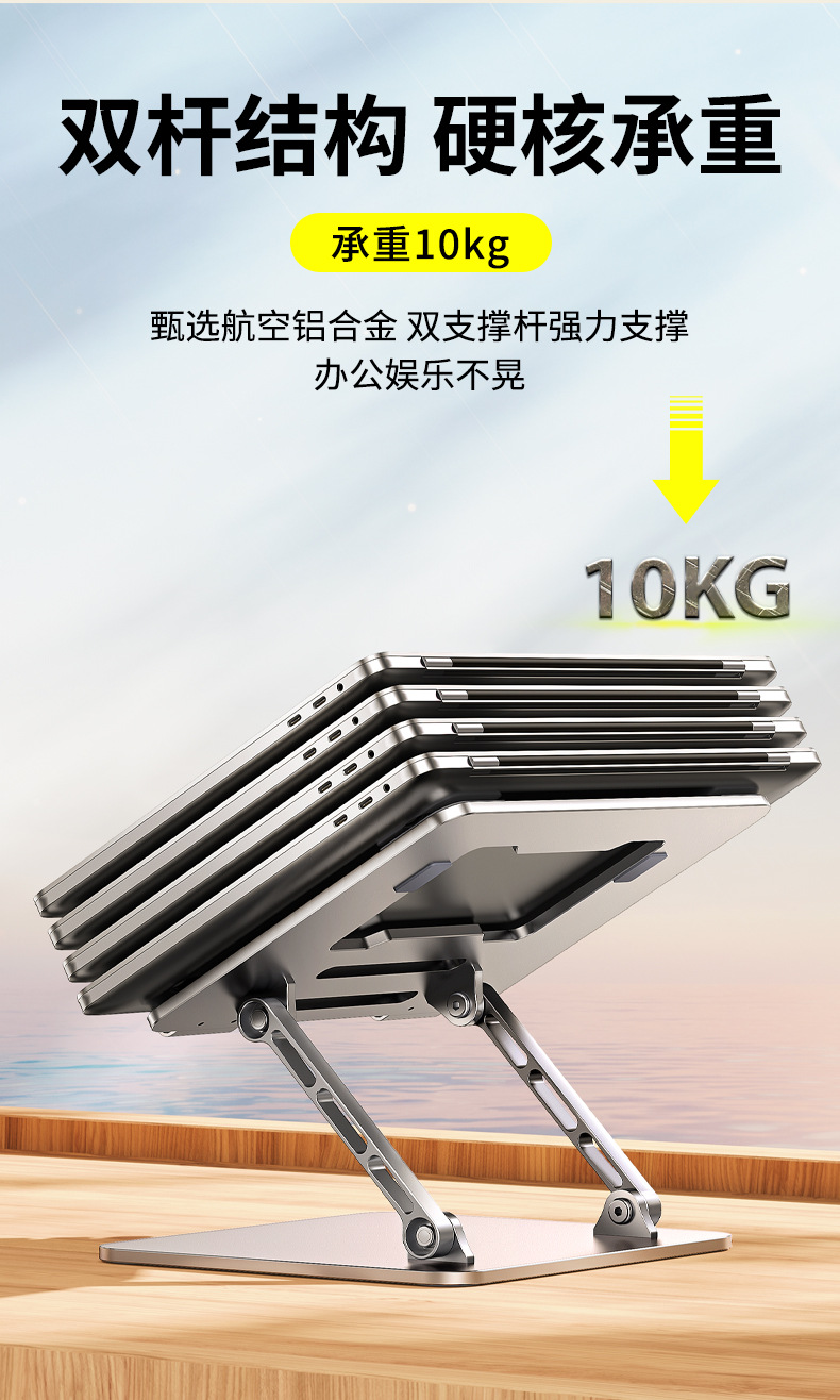 제조업체 두꺼운 알루미늄 합금 노트북 스탠드 이중 축 접이식 조절형 데스크탑 높이 조절 노트북 스탠드