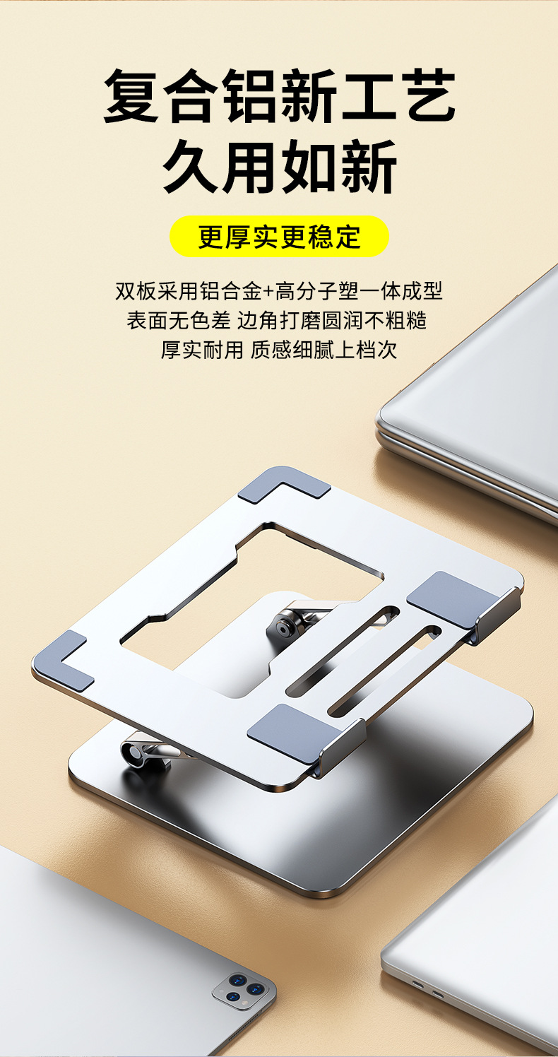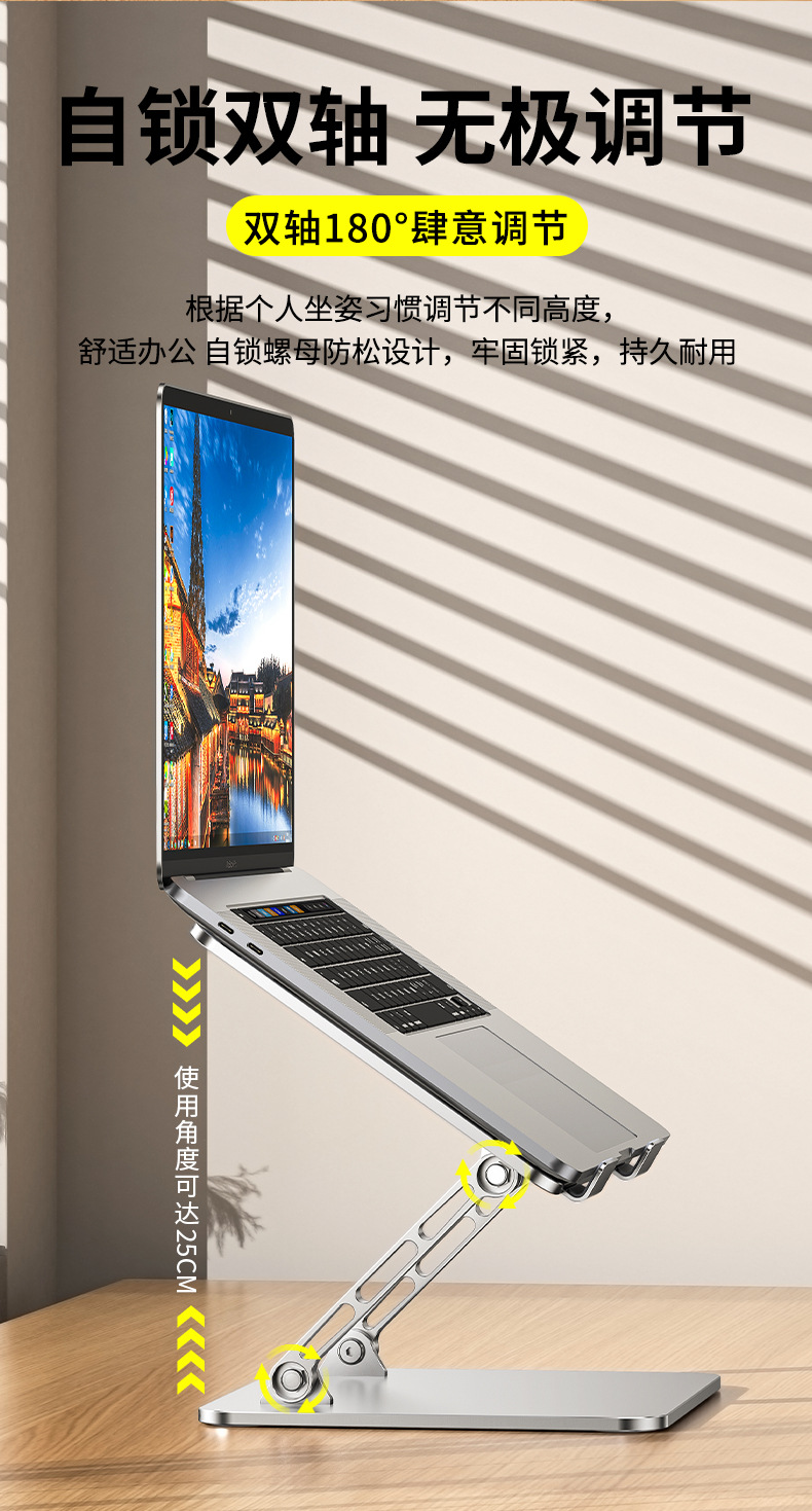 제조업체 두꺼운 알루미늄 합금 노트북 스탠드 이중 축 접이식 조절형 데스크탑 높이 조절 노트북 스탠드스토어 가기