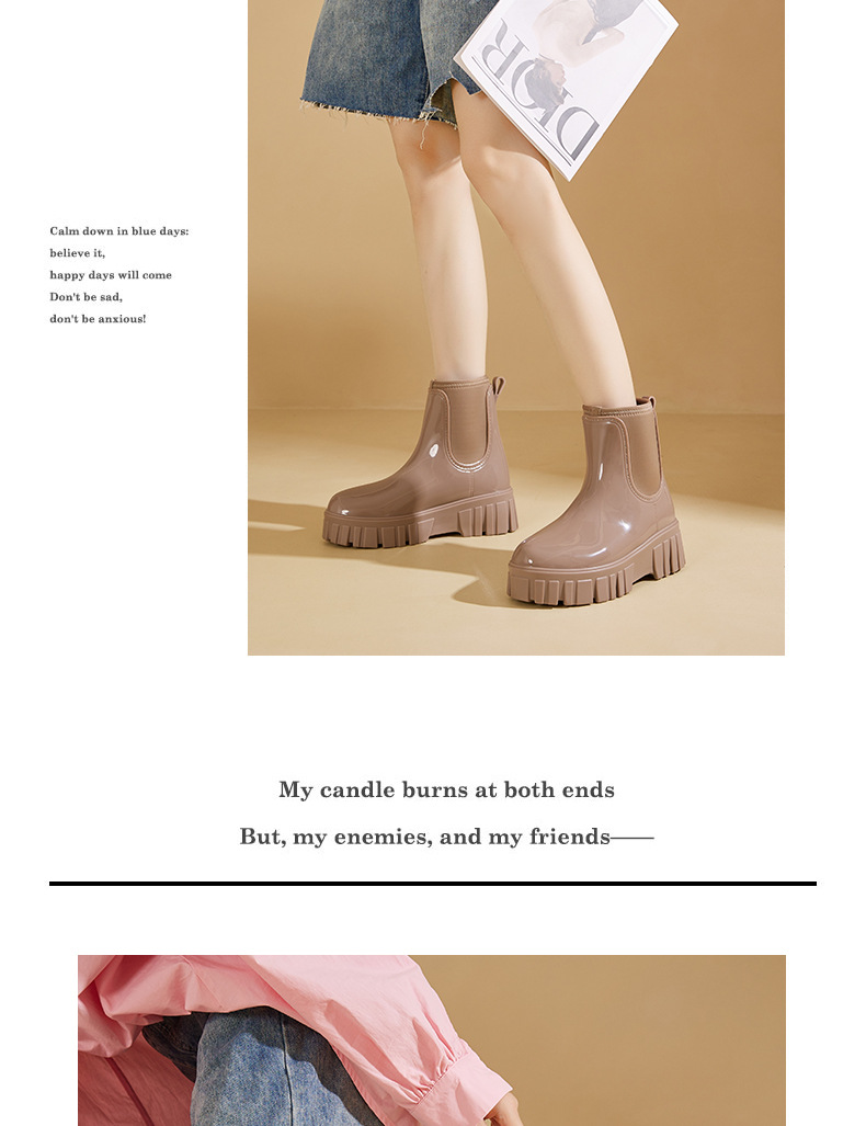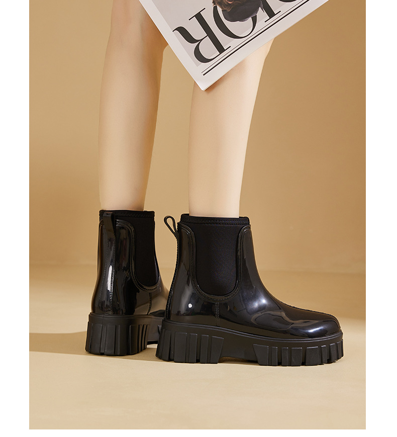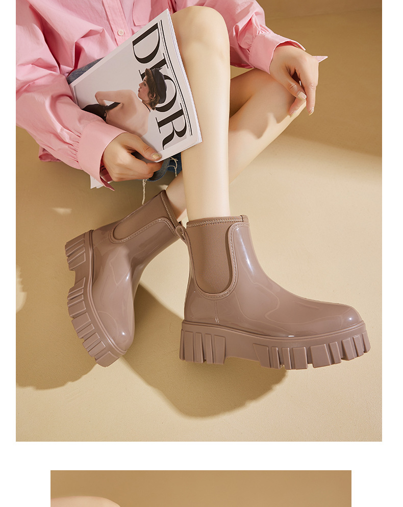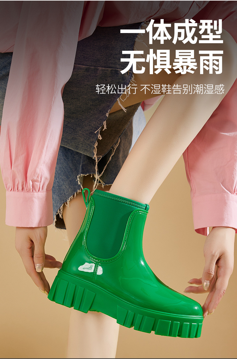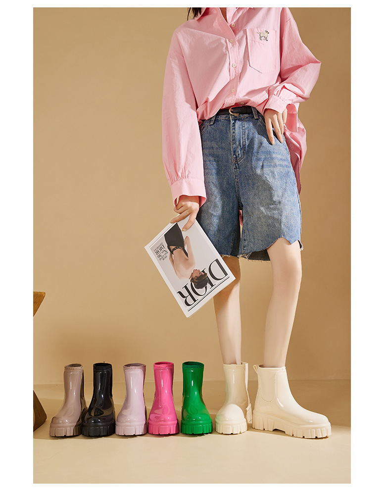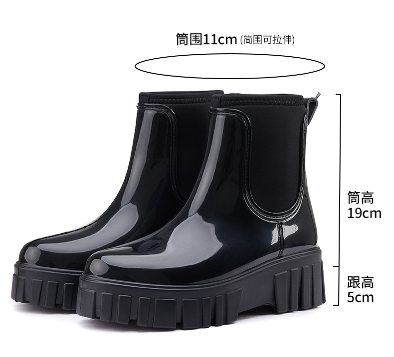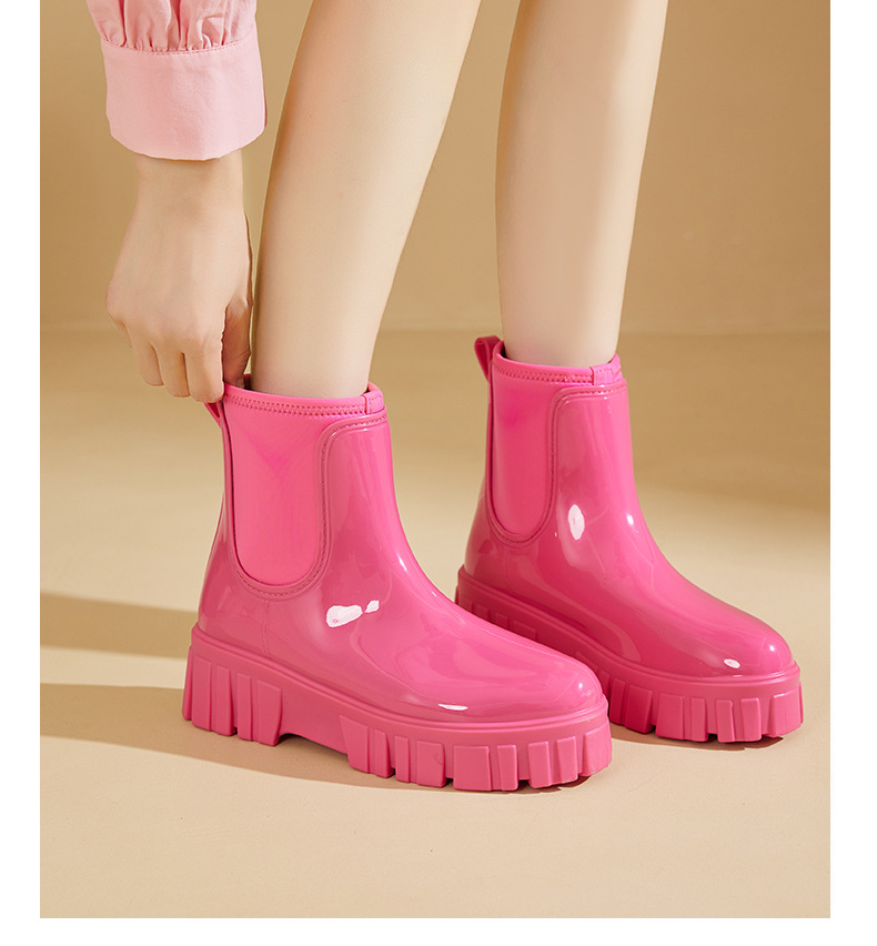 새로운 여성용 탄성 레인 부츠 미드 튜브 레인 부츠 내마모성 증가 방수 미끄럼 방지 비 야외 웨어러블 미드 튜브 부츠