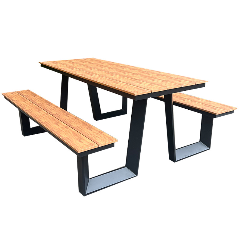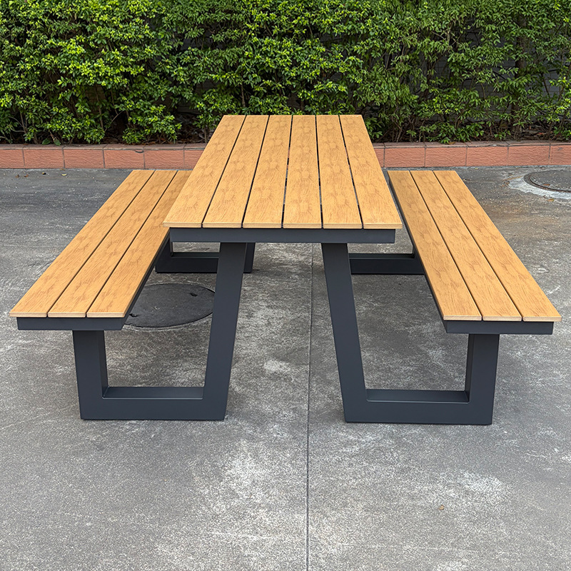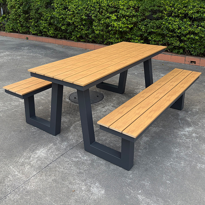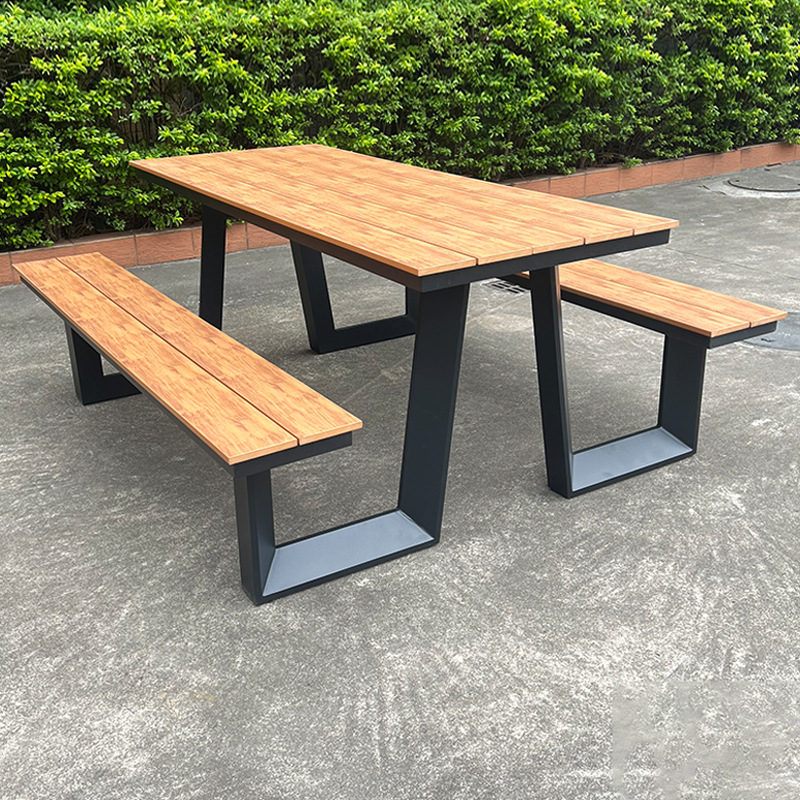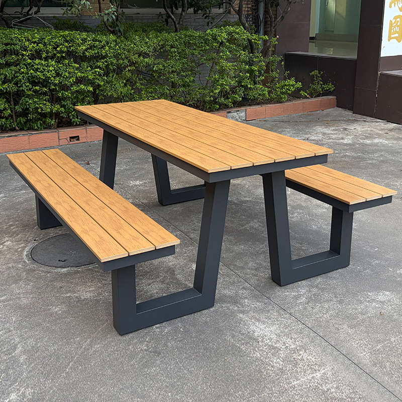 옥외 결합 테이블과 의자 조합 알루미늄 공원 의자 정원 안뜰 좌석 명승 벤치 매칭 플라스틱 목재 테이블과 의자 방수