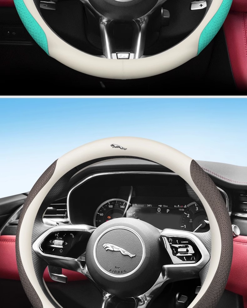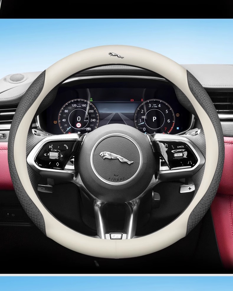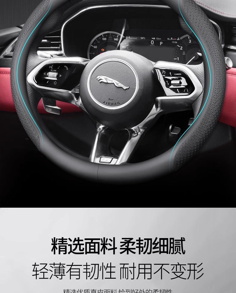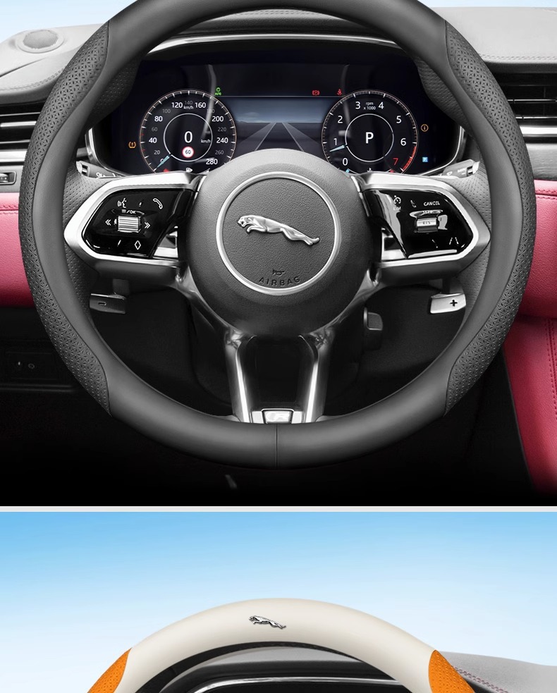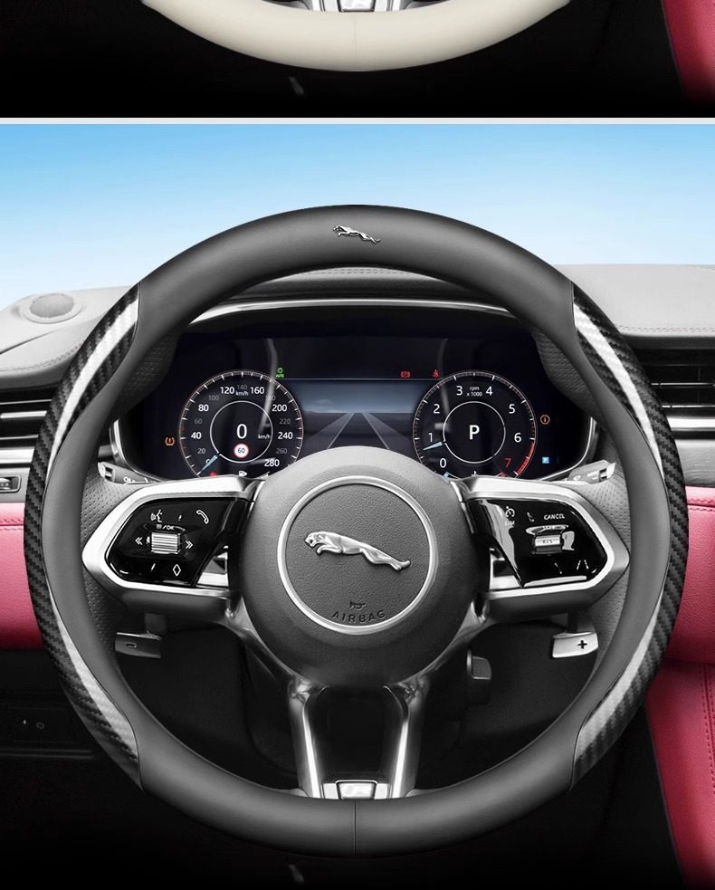 재규어 스티어링 휠 커버 가죽 XEL XFL F-PACE XJ XE XF 탄소 섬유 자동차 핸들 커버에 적합스토어 가기