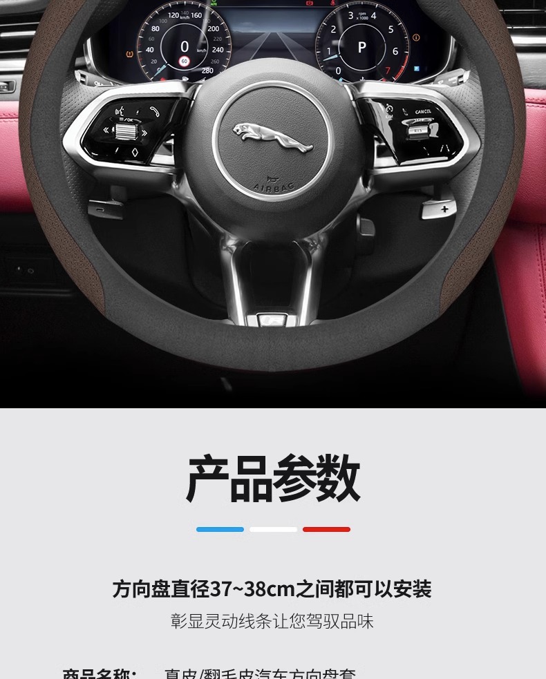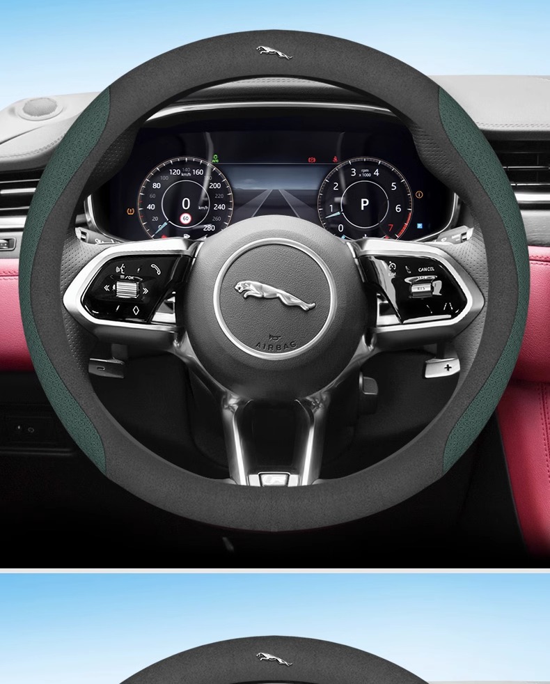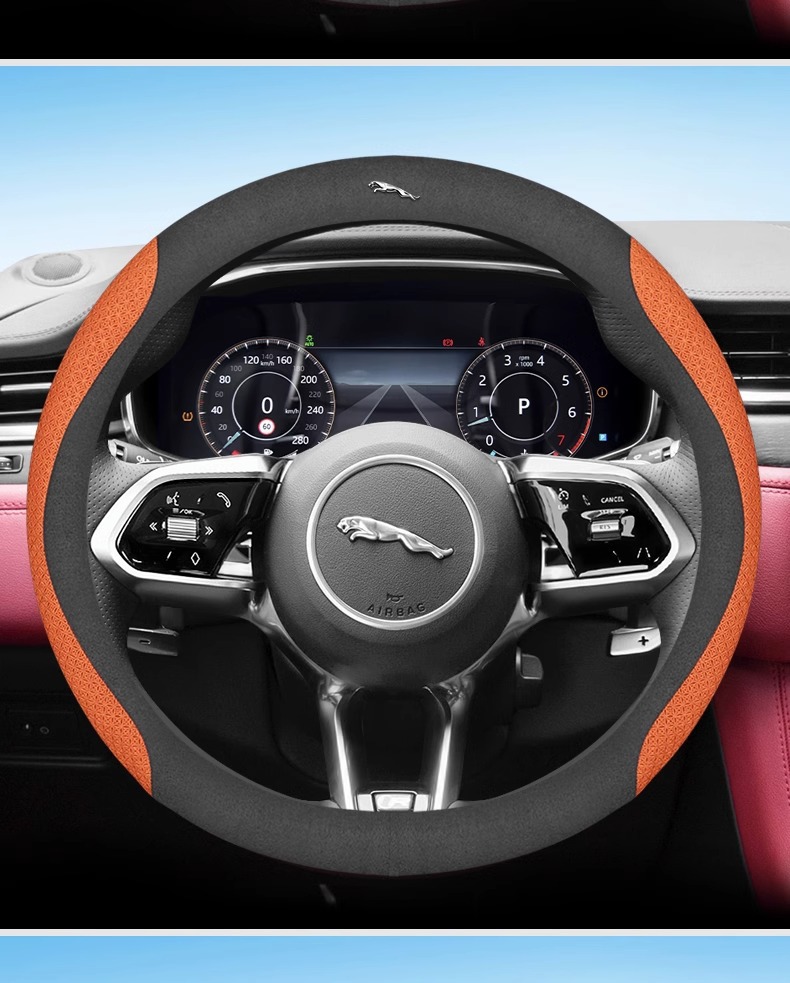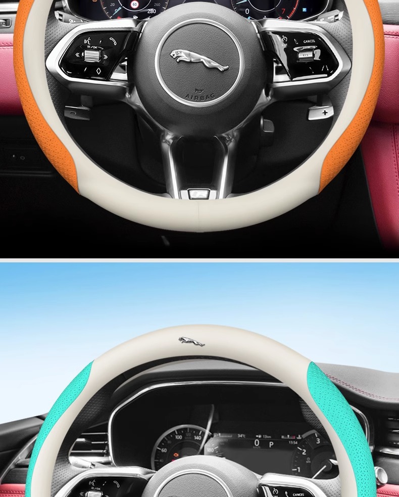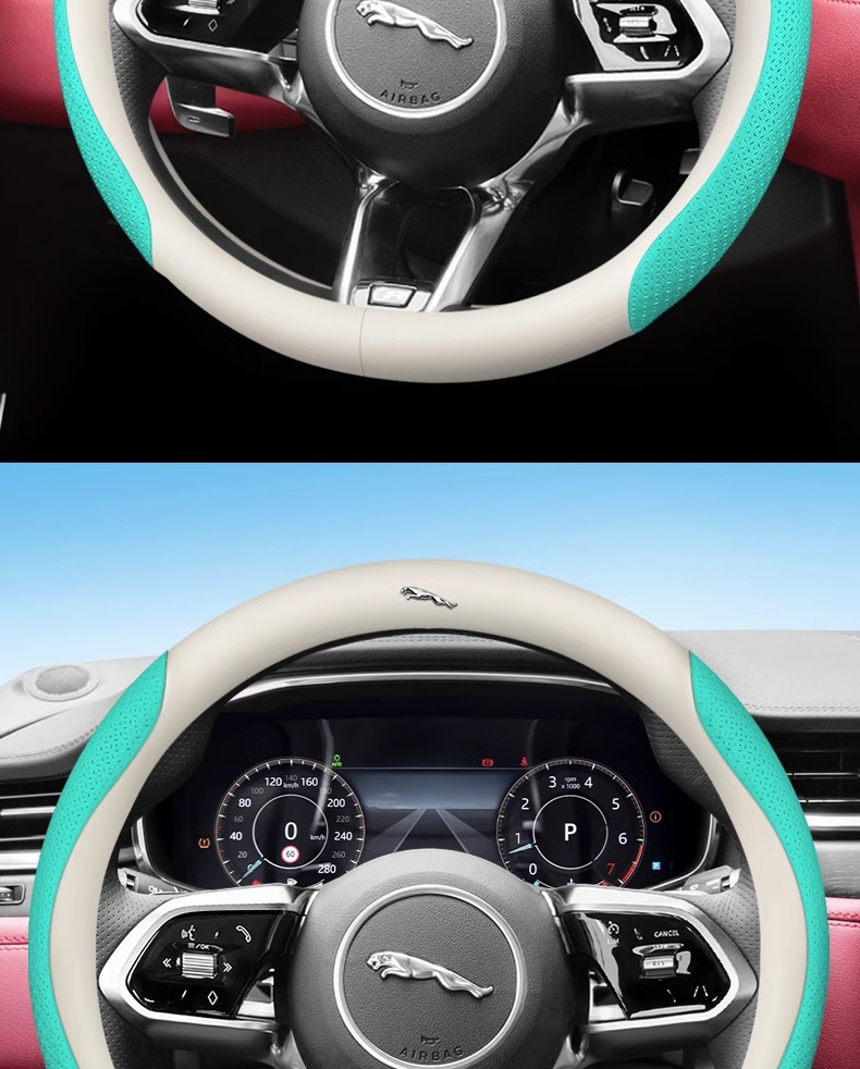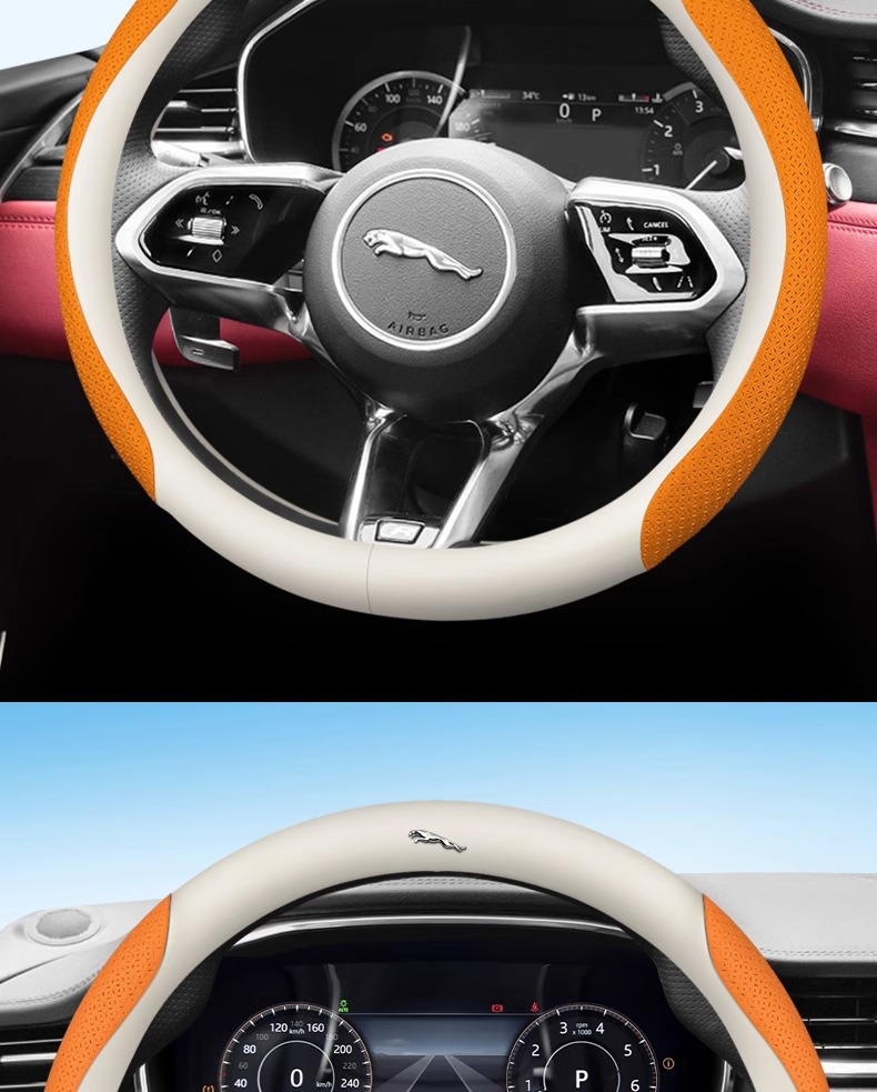 재규어 스티어링 휠 커버 가죽 XEL XFL F-PACE XJ XE XF 탄소 섬유 자동차 핸들 커버에 적합스토어 가기