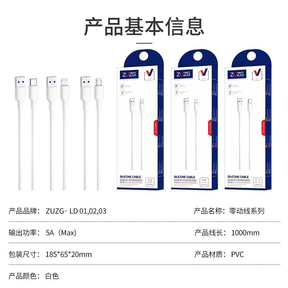 • LD02/단순화된 실리콘 케이블(1m Apple 케이블)은 창 없이 포장됨