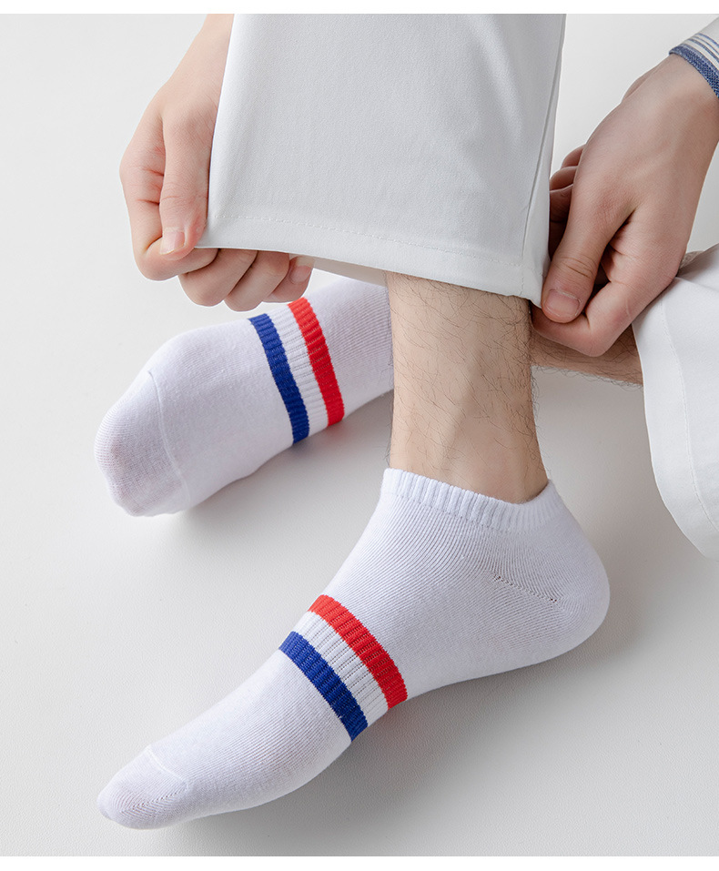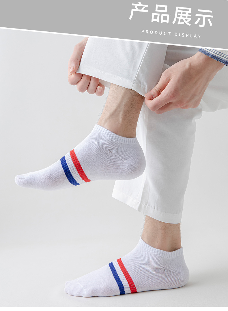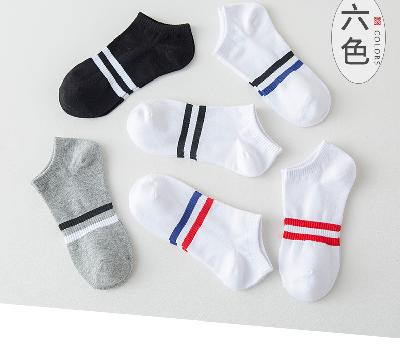 양말 남자 여름 짧은 양말 두 막대 줄무늬 남자의 낮은 입 통기성 보트 양말 가을과 겨울 단색 면 보이지 않는 양말
