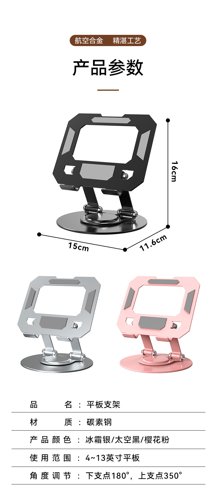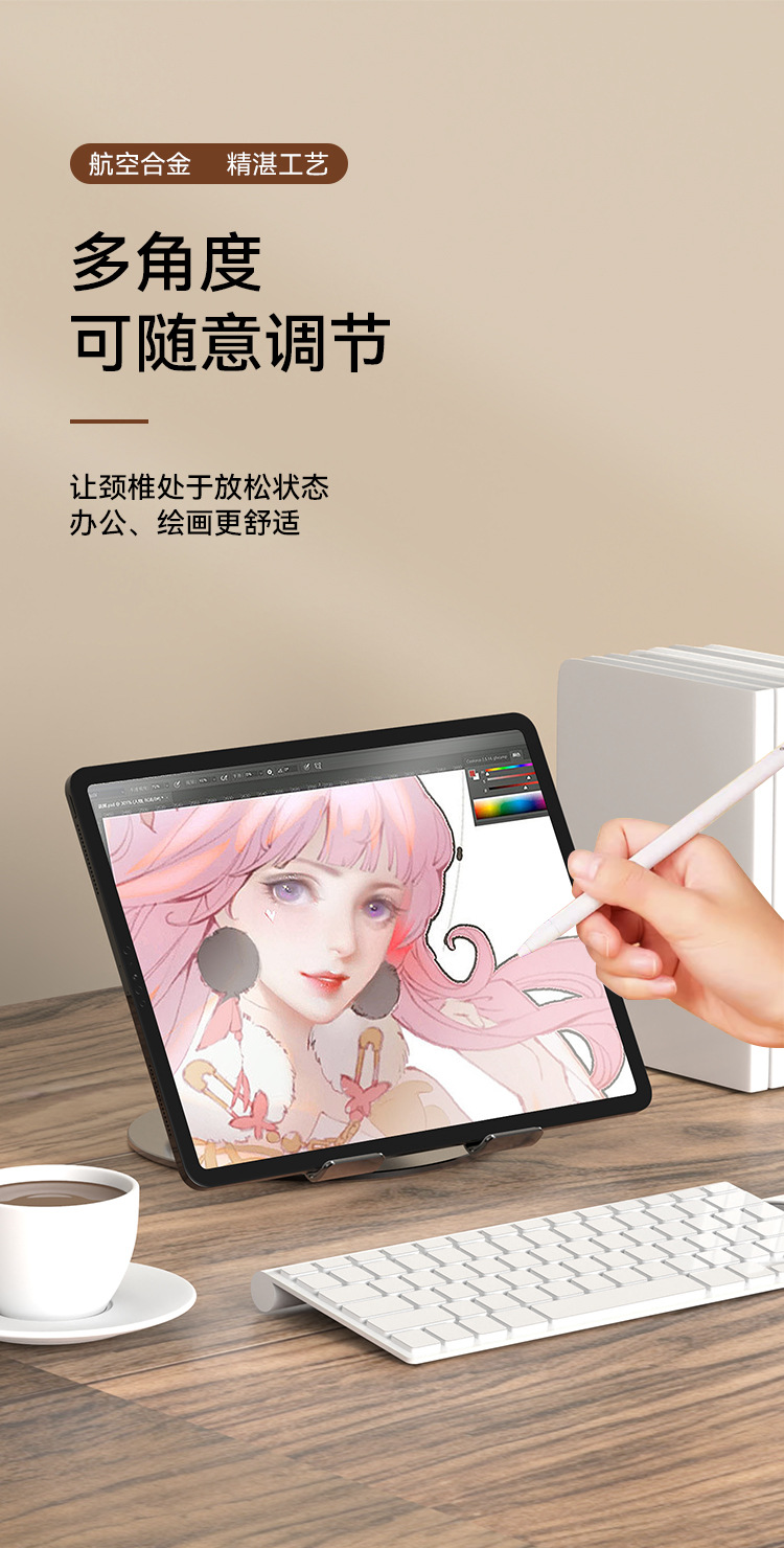 Ipad 데스크탑을위한 그림 체이스 드라마 학습에 전념하는 360 도 회전 금속 플랫 브래킷 중공 게임스토어 가기